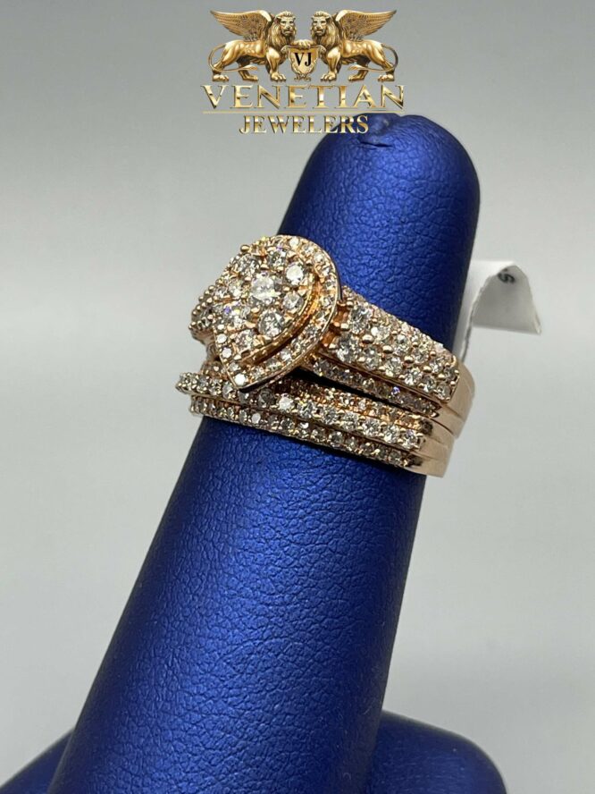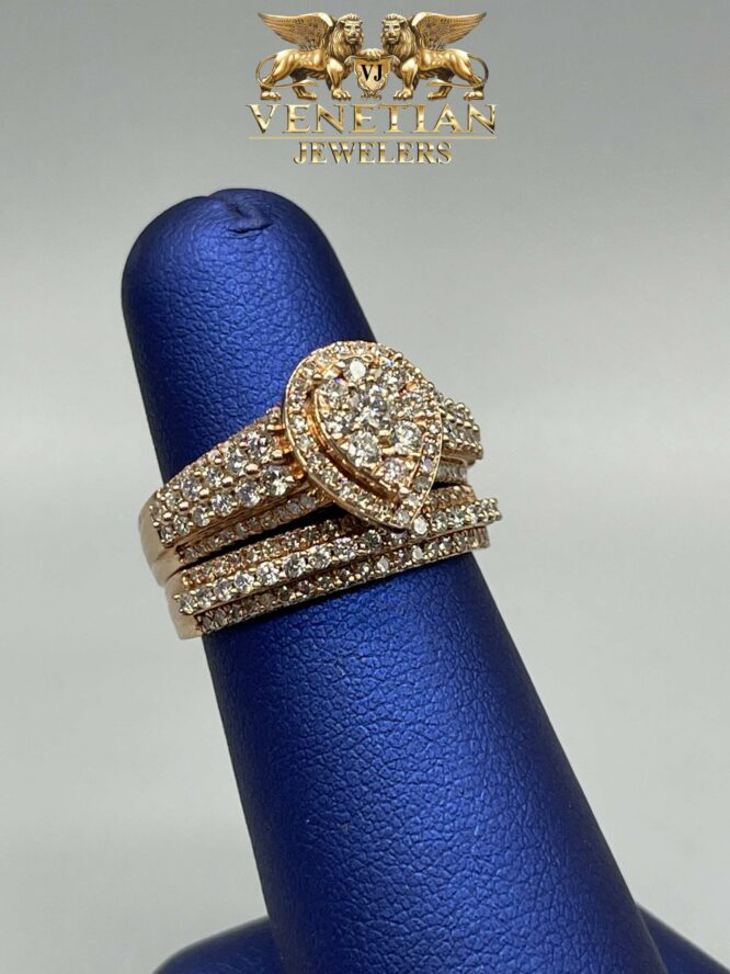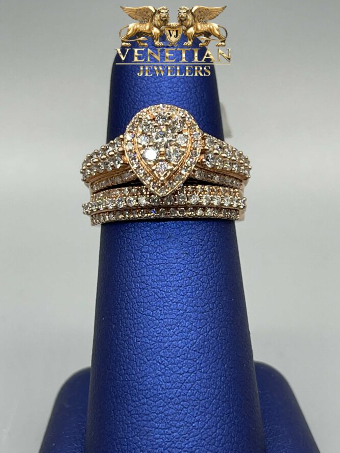 14KT 1.52CTW RoseGold Pear Shape Bridal Set Size “7 Beautifully Crafted With ProngSet Stones