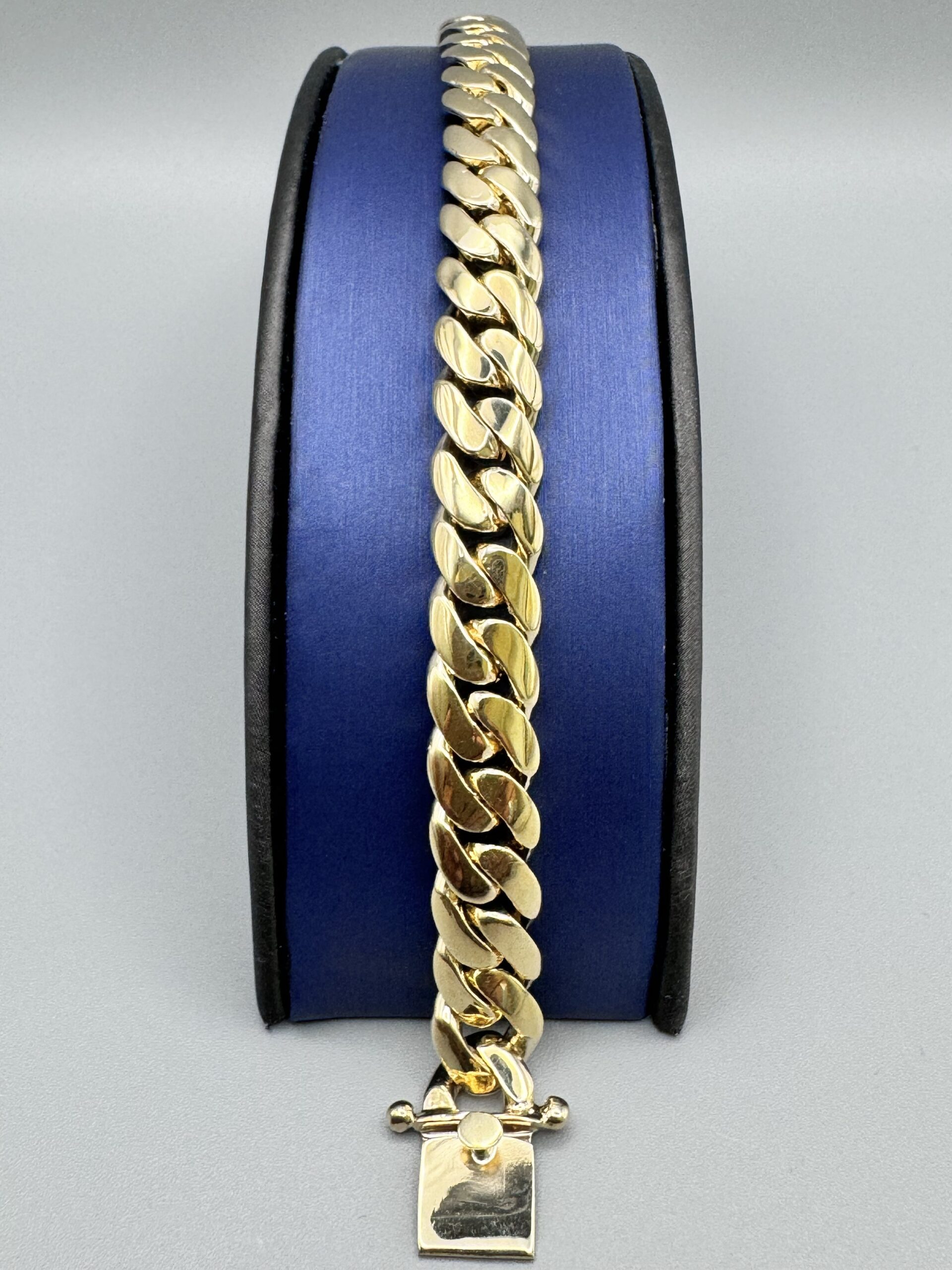 Elevate your style with this exquisite 14KT Solid Gold Miami Cuban Bracelet. Measuring 10MM and weighing approximately 68.8 grams, it showcases luxury and durability for any occasion.