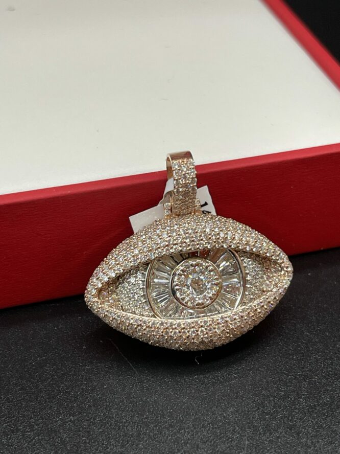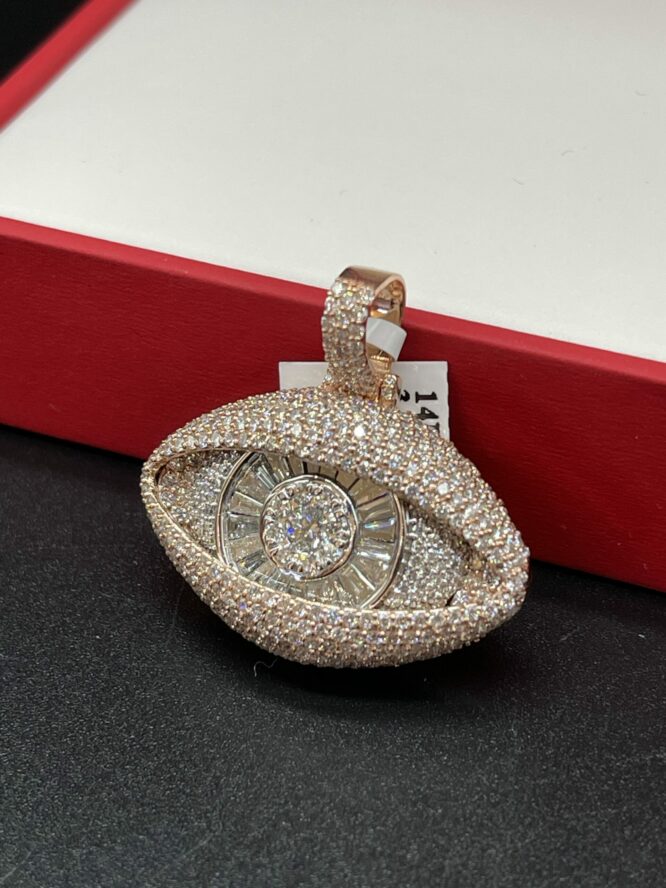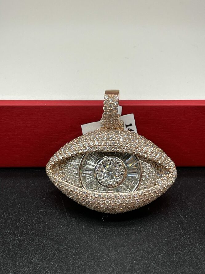14Kt Solid Rose Gold EvilEye Pendant Custom Made 3.59 CT Diamonds All VS F-G Color Approx Gold Weight 16.90 Grams