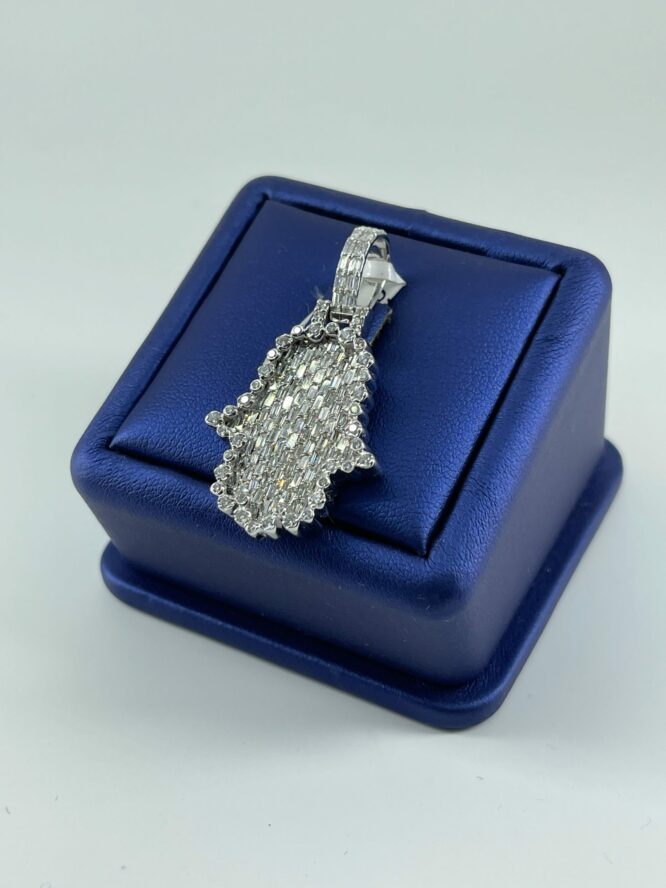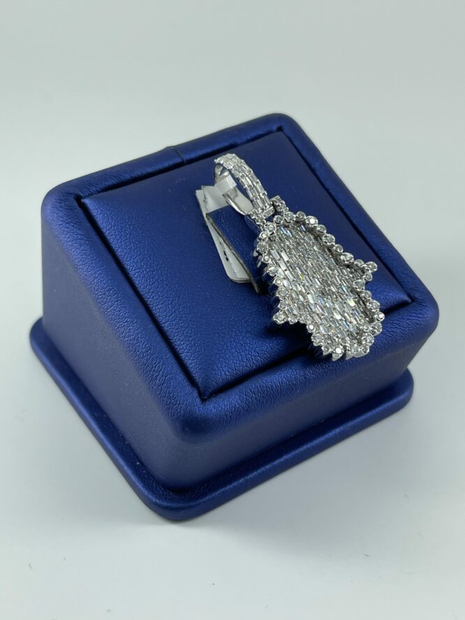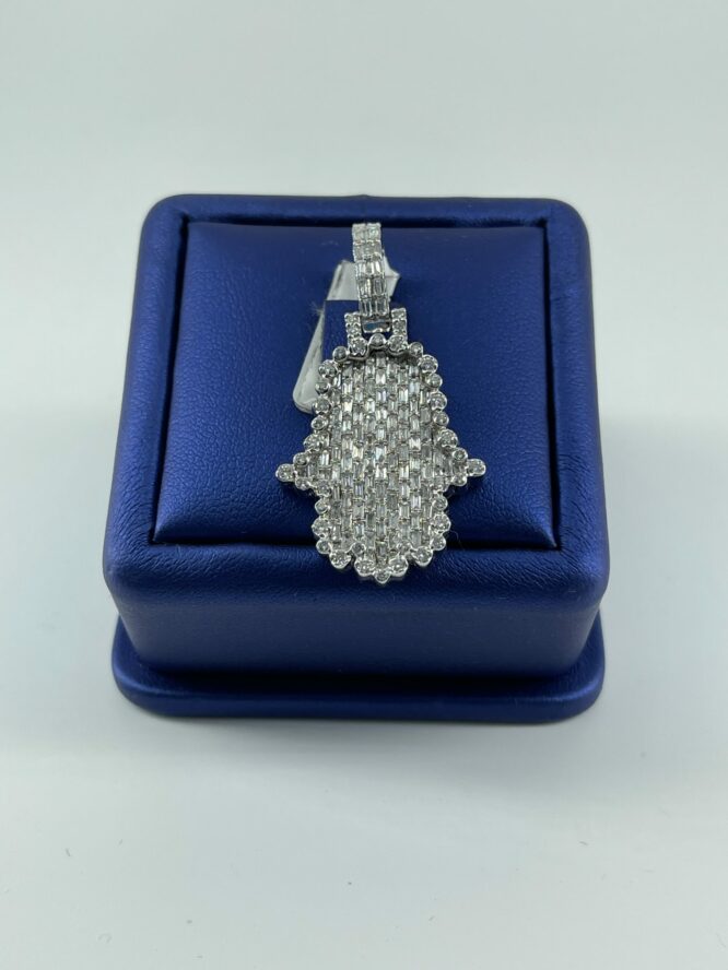 14KT W/G 1.61CT Dia Hamsa Pendant With Emerald VS/SI F-G Color 1.50 Inches Tall Solid Back Heavy Weight Approx Gold Weight 9.84 Grams