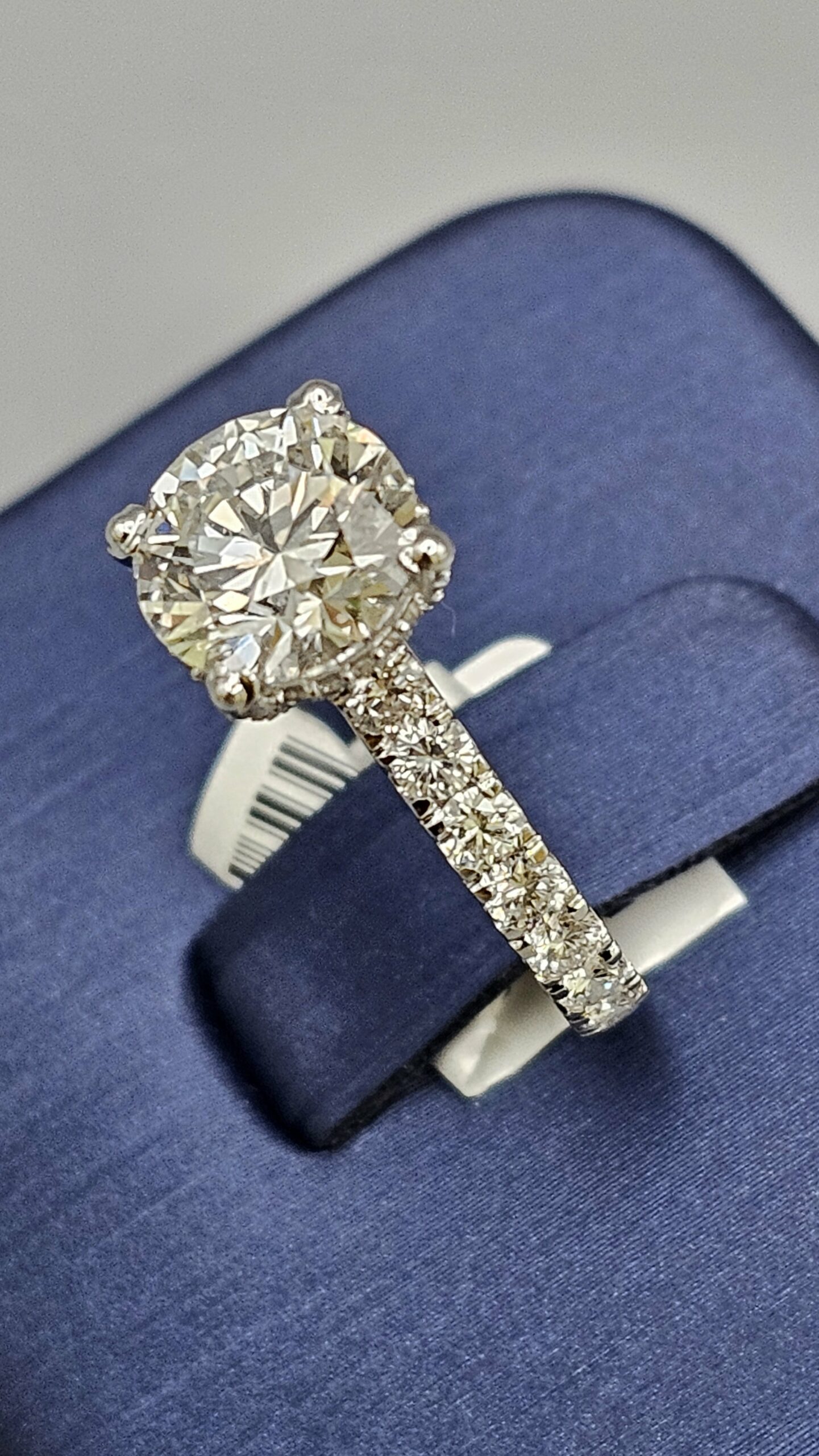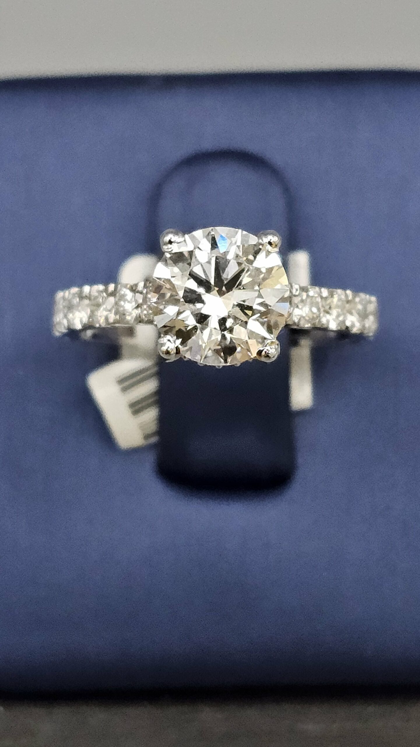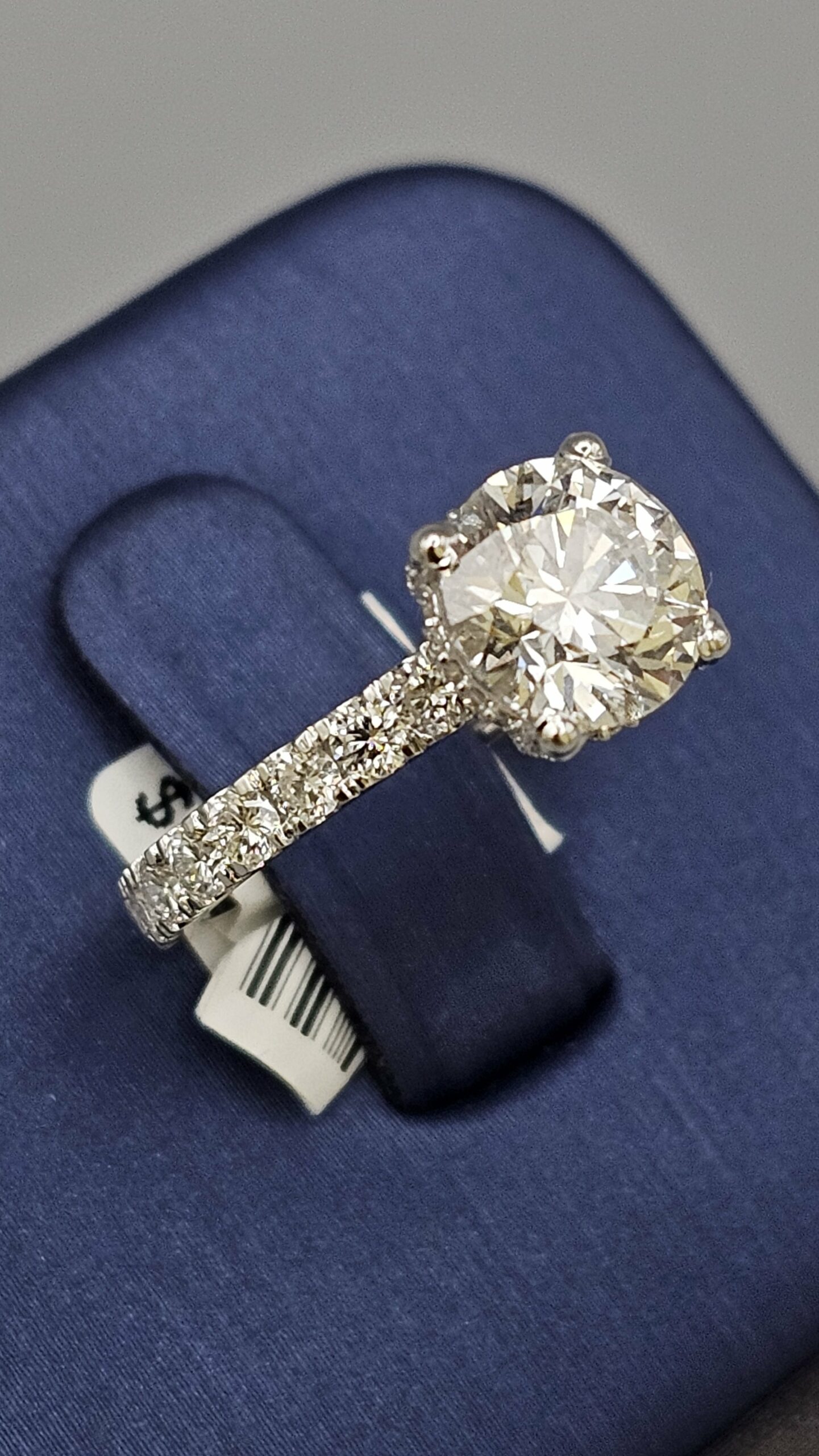 14KT w/Gold 3.00CT RoundCut LGD Ring Size 7 Approx Gold Weight 3.1 Gram VS Clarity E F Color