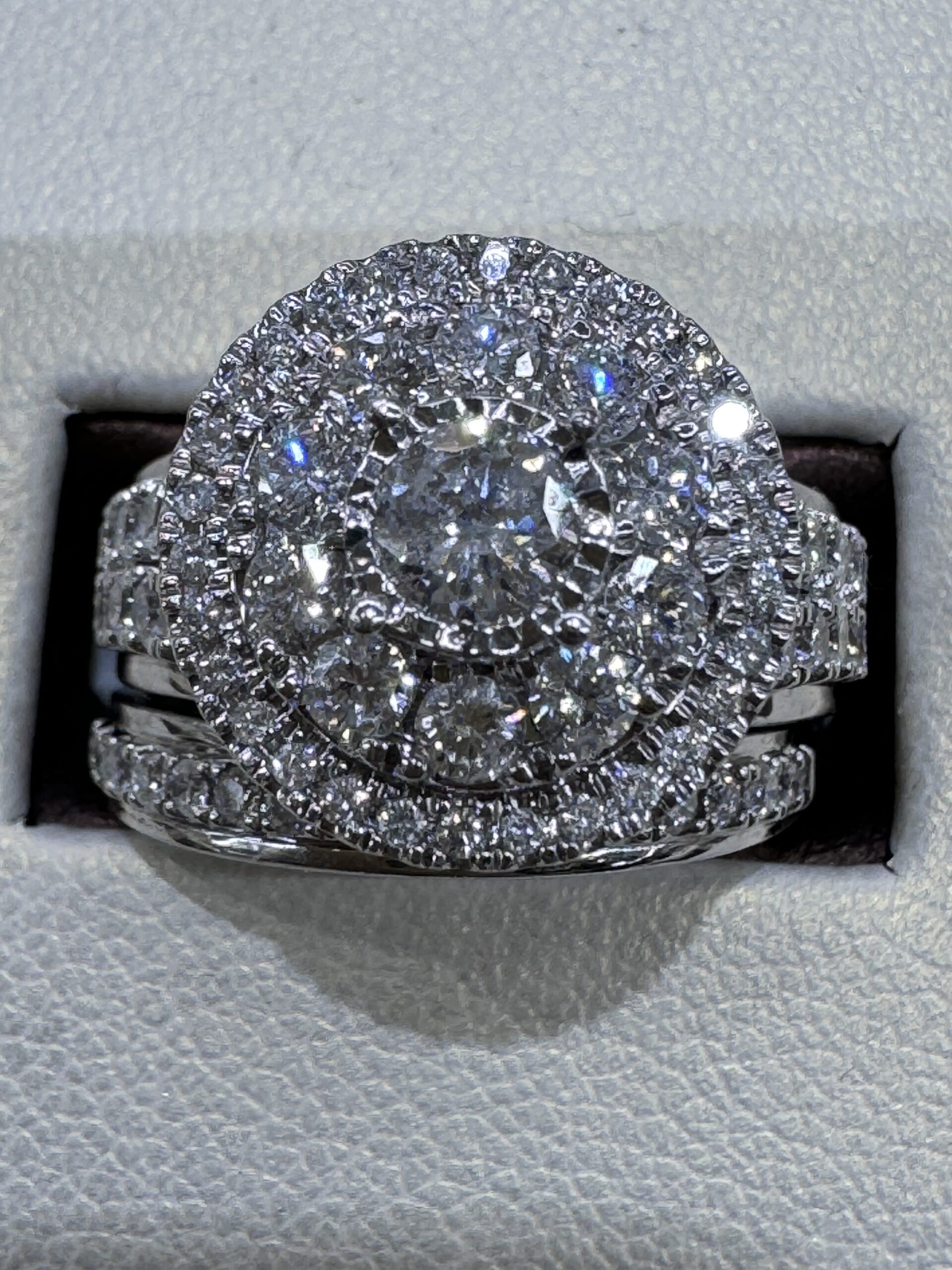 Celebrate love with this exquisite 14KT White Gold Engagement Ring Set, featuring 1.98CT of VS quality natural diamonds. With a 14.5MM top head width and a sleek 3.5MM band, it’s a sparkling promise.