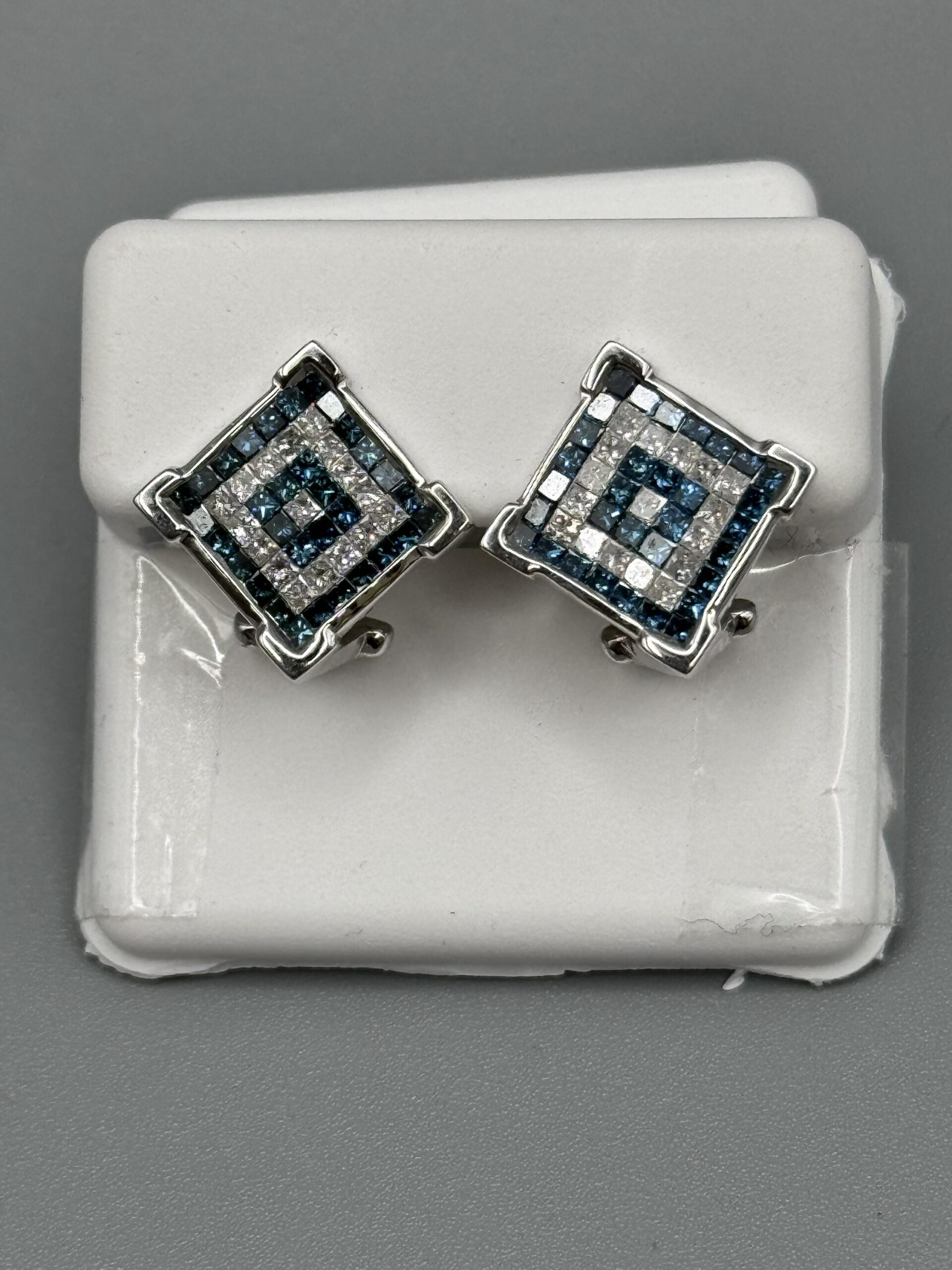 14KT W/Gold 2.00CT Blue White Diamond Earrings