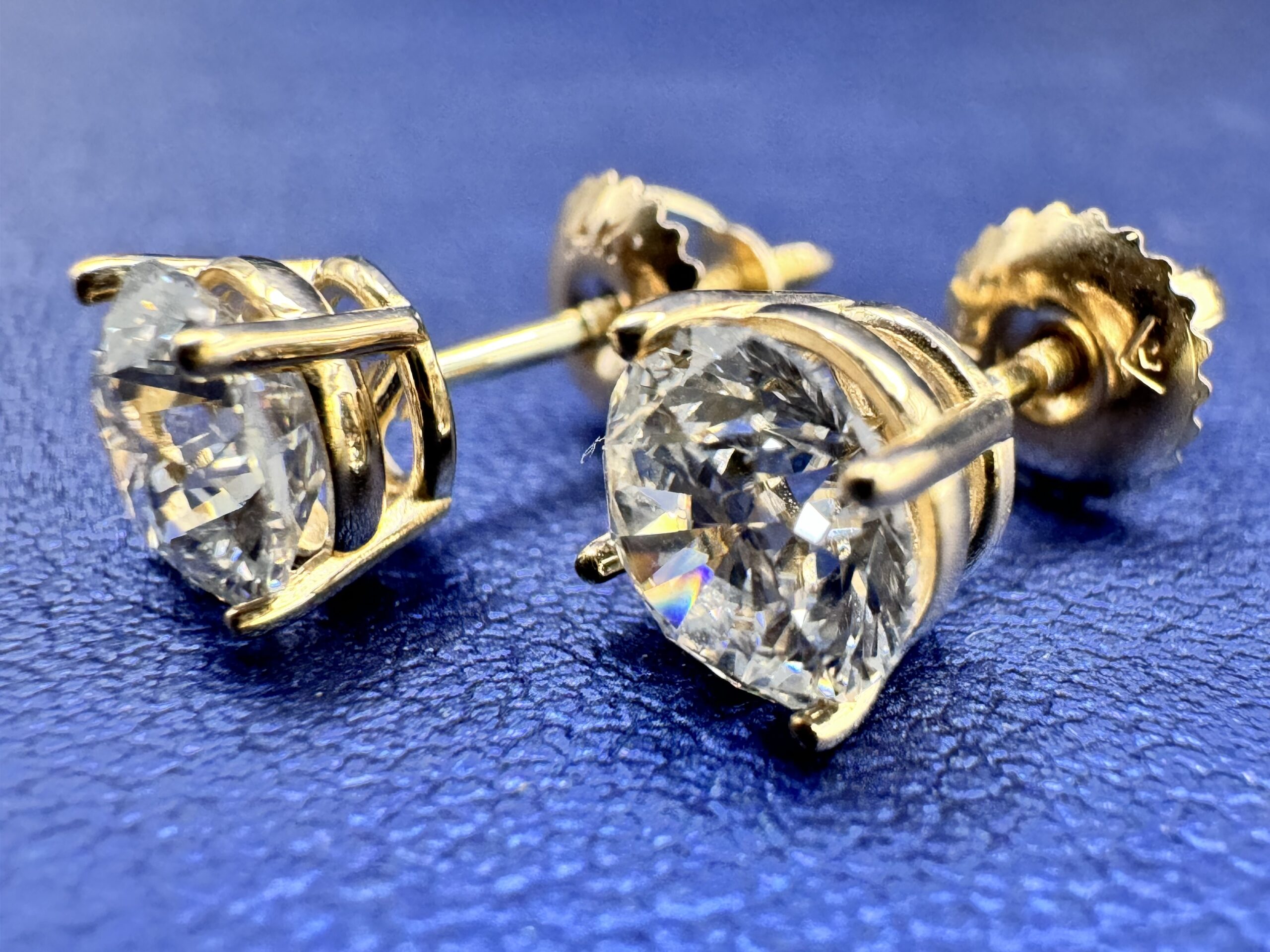 14KT Gold 2.00CT LabGrown Diamond RoundCut Solitaire Stud Earrings ScrewBacks 6MM Width VVS Clarity F Color