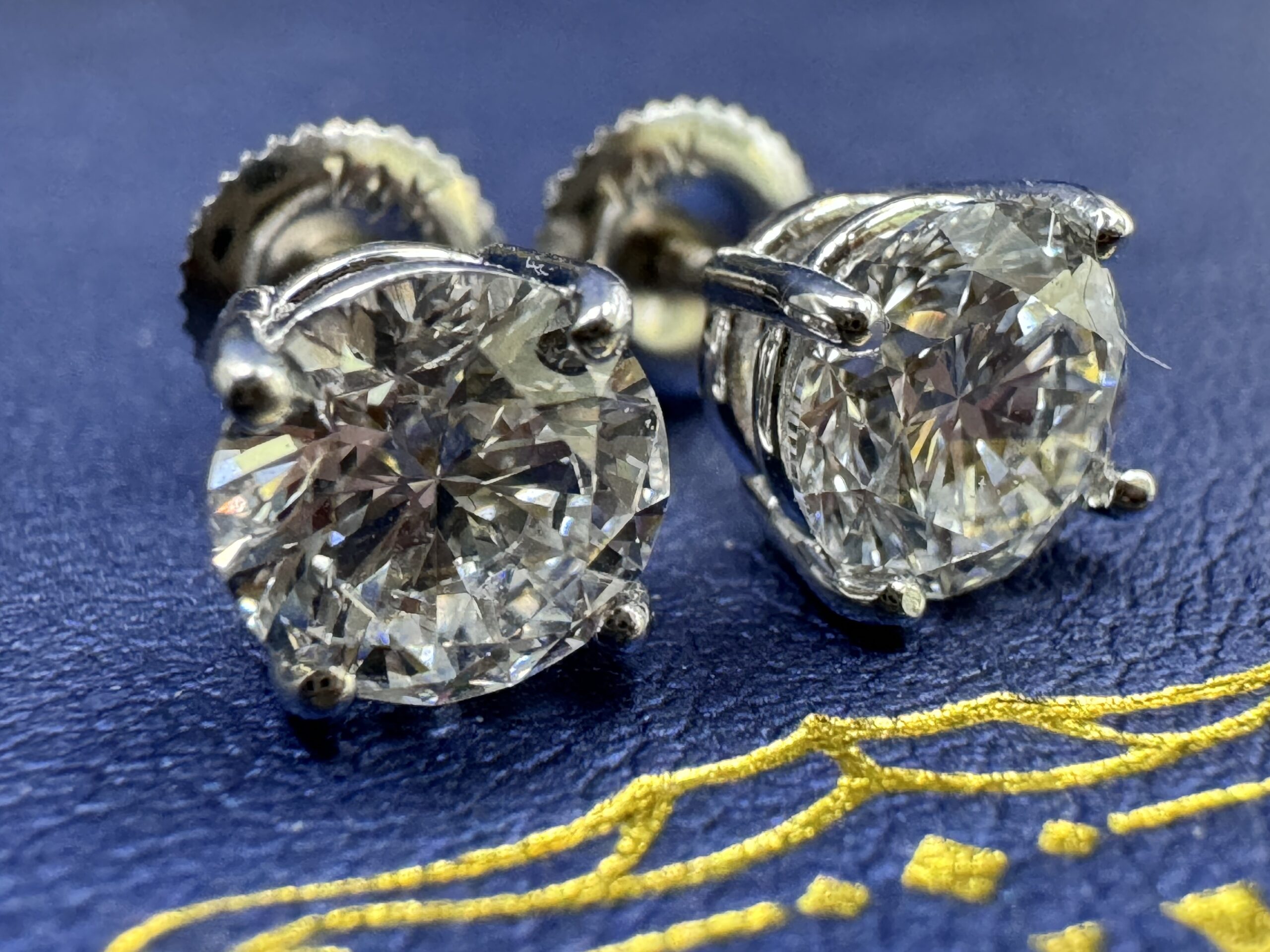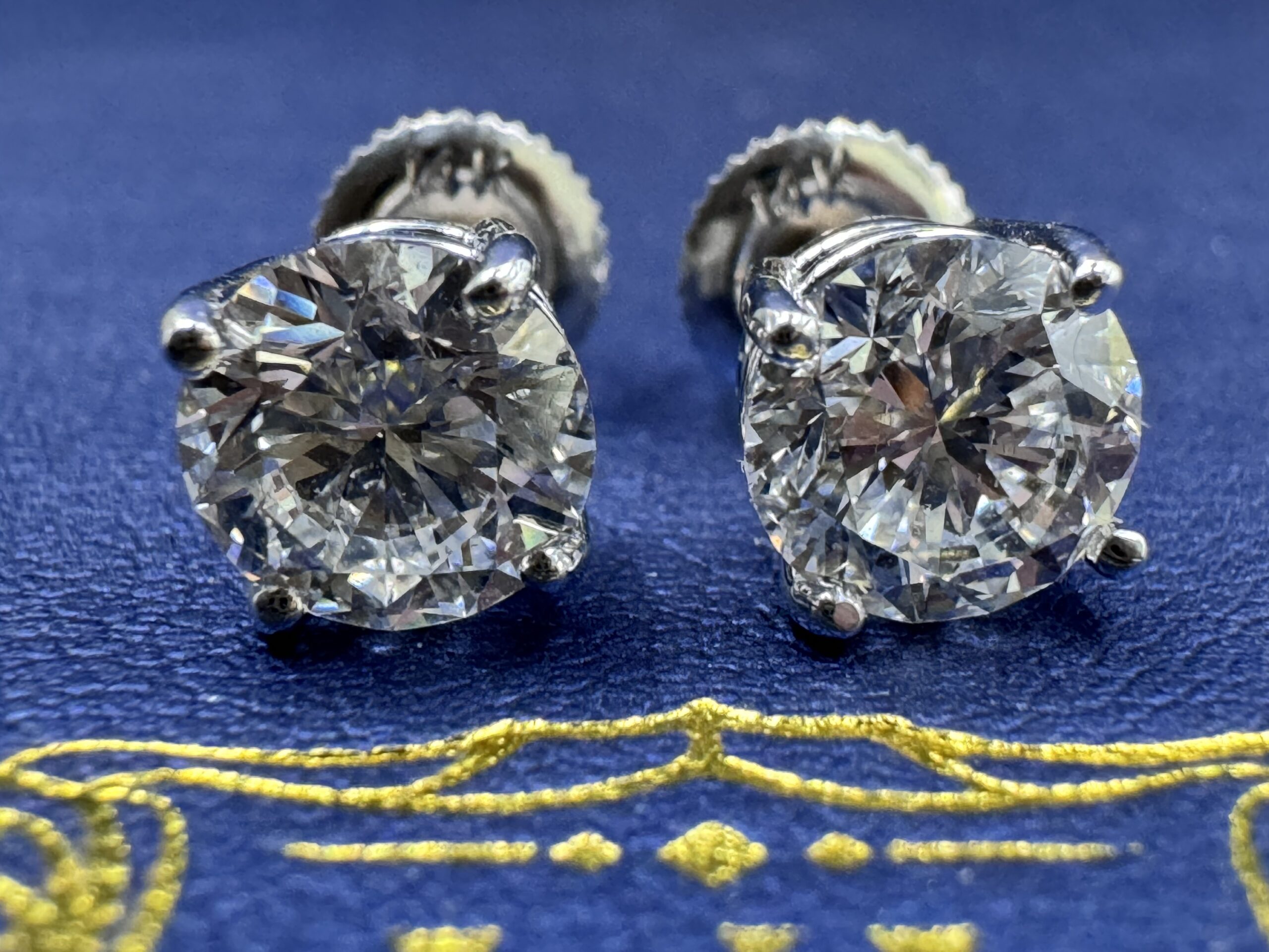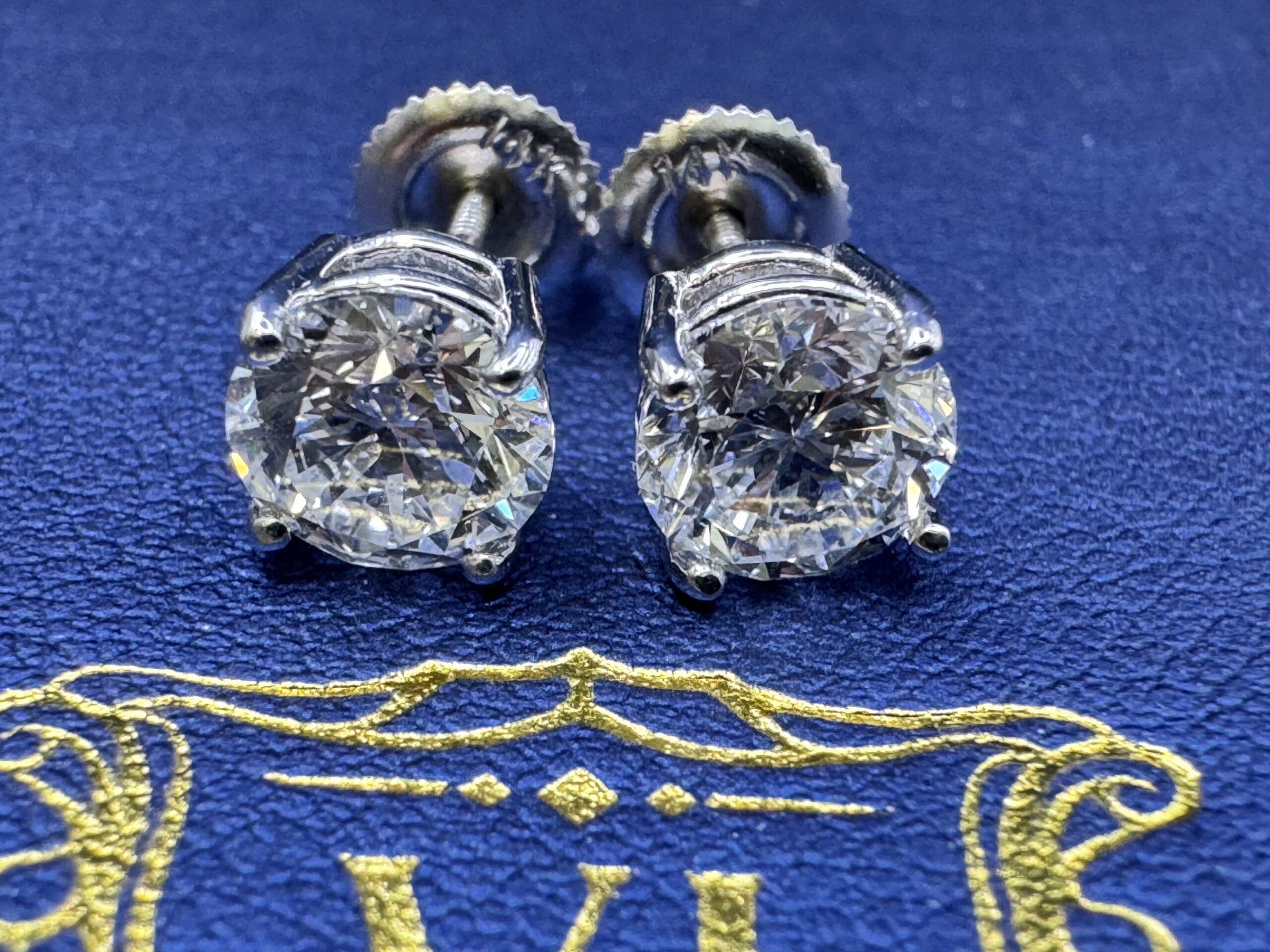 14KT W/Gold 2.05CT LabGrown Diamond RoundCut Solitaire Stud Earrings ScrewBacks 6MM Width VVS Clarity F Color