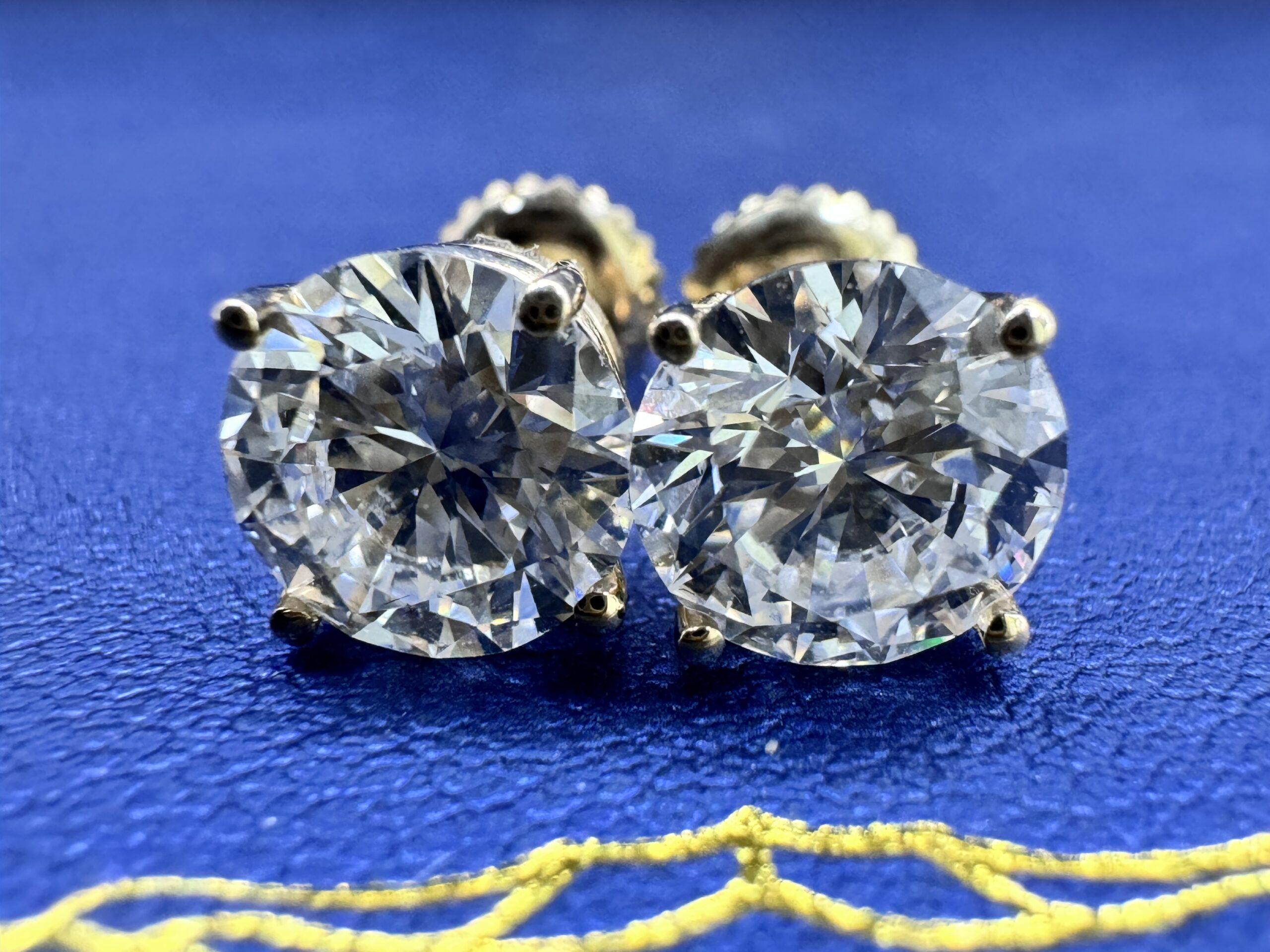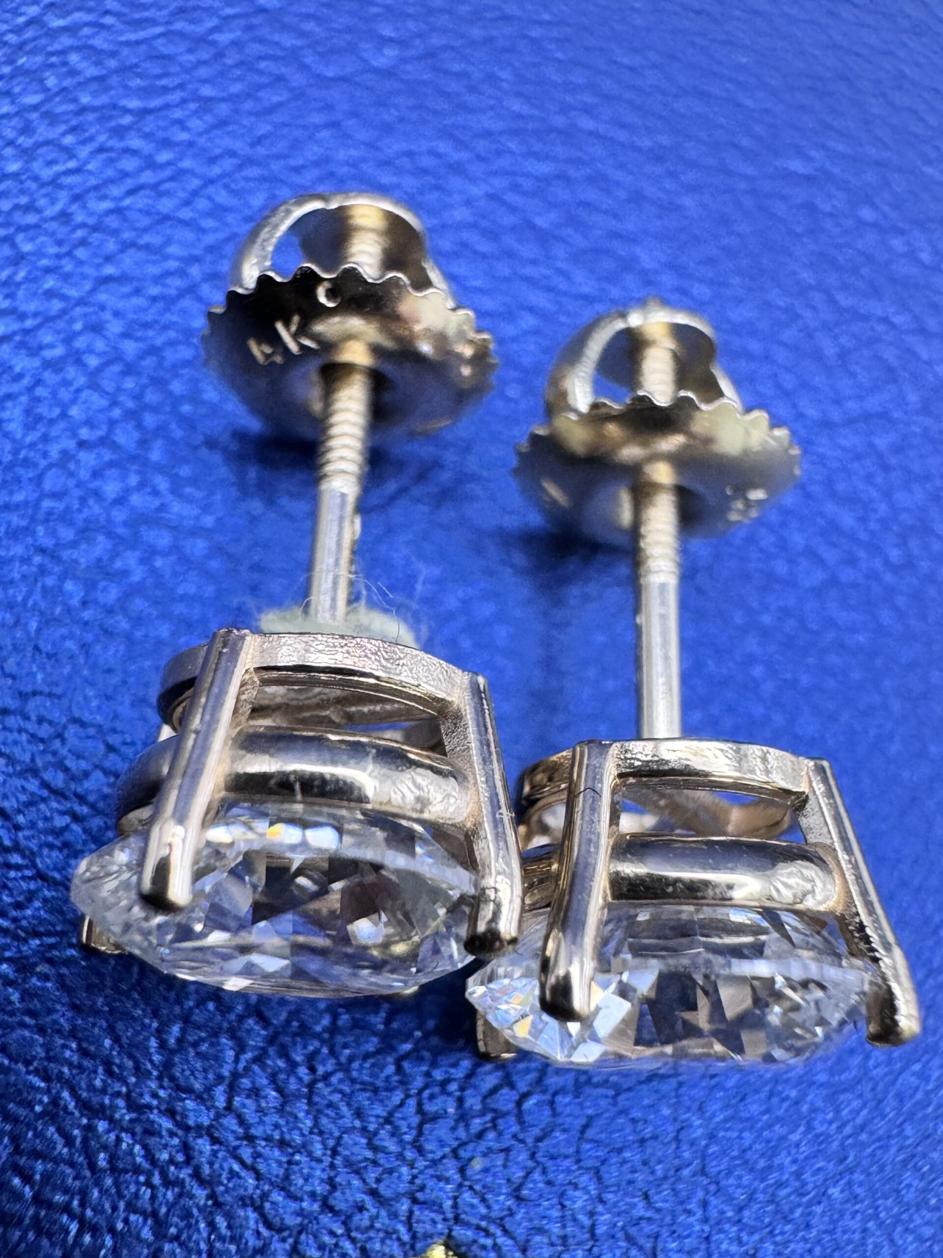 14KT W/Gold 3.00CT LabGrown Diamond RoundCut Solitaire Stud Earrings ScrewBacks 7MM Width VVS Clarity F Color