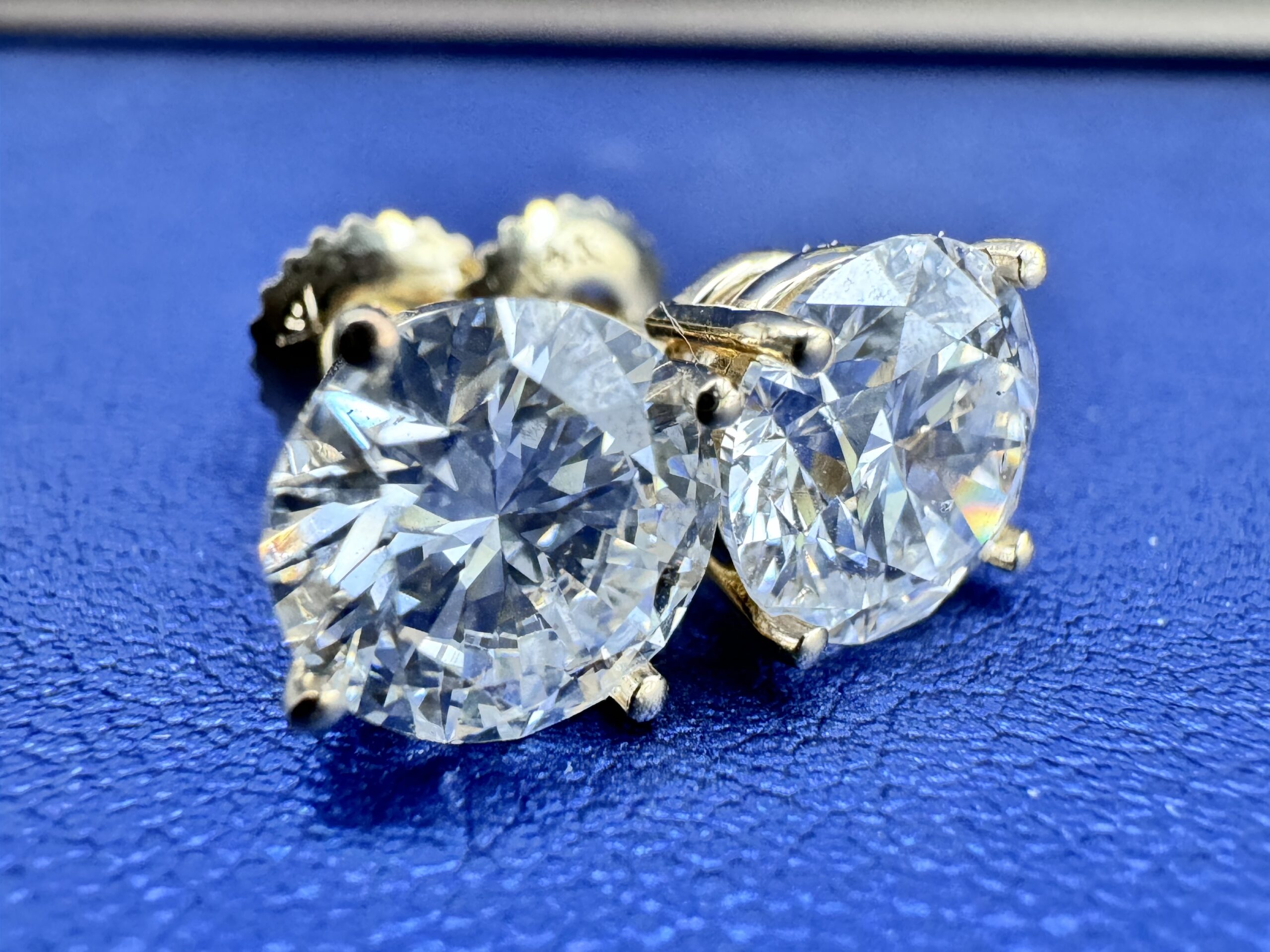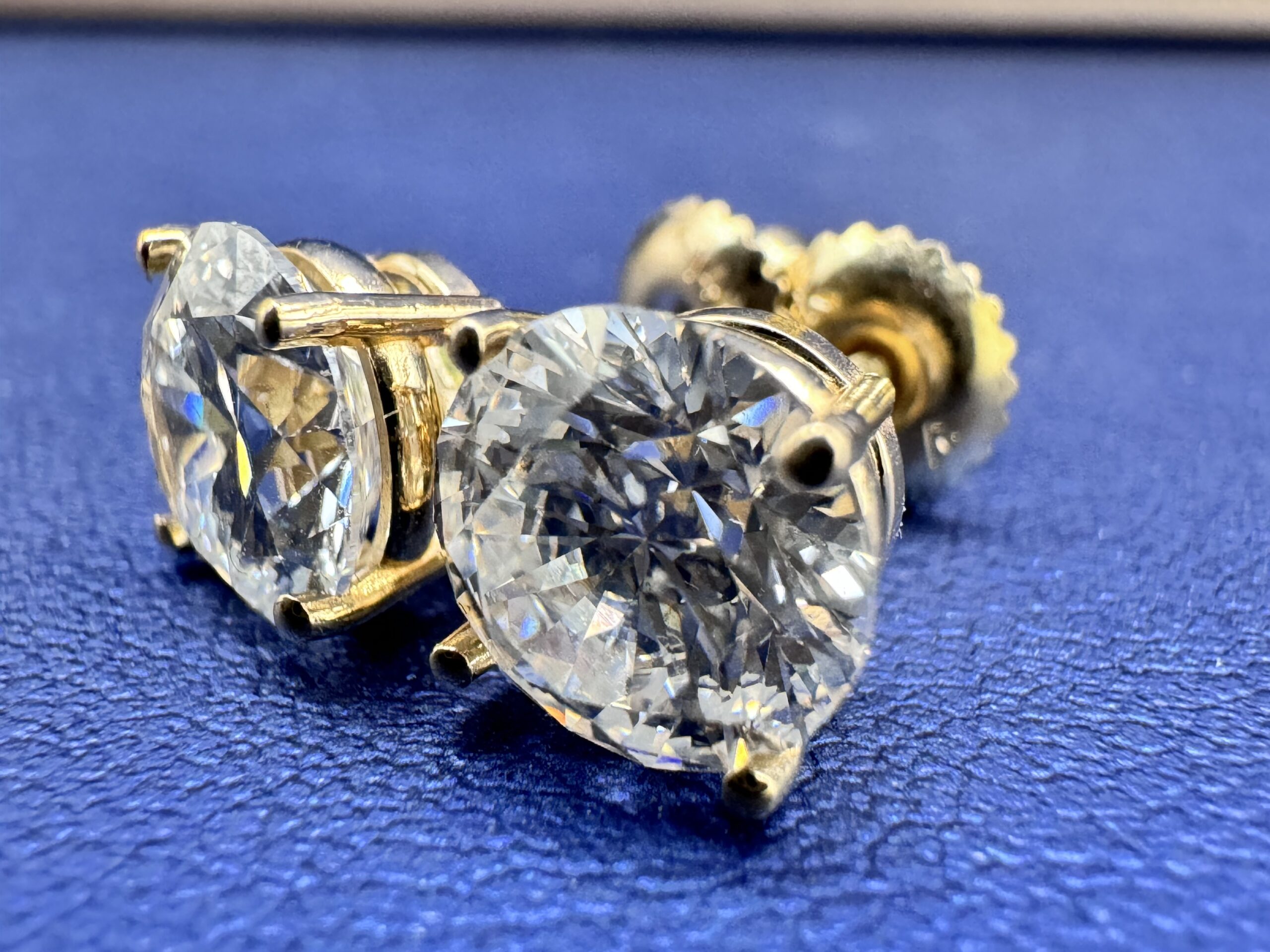 14KT W/Gold 2.05CT LabGrown Diamond RoundCut Solitaire Stud Earrings