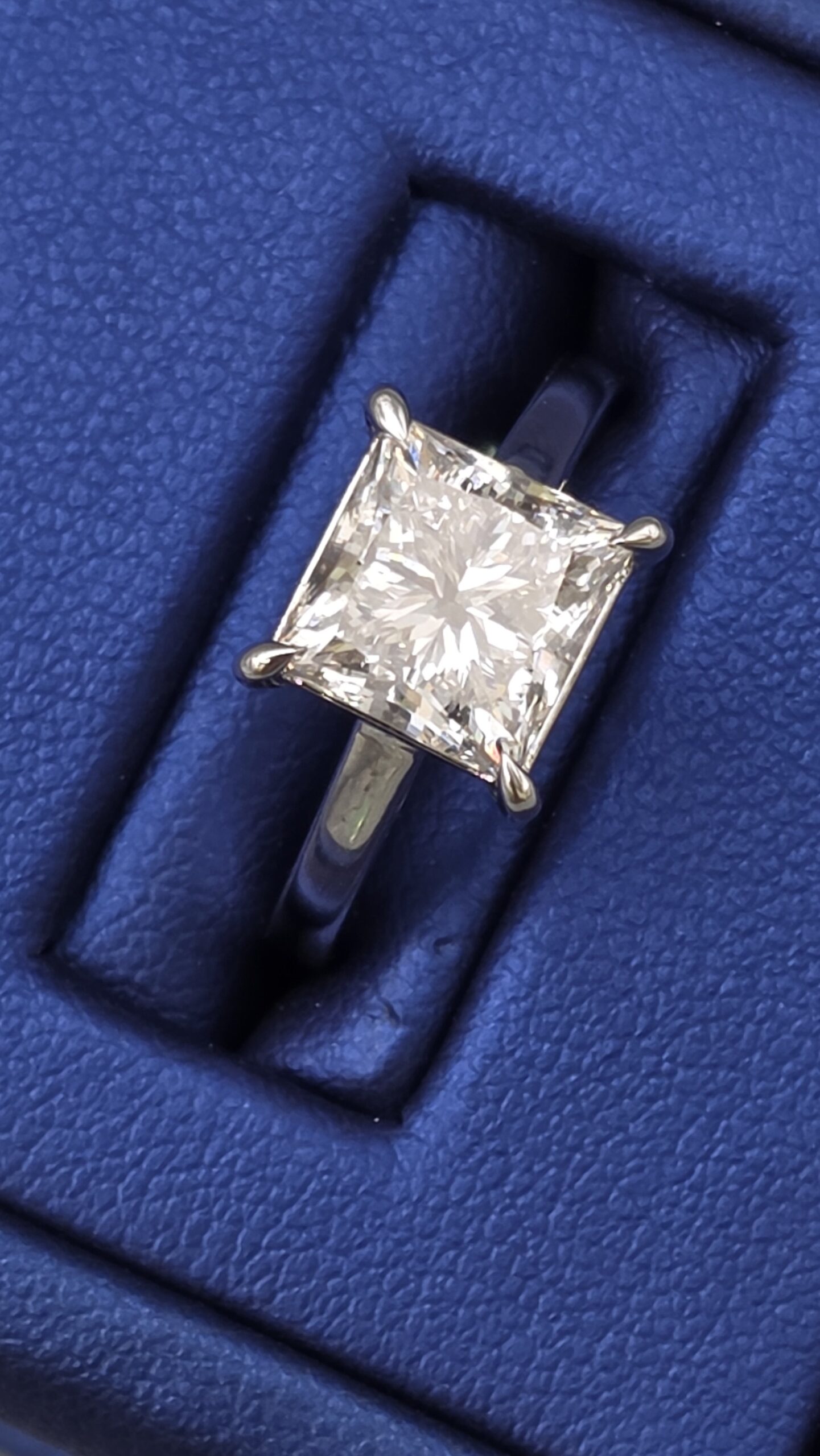 10KT W/Gold 3.04CT Xmas Special Deal Princesscut Solitaire Ring 7MM Width Of The Solitaire Size 7 Approx Gold Weight 3.9 Gram