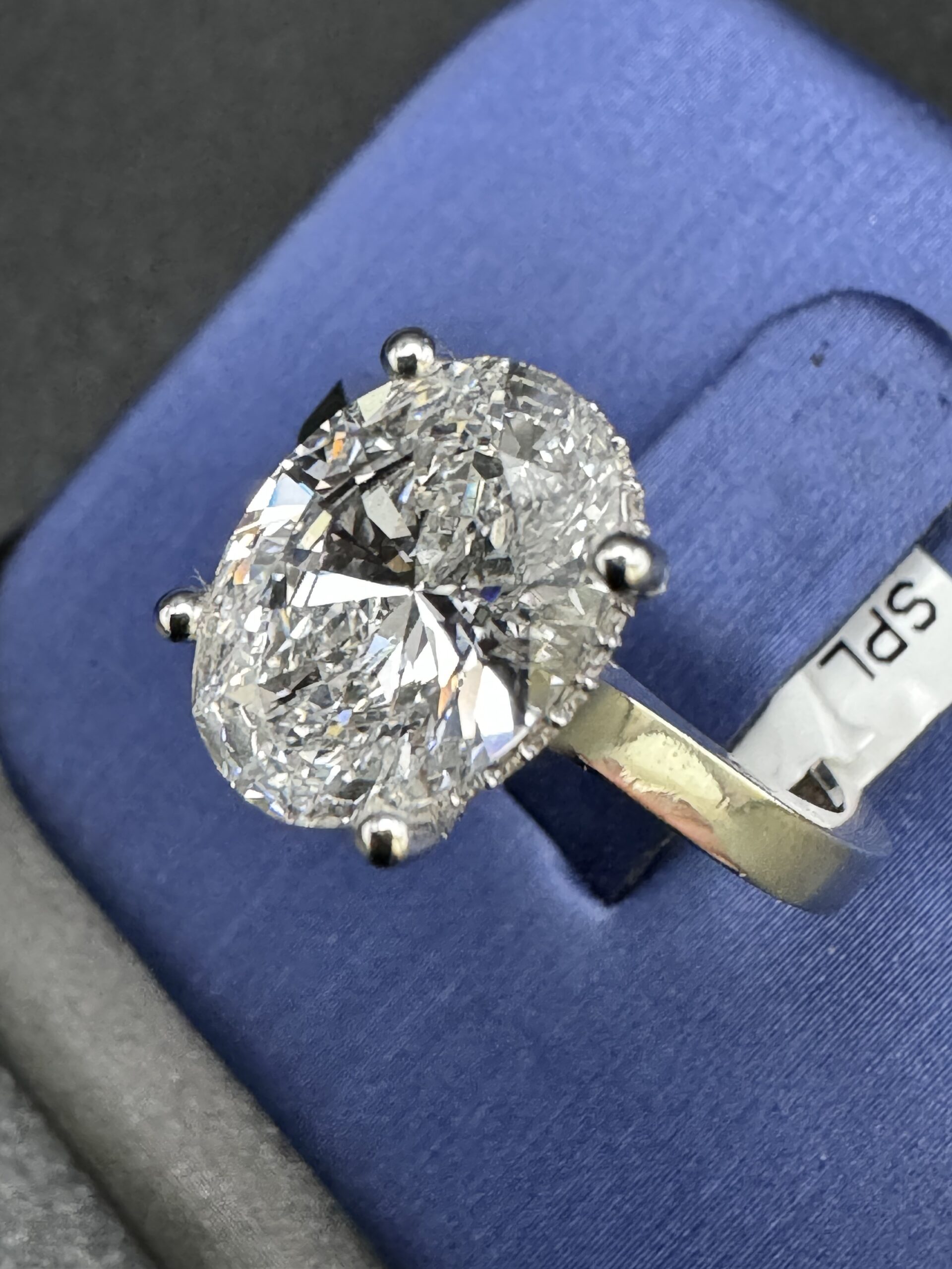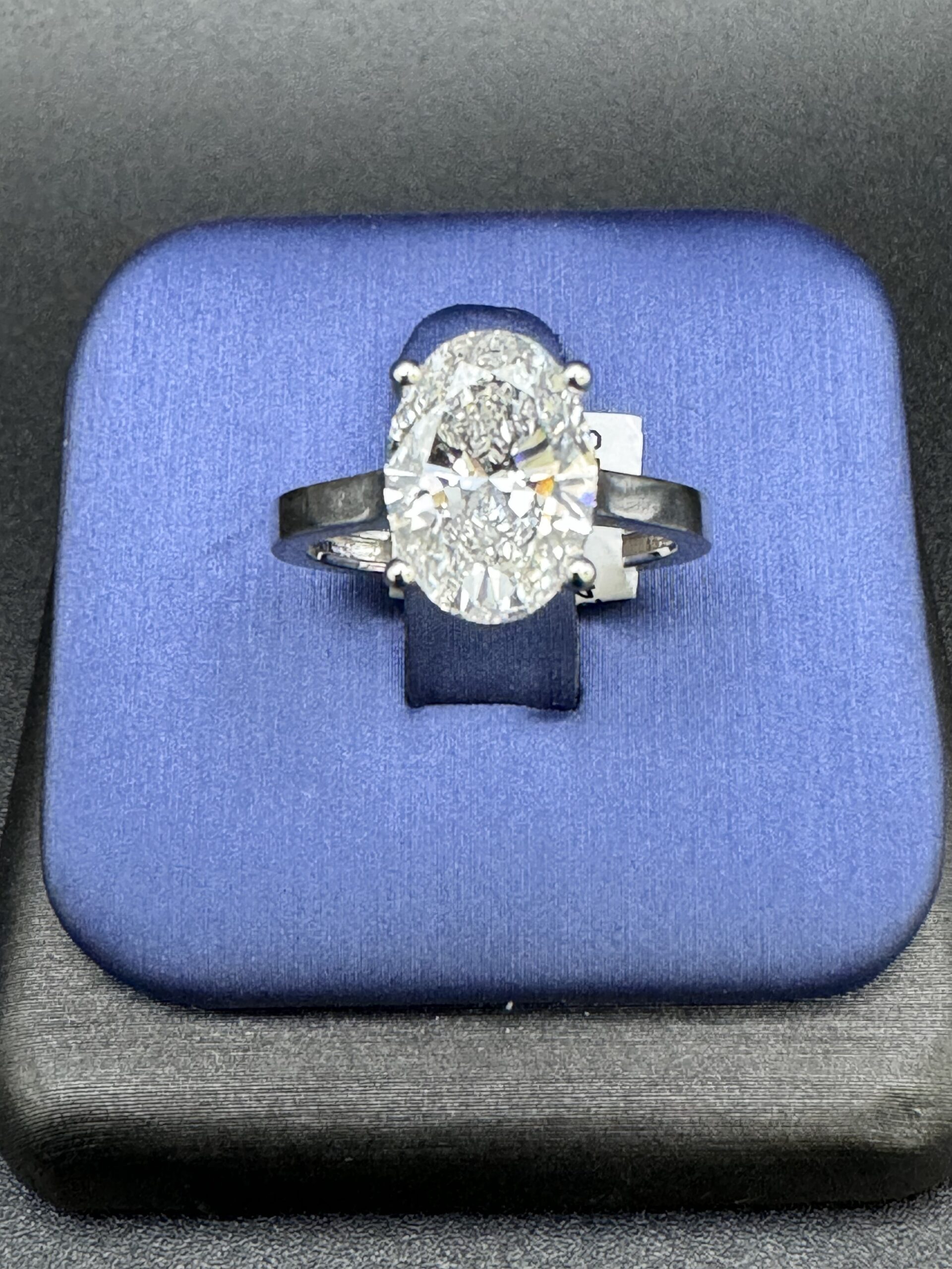 14KT W/Gold 3.10CTW LabGrown Diamond Solitaire Ring 12MM By 9MM Width Approx Gold Weight 3.8 Gram Size 7 Comes with Certificate VS F Color