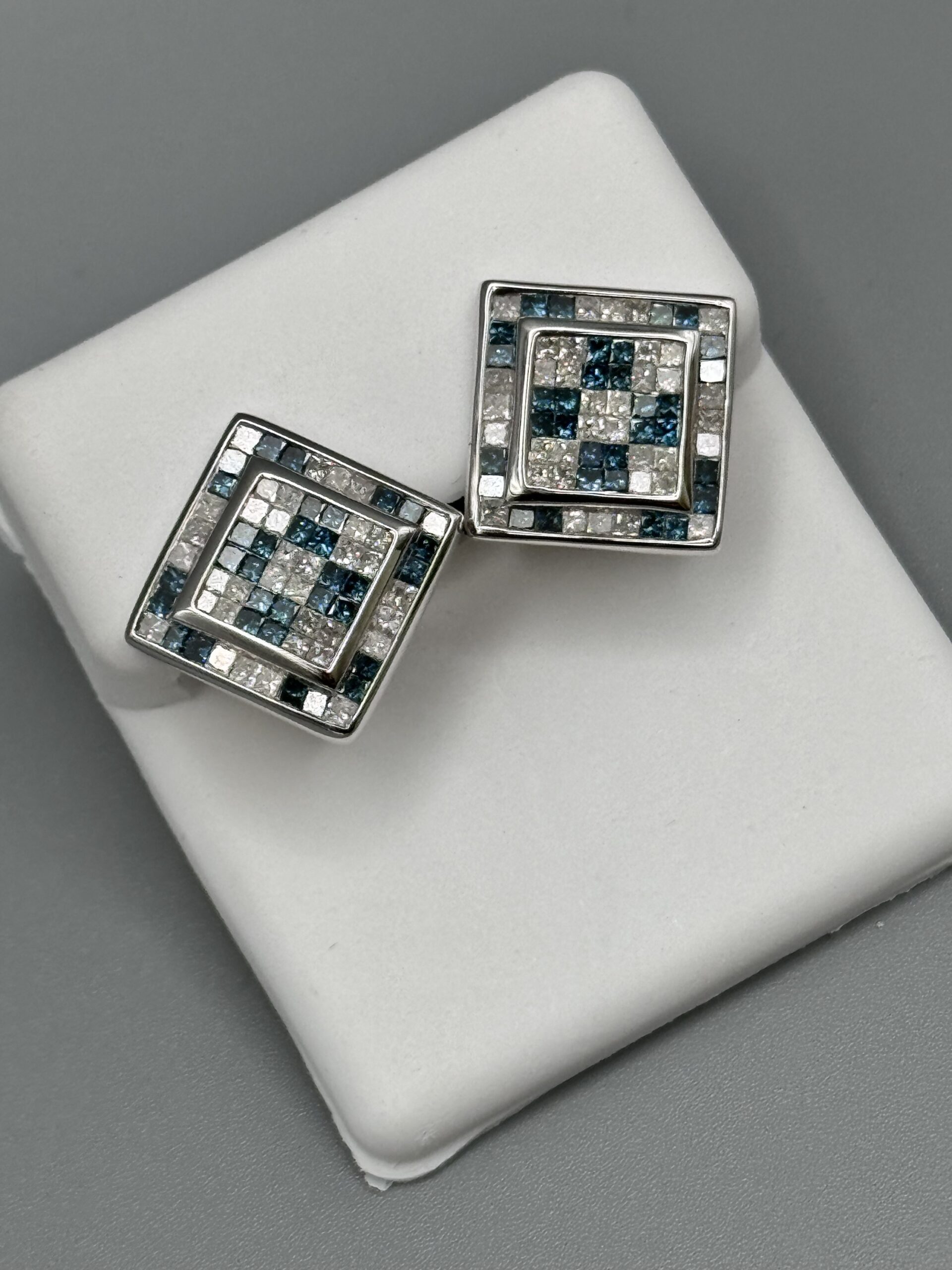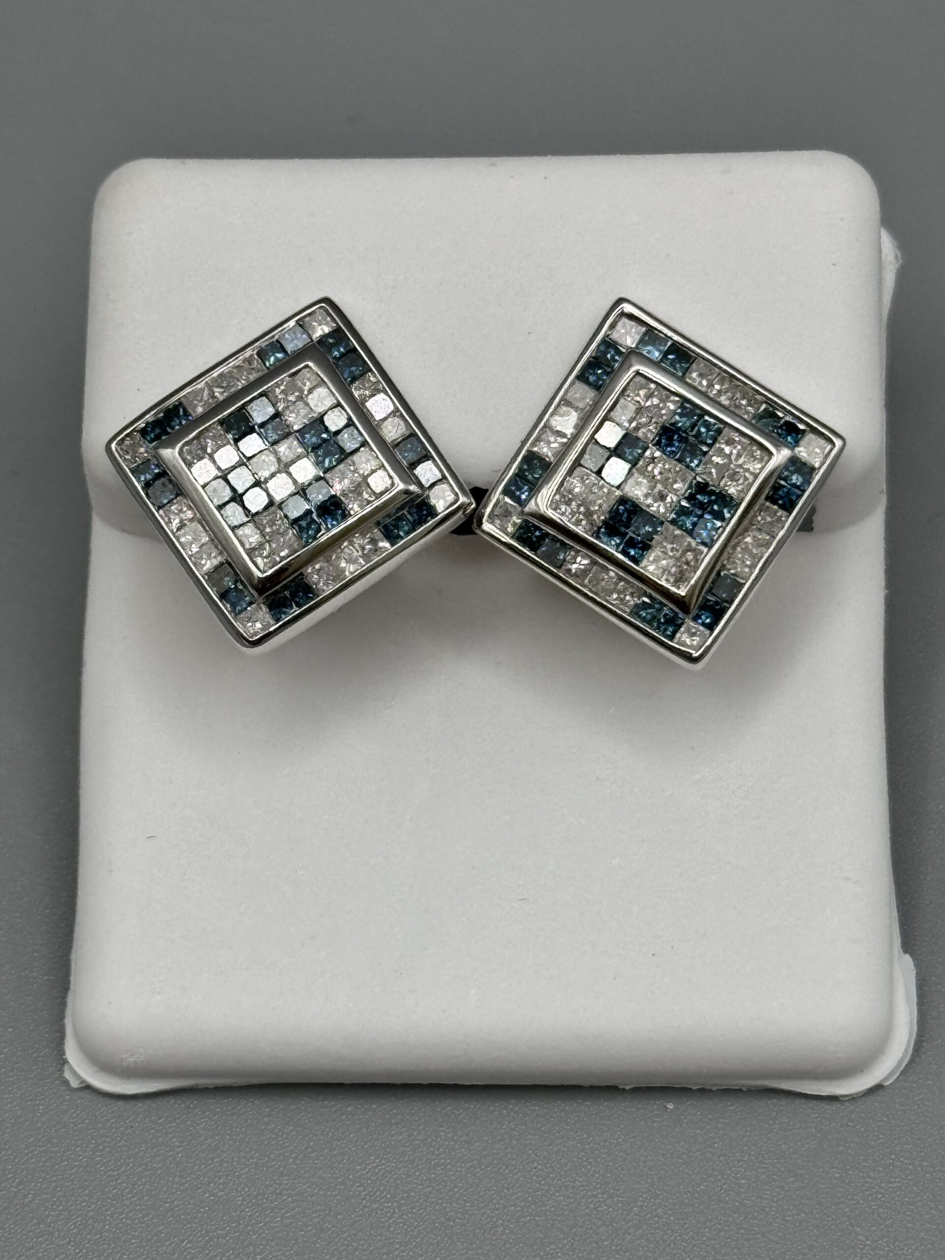 14KT W/Gold 2.00CT Blue White Diamond Earrings