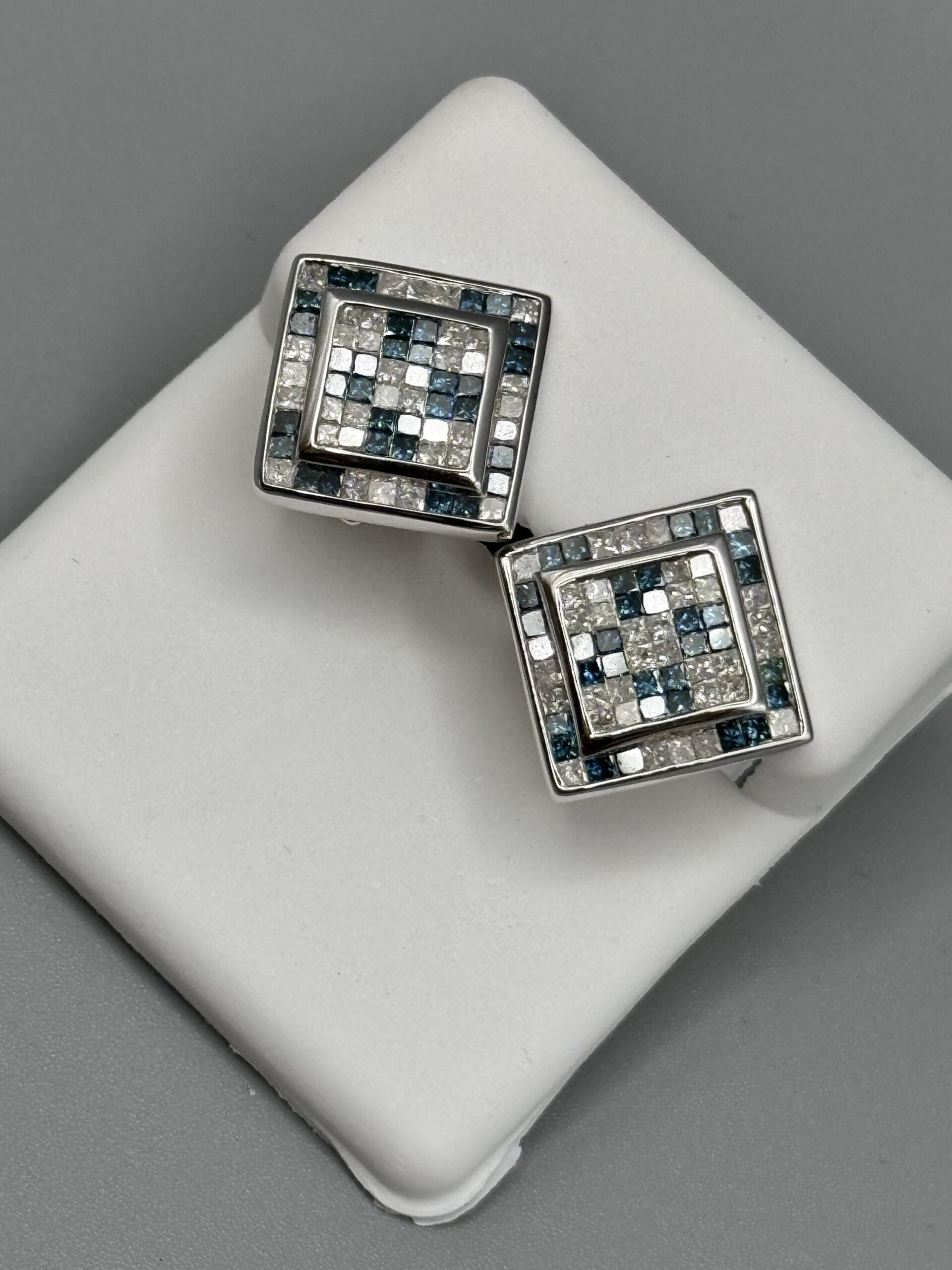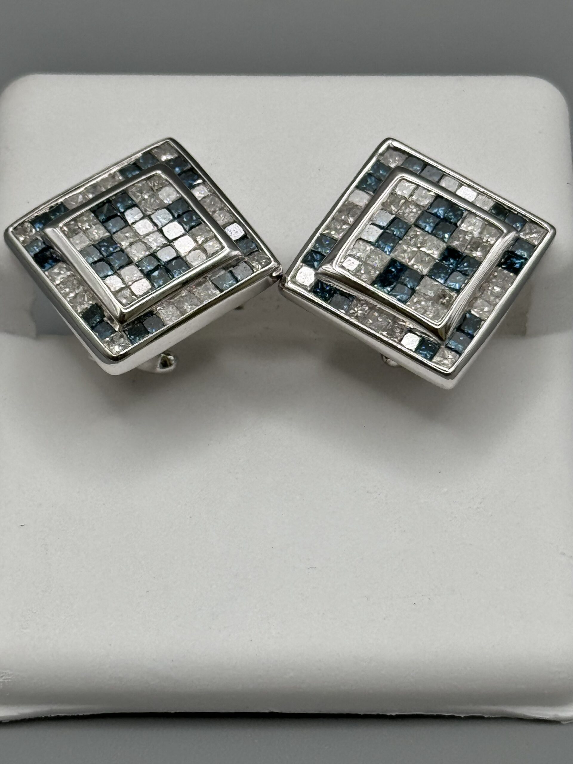 14KT W/Gold 2.75CT Blue White Diamond Earrings