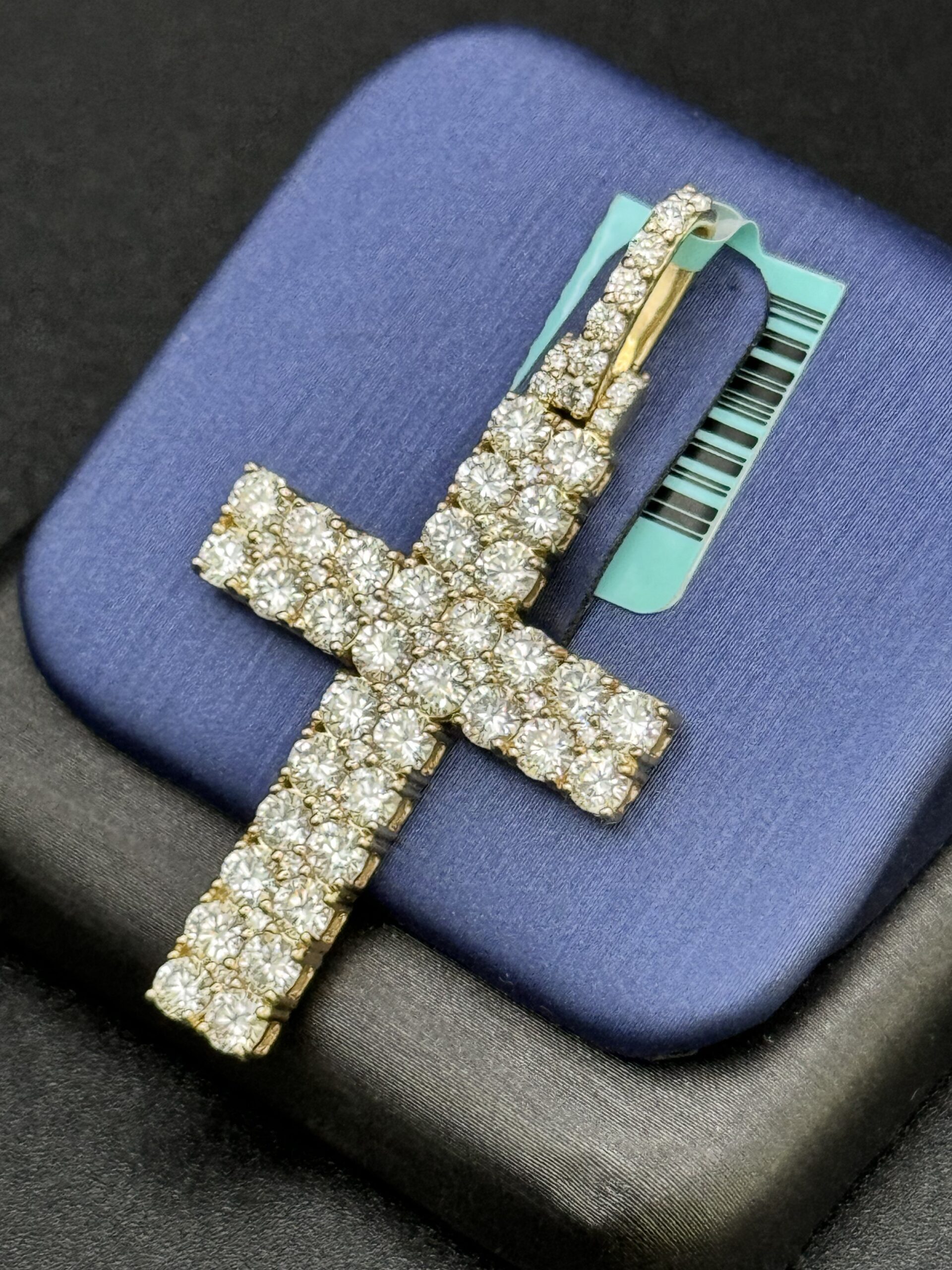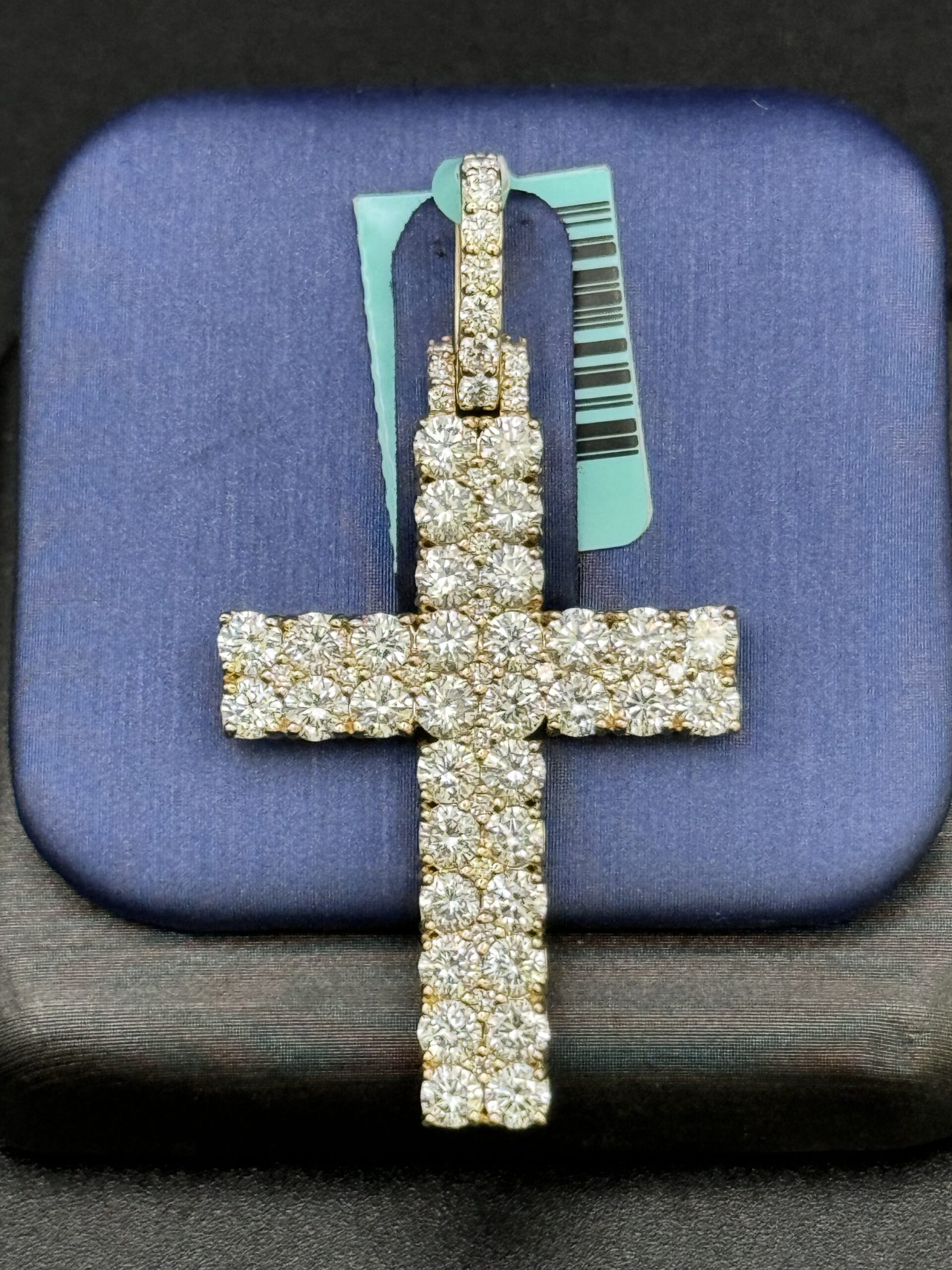 Illuminate your style with this stunning 14KT gold cross pendant! At 1.75″ tall and 1″ wide, it features 3.74CT of lab-grown diamonds, VVS clarity, and a chic opening. Weighing 4.9 grams of pure elegance!
