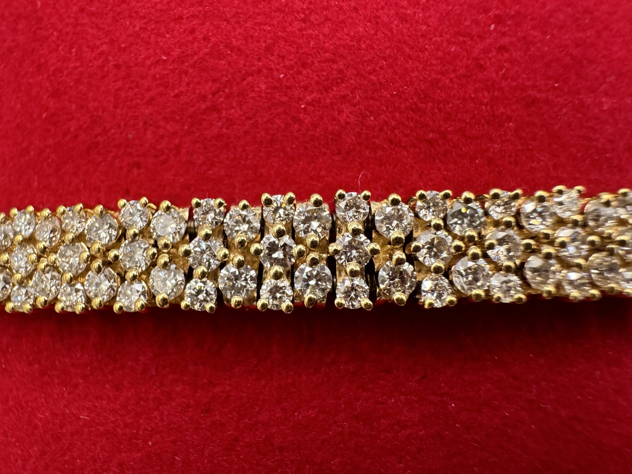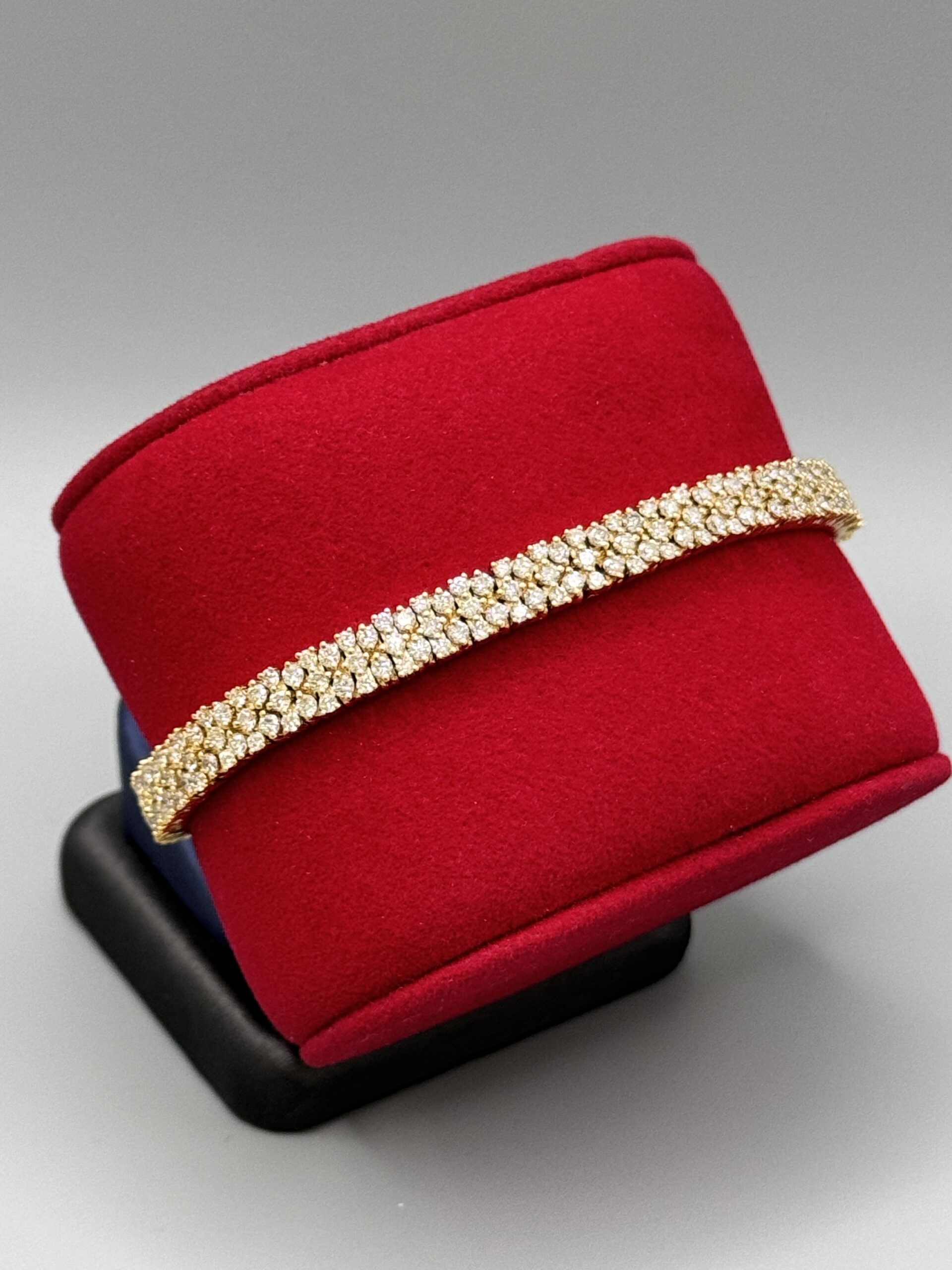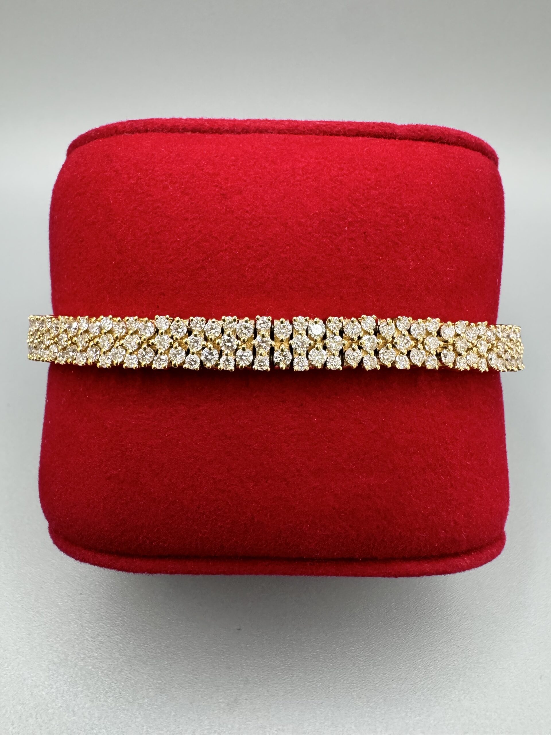 14KT W/Gold 7.00CT Diamond Flex Bracelet Stretchy Bracelet Fit Upto 8″ Wrist 3Row ProngSet VVs Quality Diamonds 6MM Width Approx Gold Weight 25.9 Grams