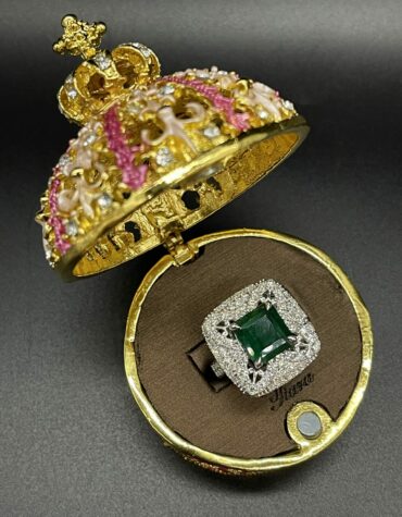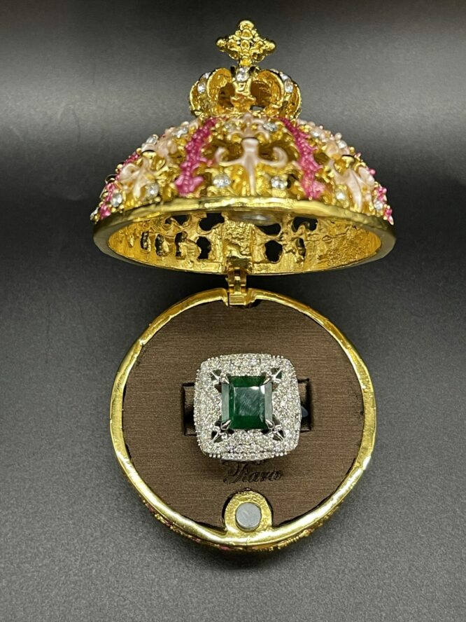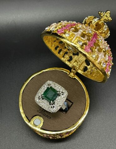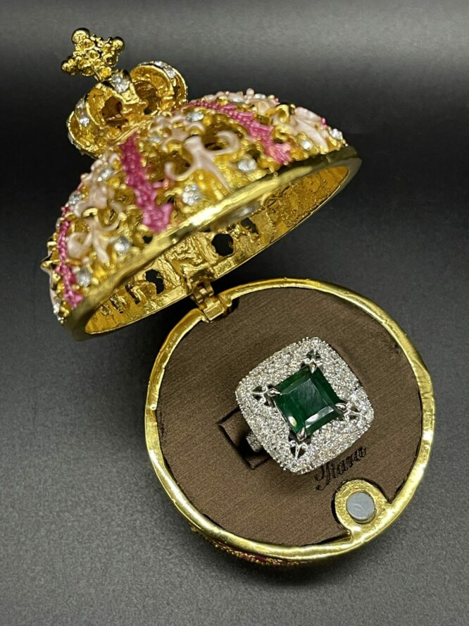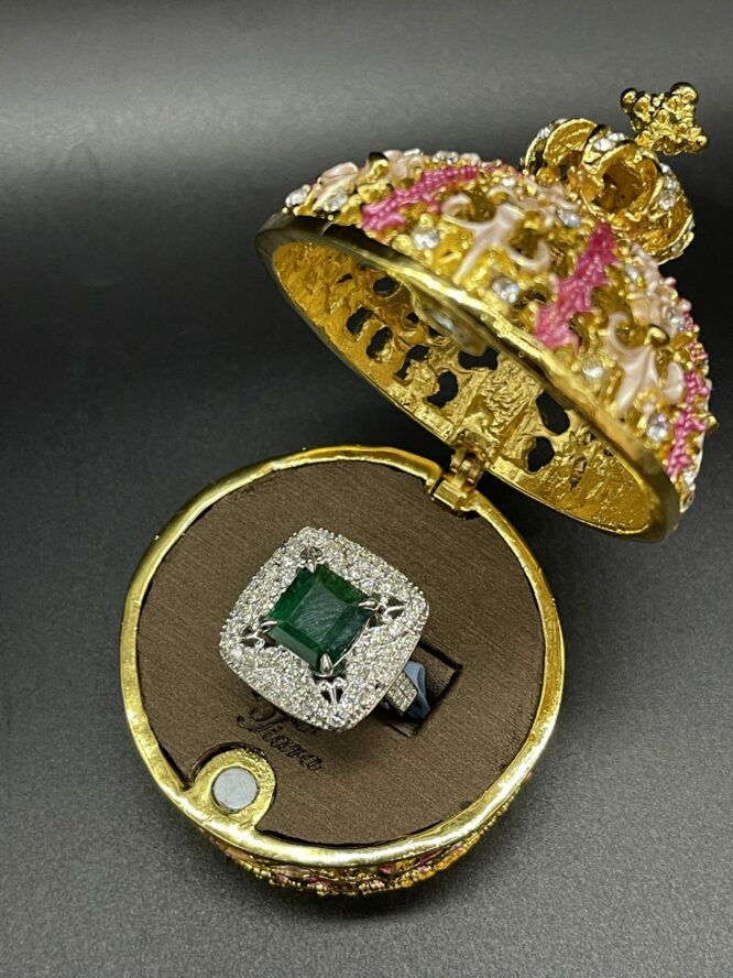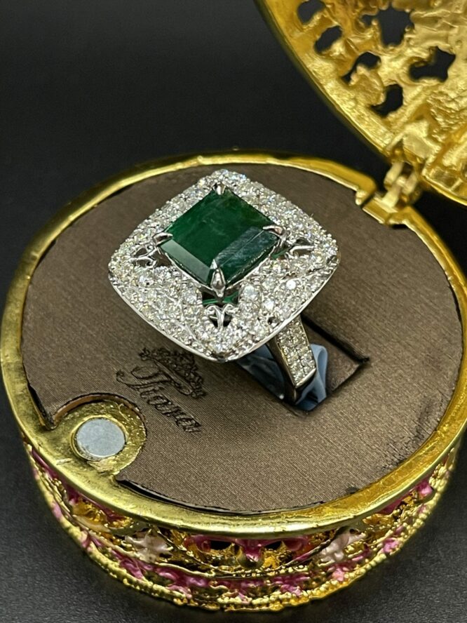 14KT White Gold Setting 3.28CT Genuine Square Emerald Stone With 1.65CT VVS Clarity Diamonds
