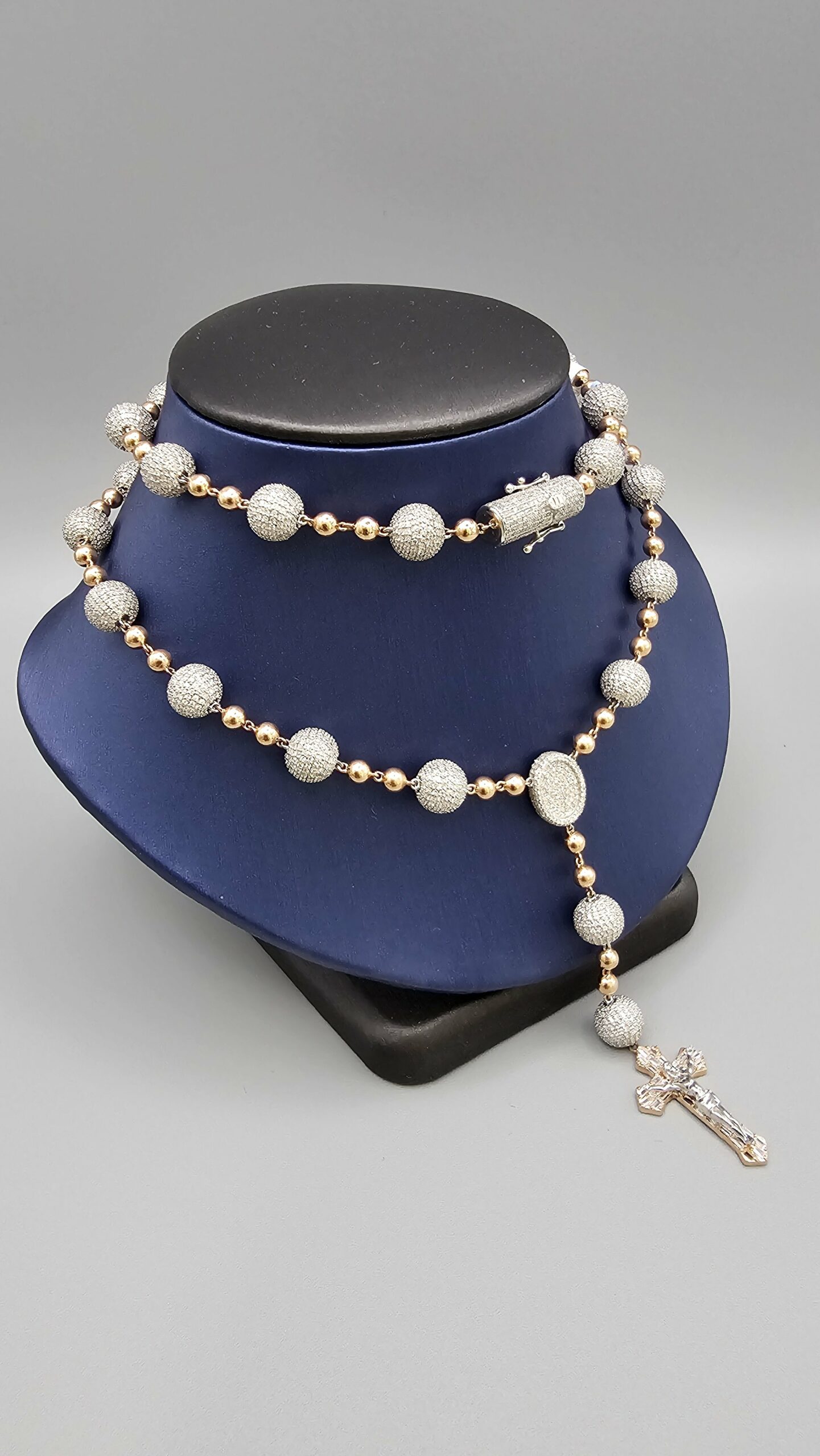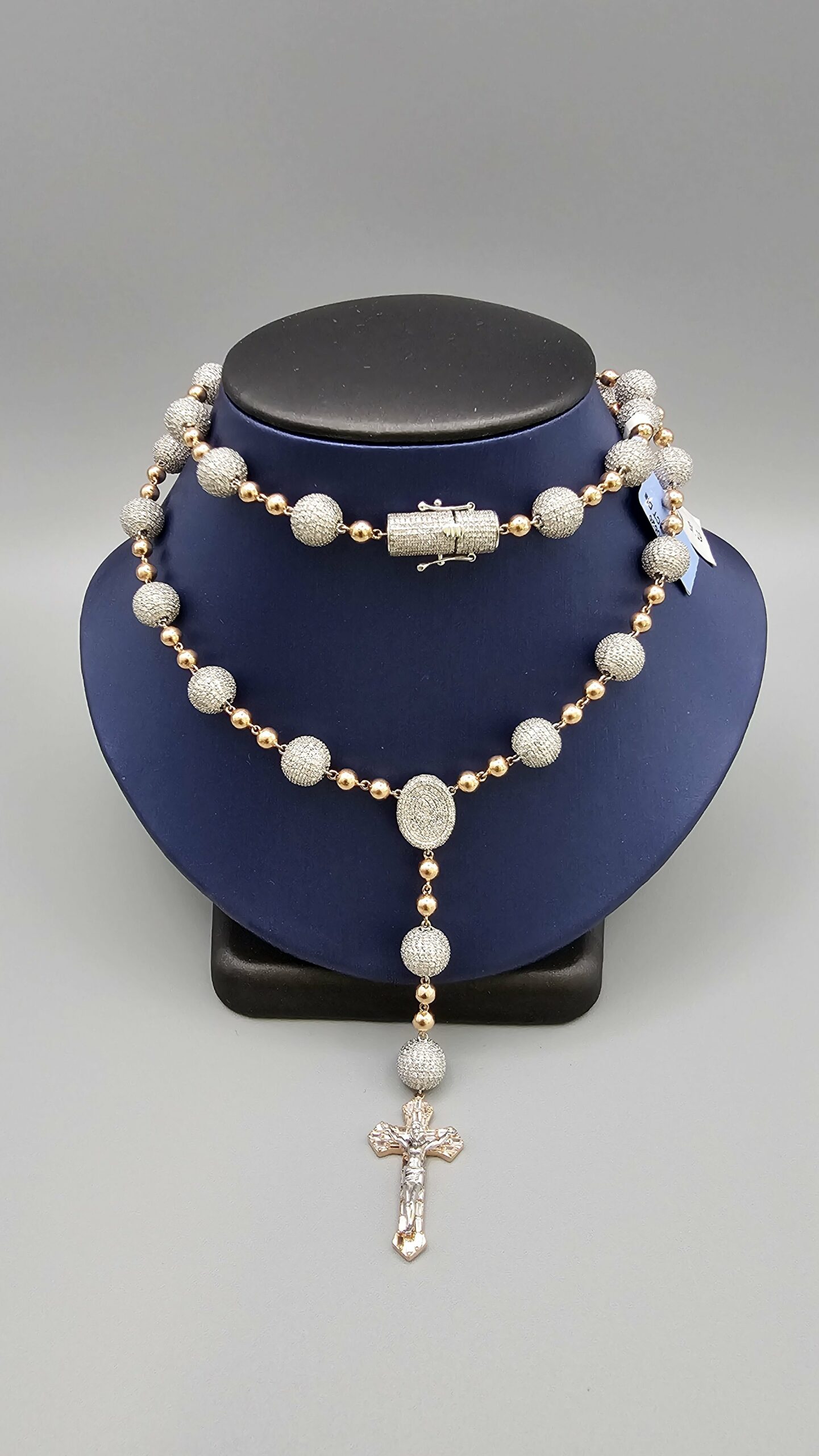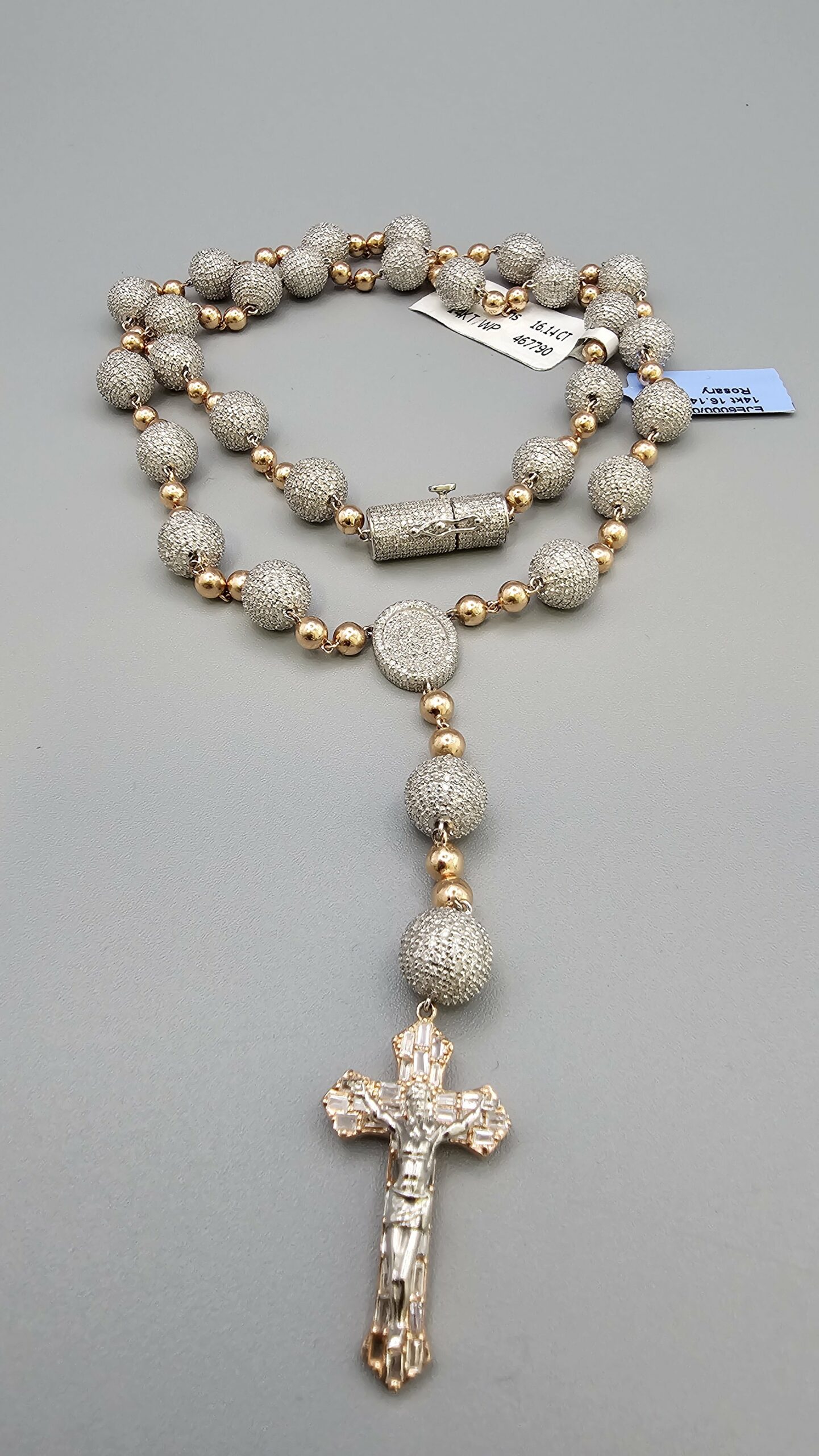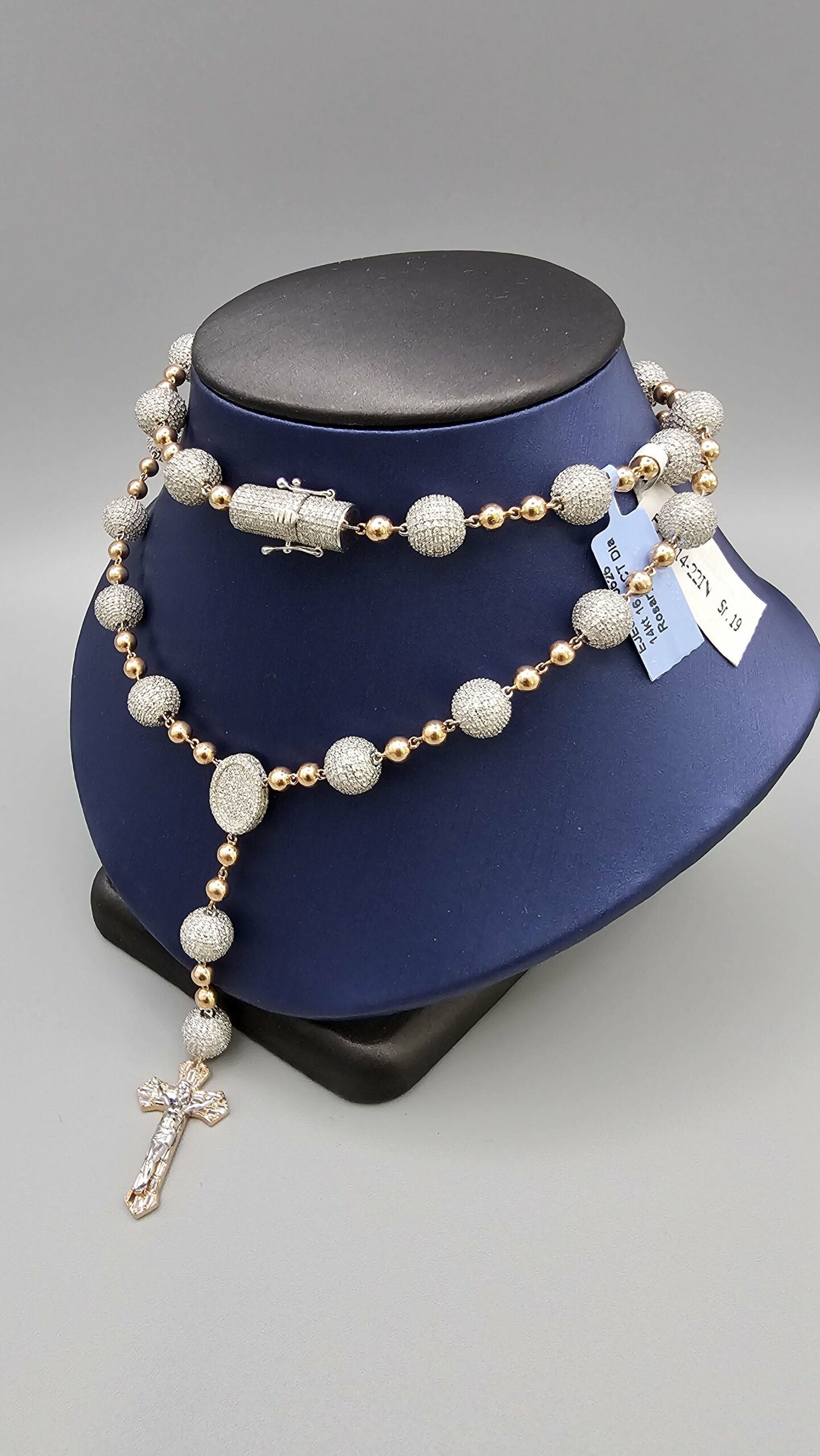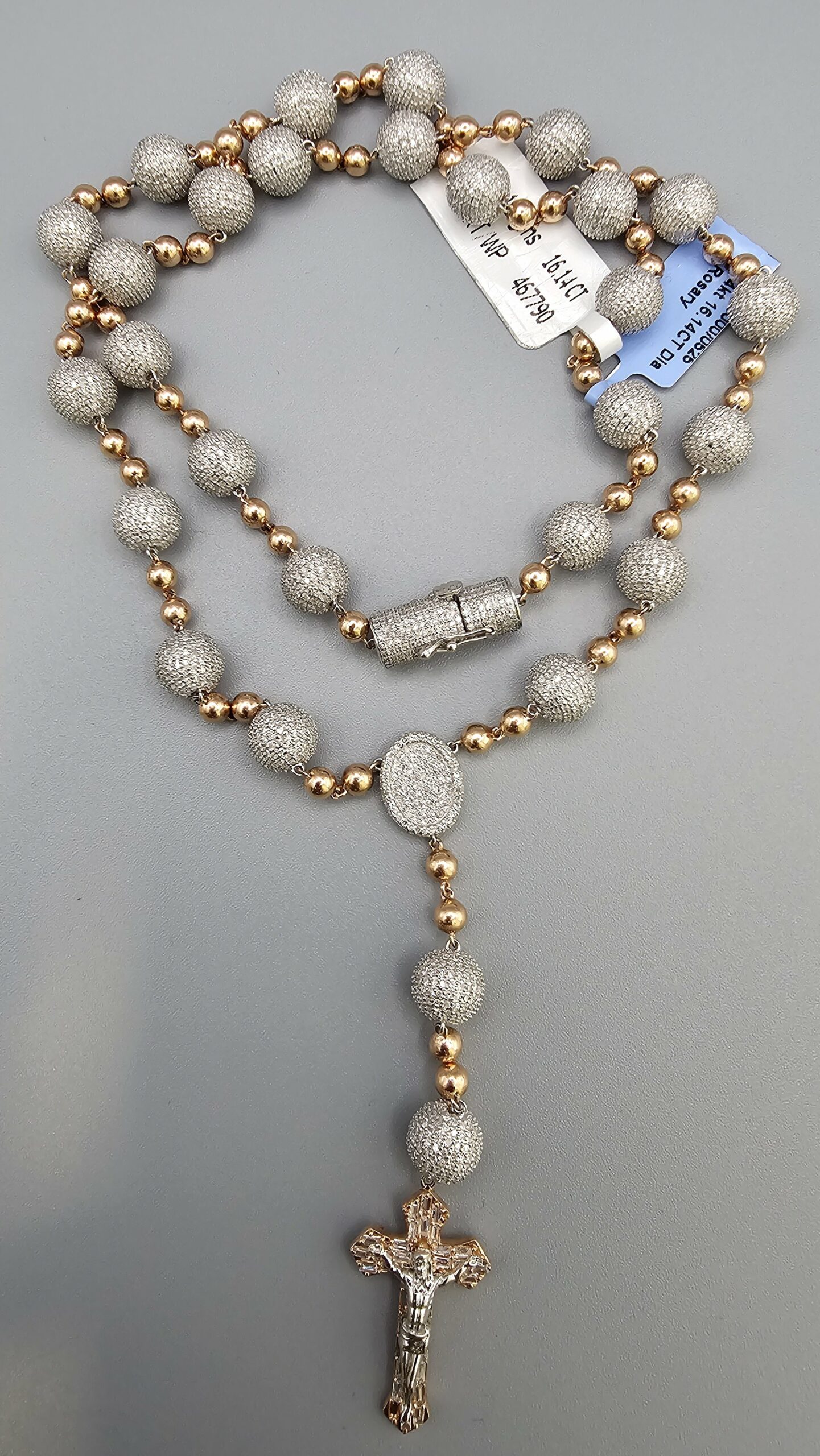 14KT W/RGold 16.14CT Diamond Rosary Necklace 8MM Width Approx Gold Weight 53.1 Gram 22″ All VS Clairty Diamonds