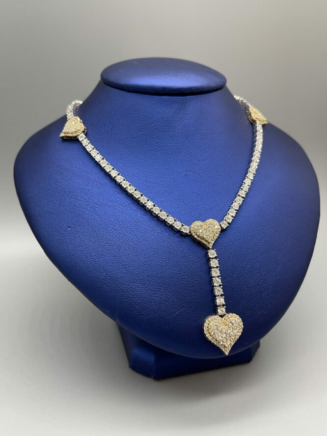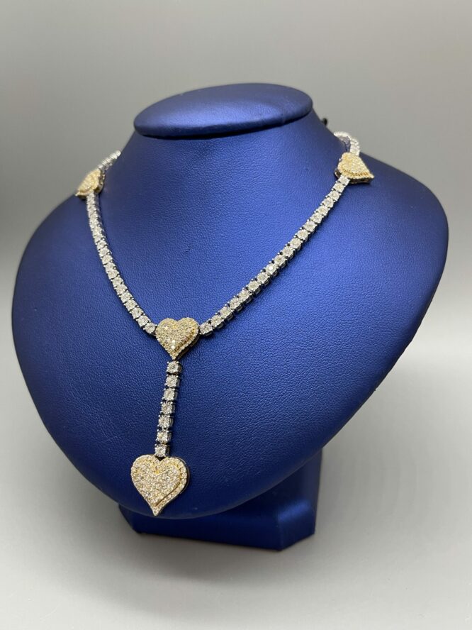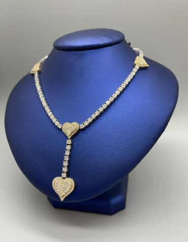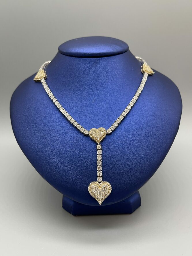 14KT TwoTone 4.94CT Diamond Heart Necklace 16″ With 1.5″ Dangle Design 4MM Width Approx Gold Weight 27.2 Grams VS Clarity Diamonds