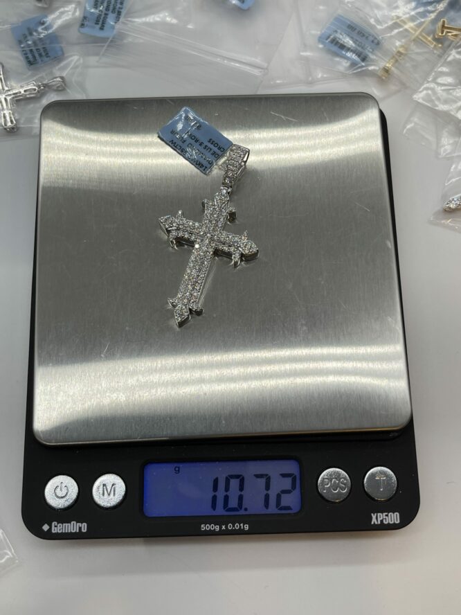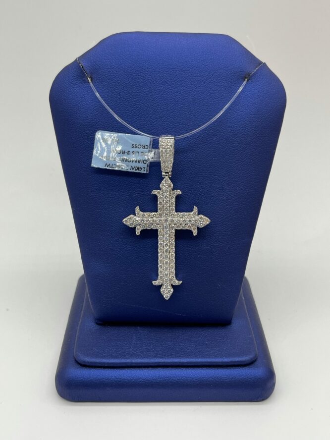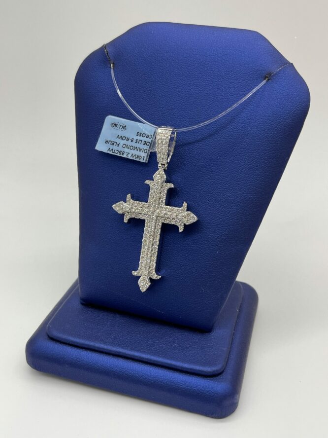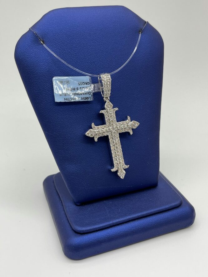 14KT/WGold 2.35CT Dia Fleur Delis Fancy Cross 2.25CT Diamond Cross
