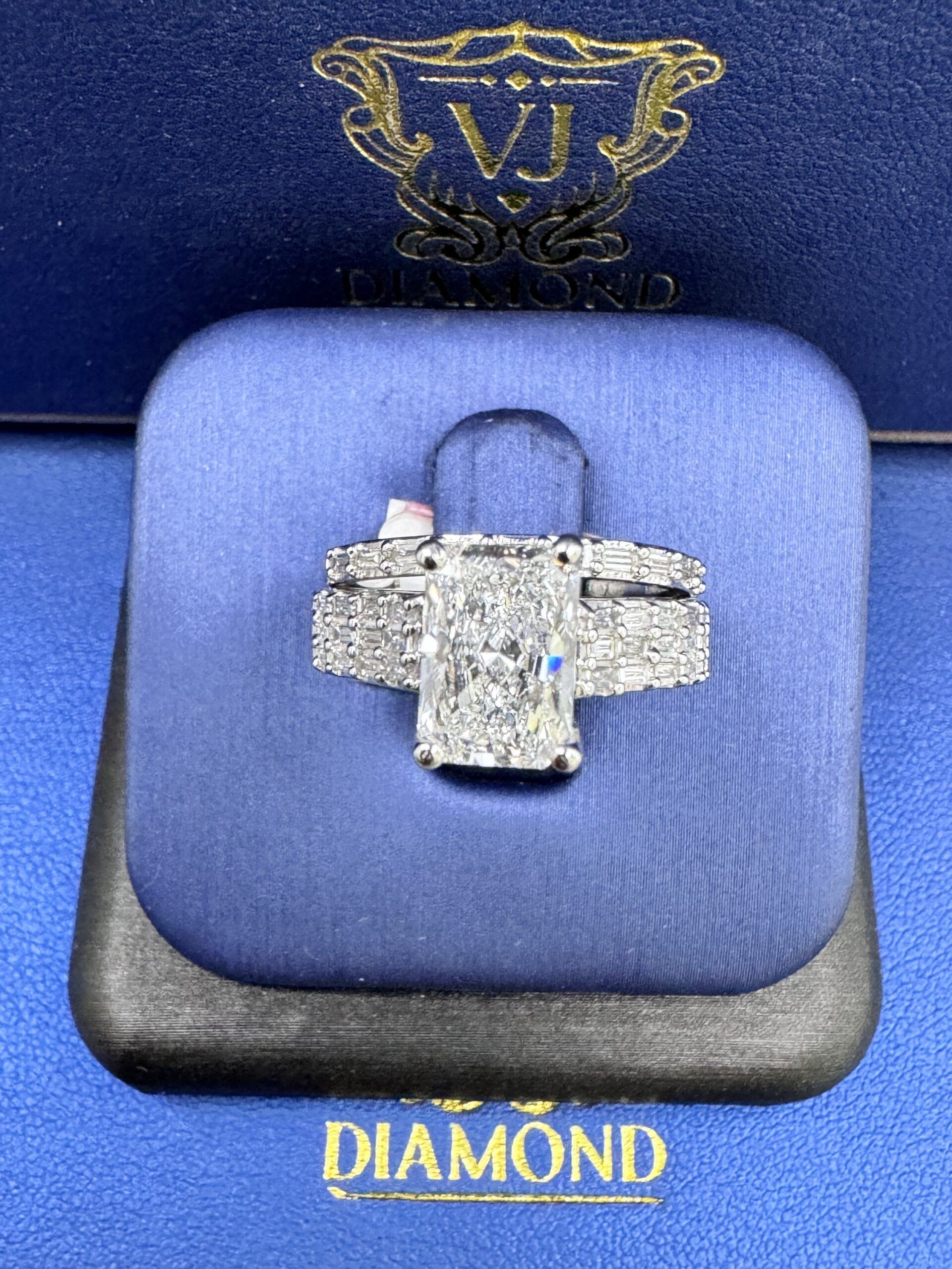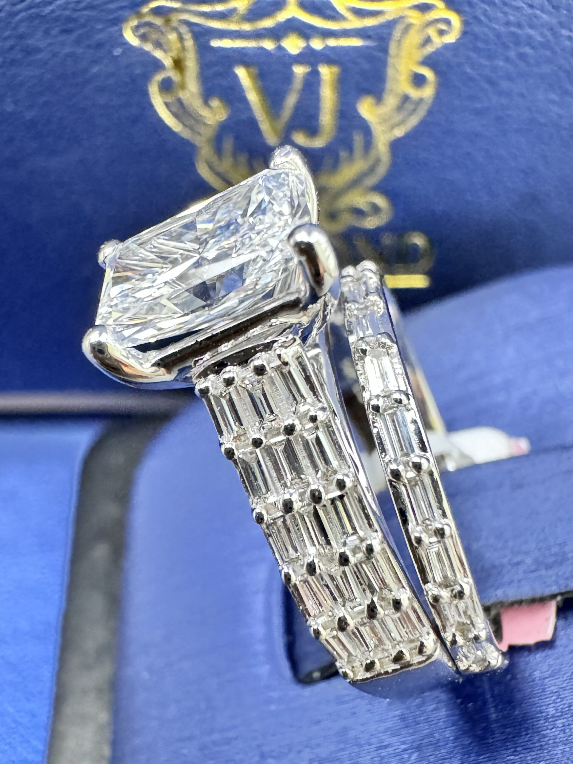 14KT WGold 2.65CT LabGrown EmeraldCut Diamond Bridal Ring With Baguette Sides And Matching Band 2.00 CT Center Solitaire VVS F Color Size 7 Approx Gold Weight 6.3 Gram