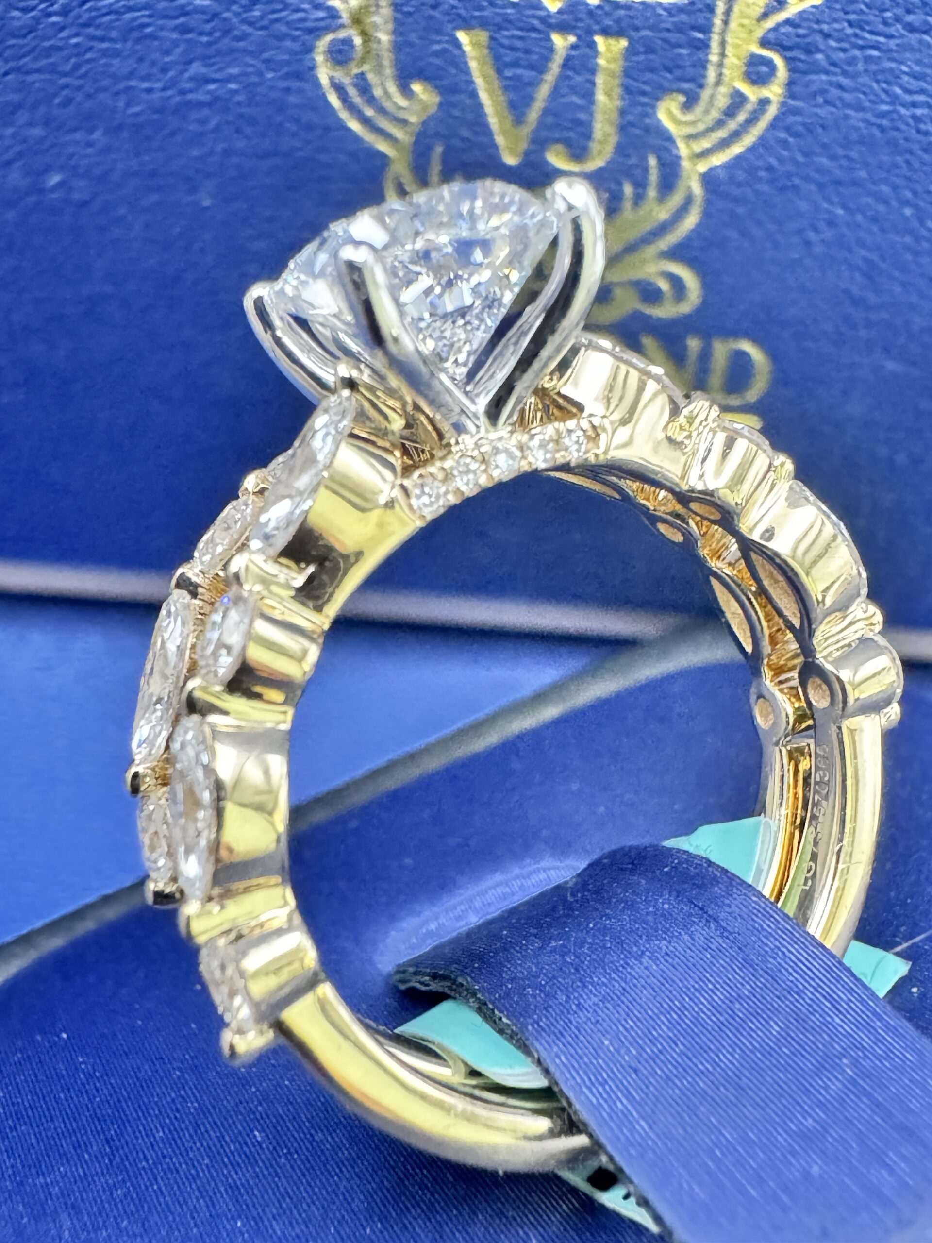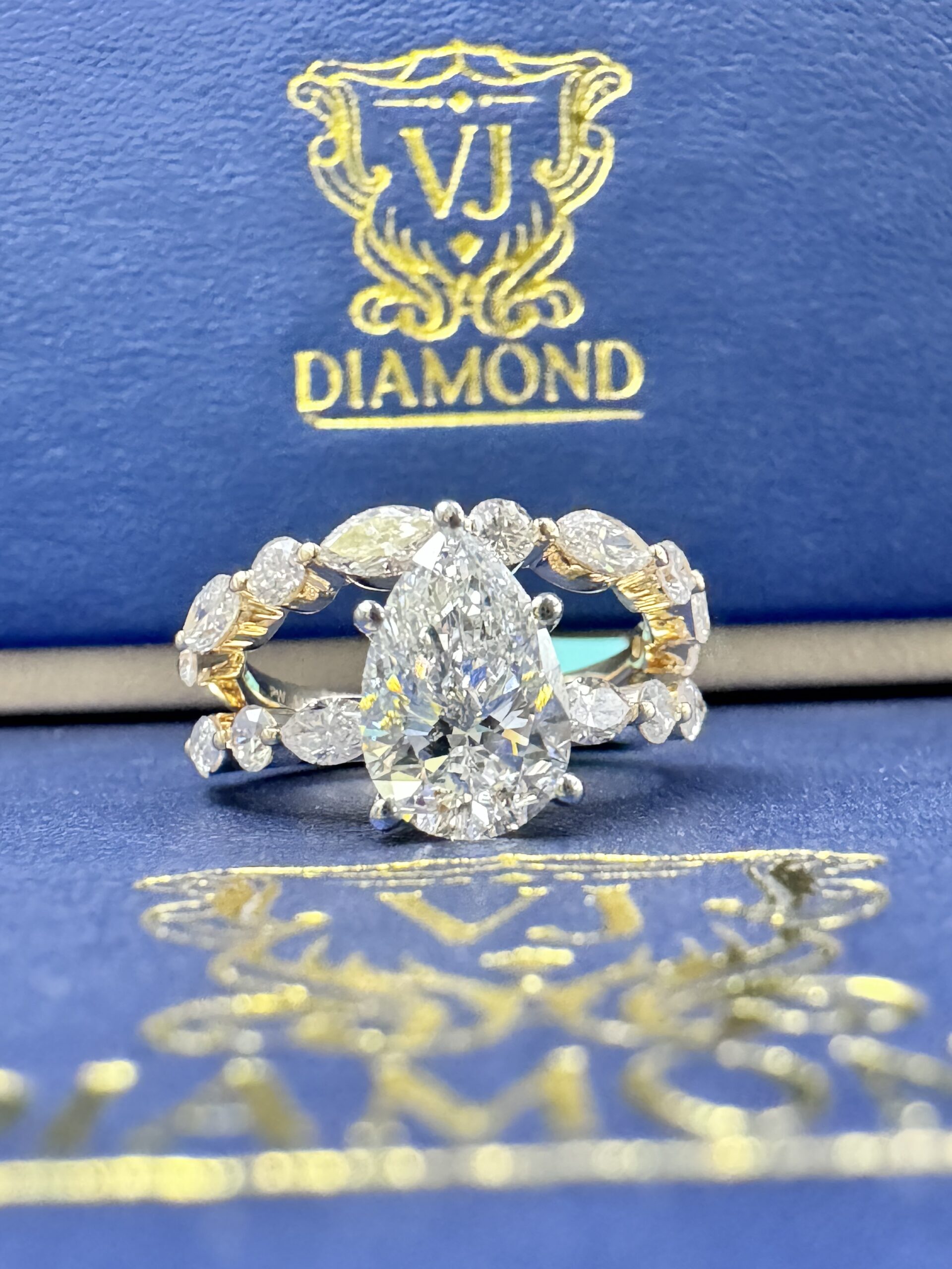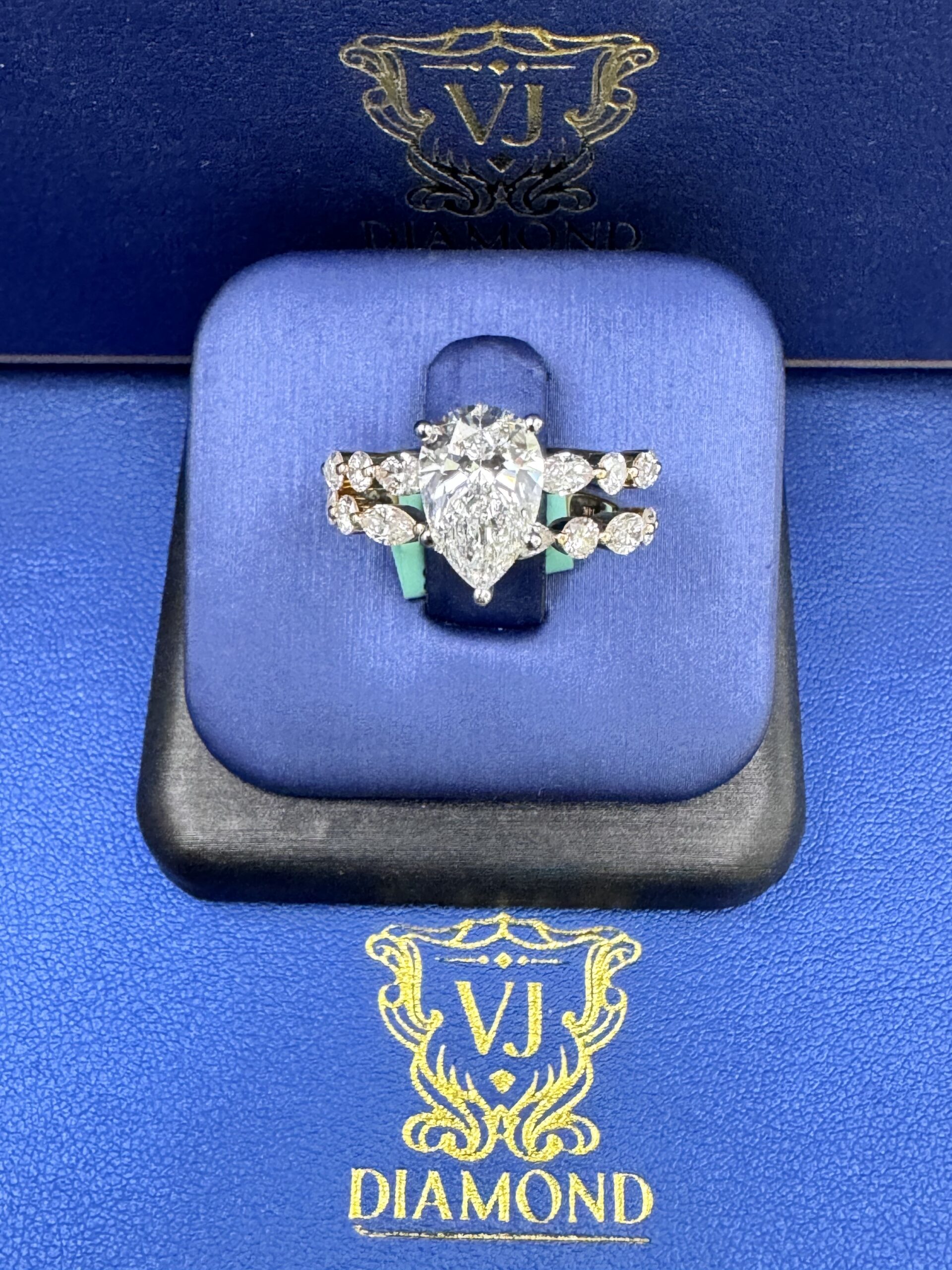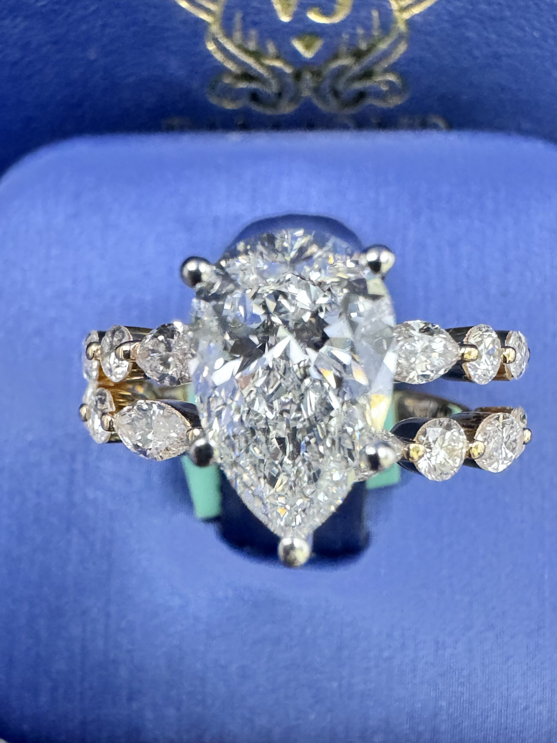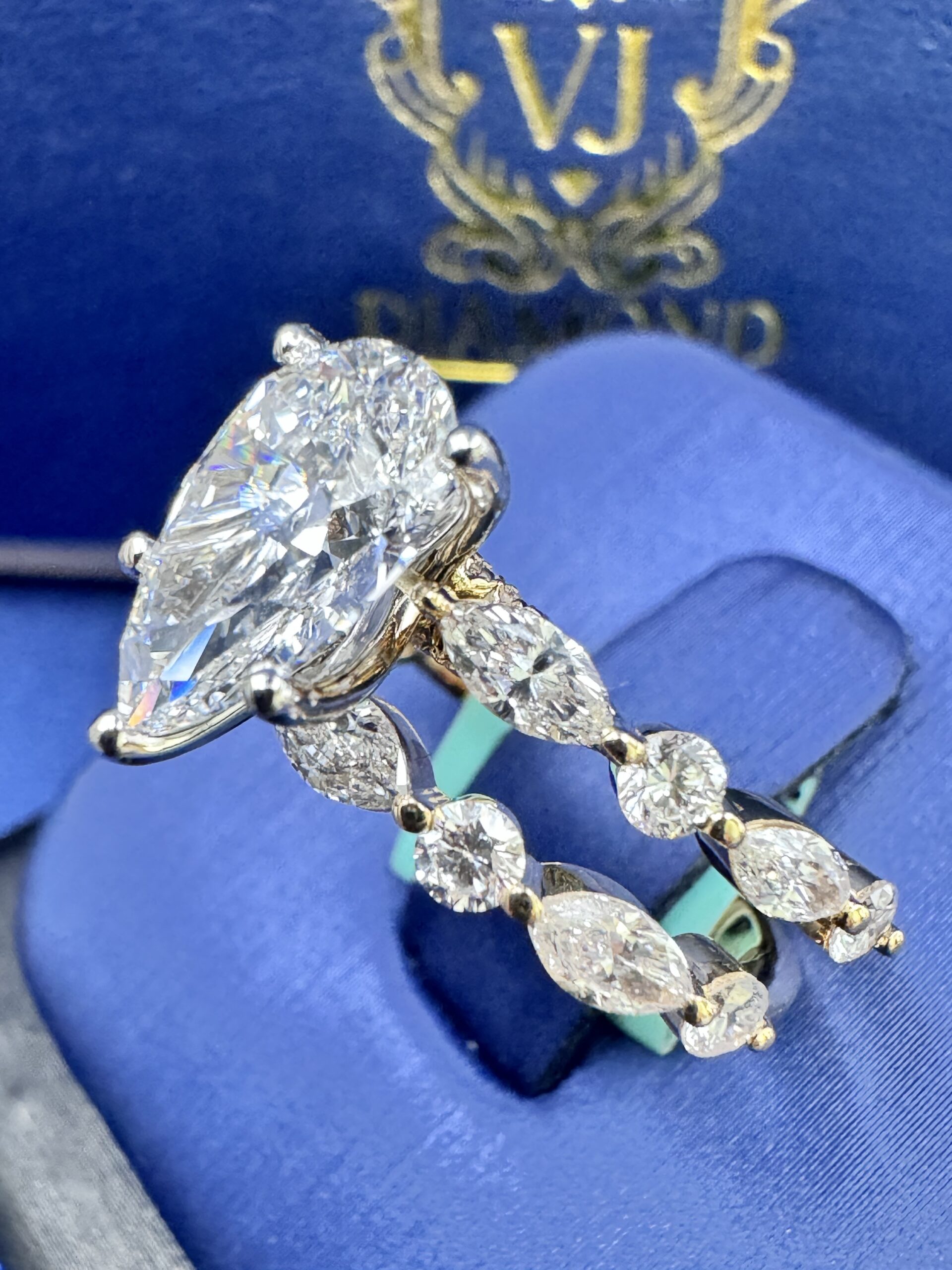 14KT Gold 3.66CT LabGrown PearCut Bridal Ring Custom Made Center Solitaire 2.06CT VVs Clarity F Color Size 7 Pear N RoundCut Round ProngSet Diamonds Wedding Band Certified F Color Sizing Available Approx Gold Weight 6.7 Gram