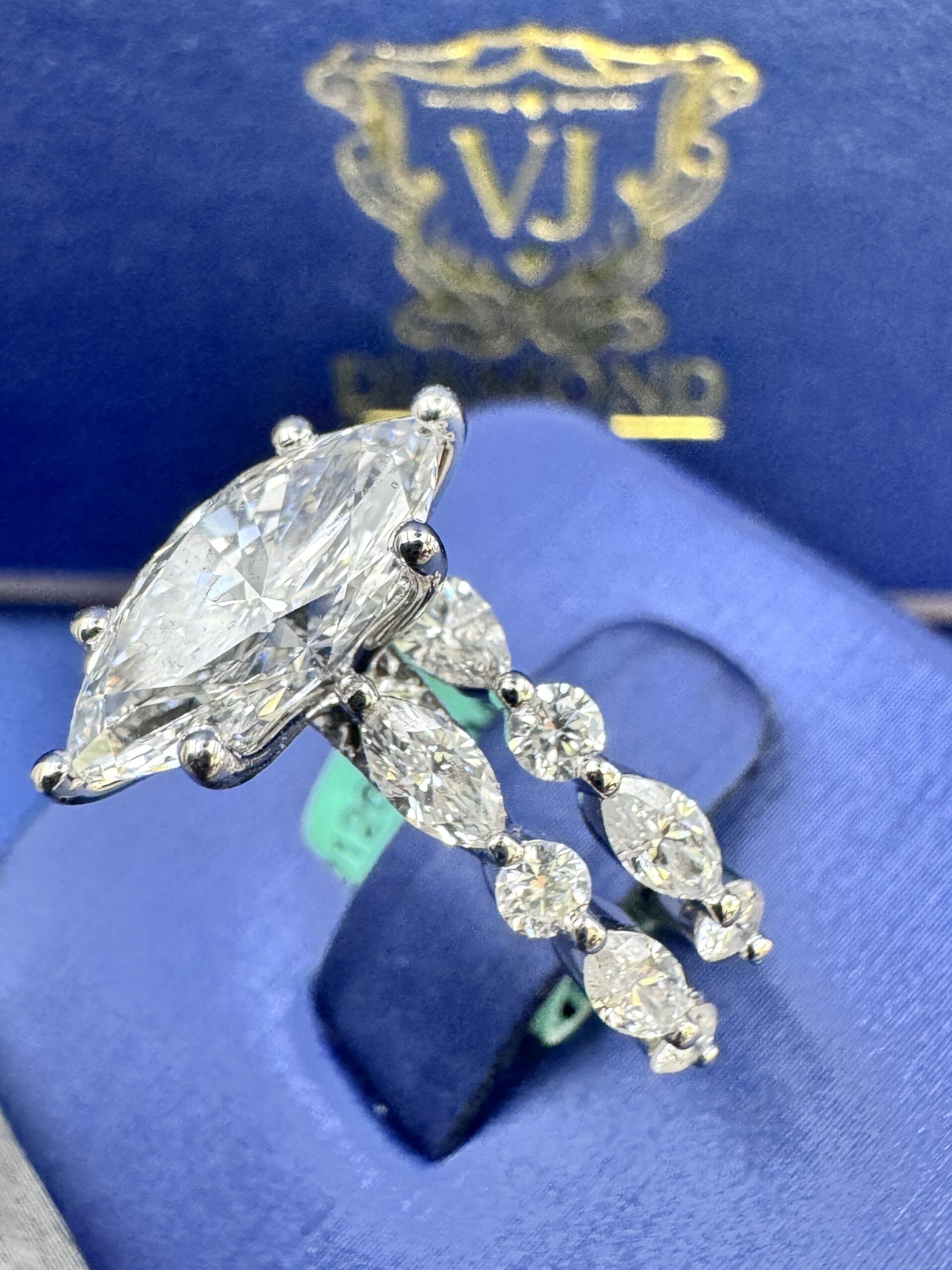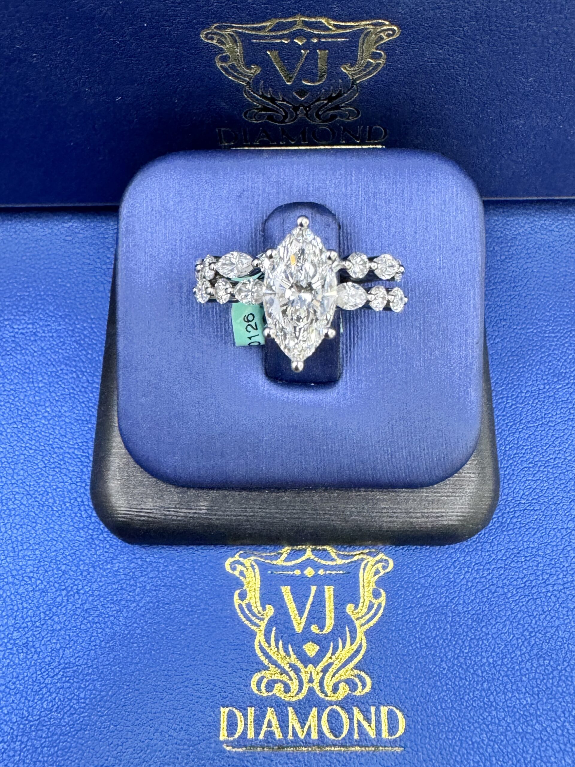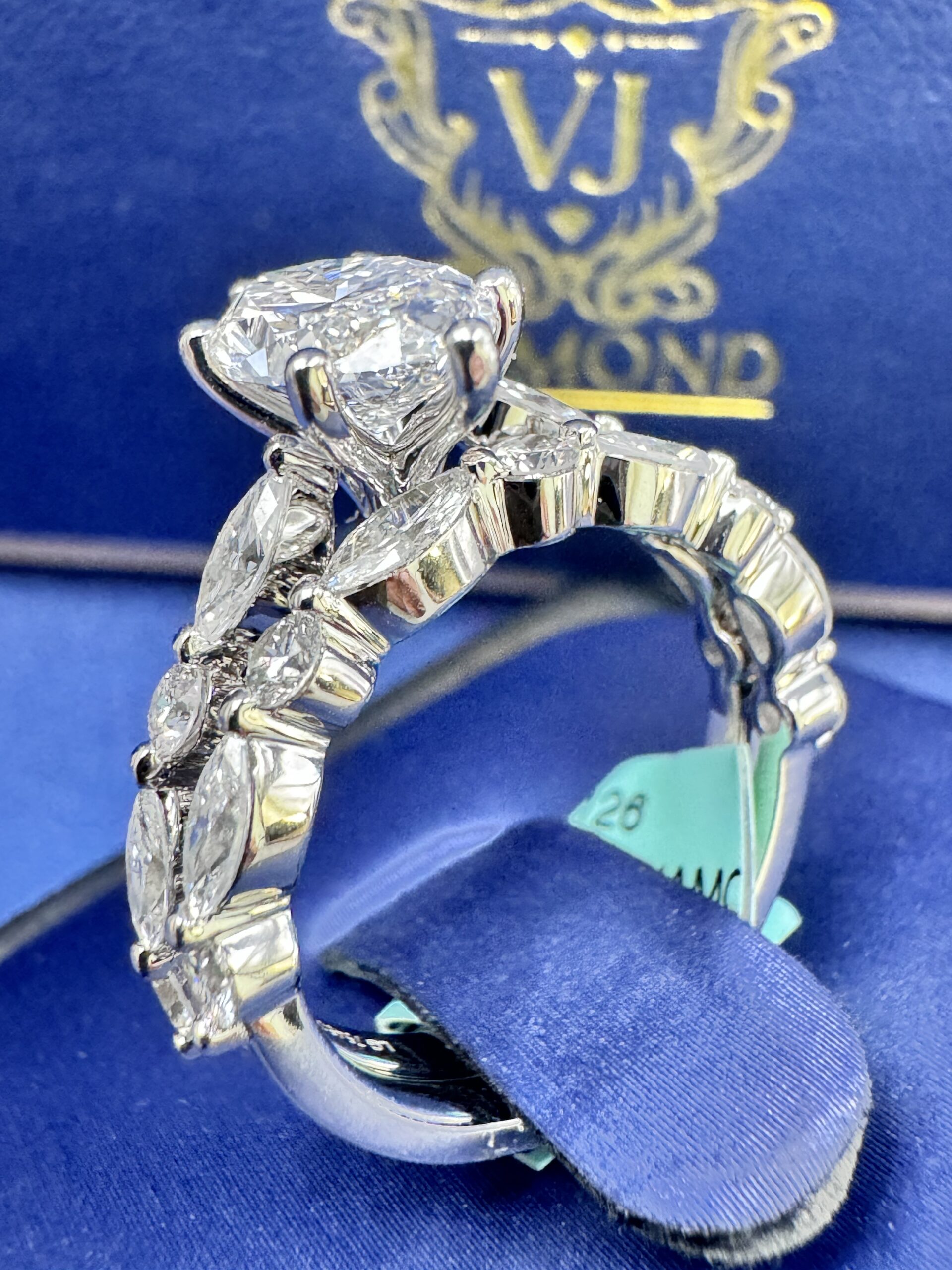 14KT WGold 3.65CT LabGrown Marquee Cut Bridal Ring Custom Made Center Solitaire 2.06CT VVs Clarity F Color Size 7 Marquees N RoundCut Round ProngSet Diamonds Wedding Band Certified F Color Sizing Available Approx Gold Weight 6.6 Gram