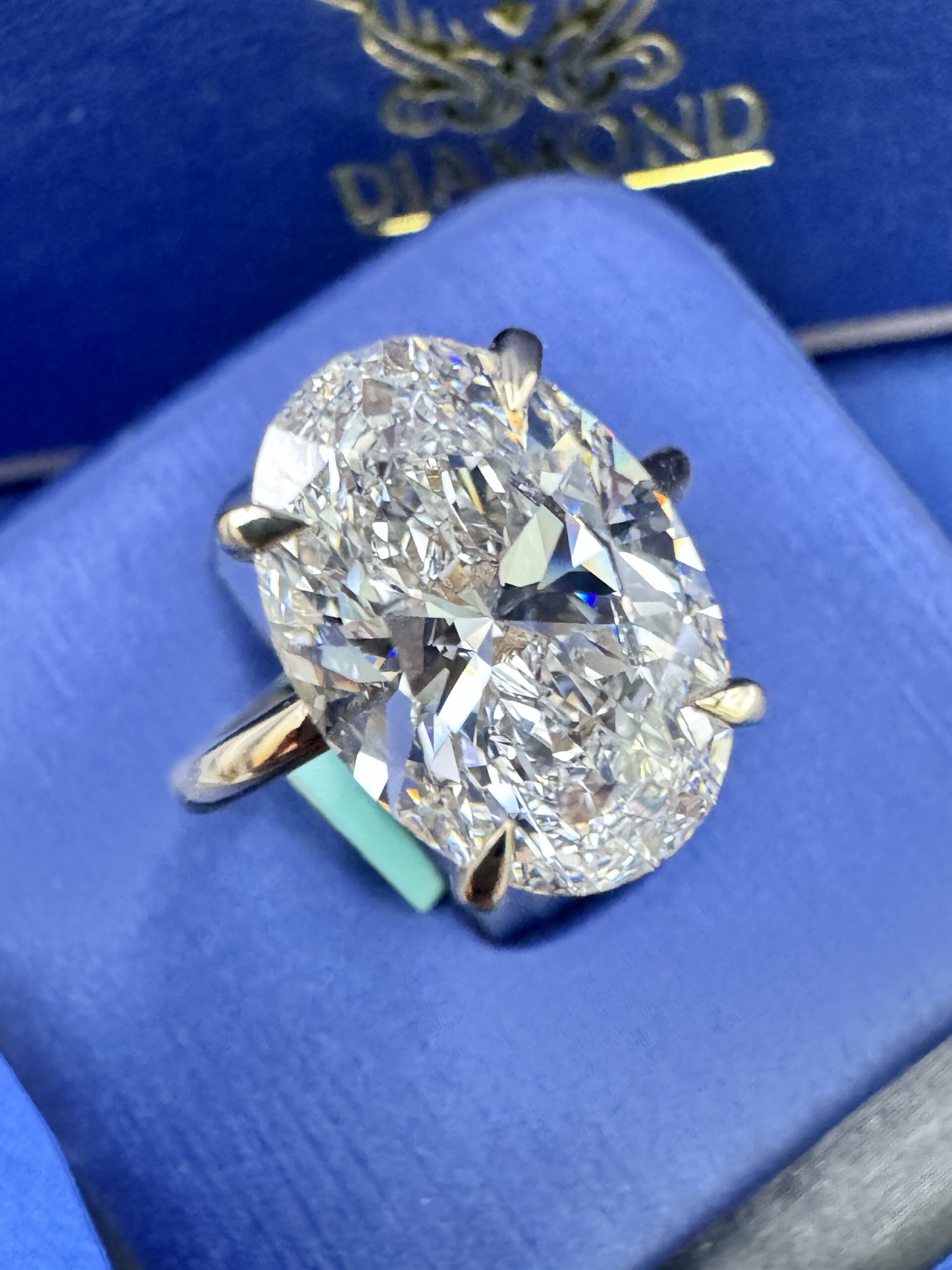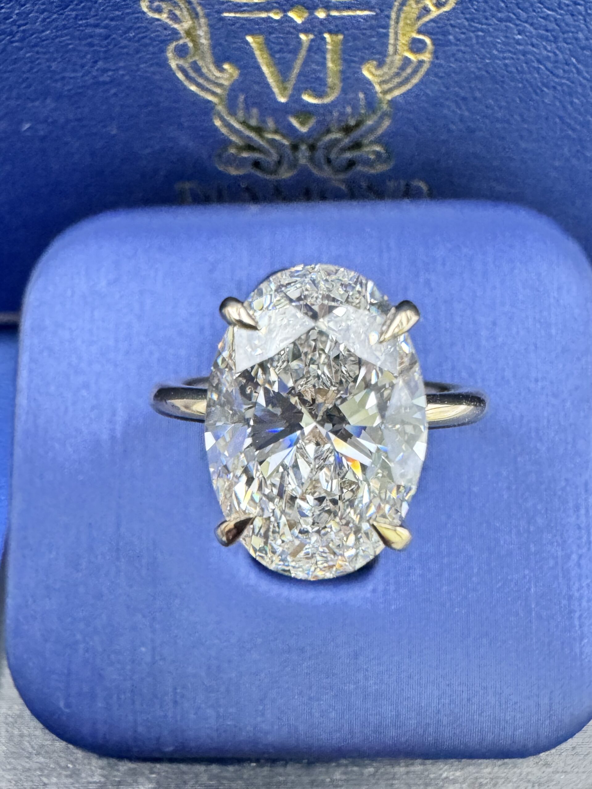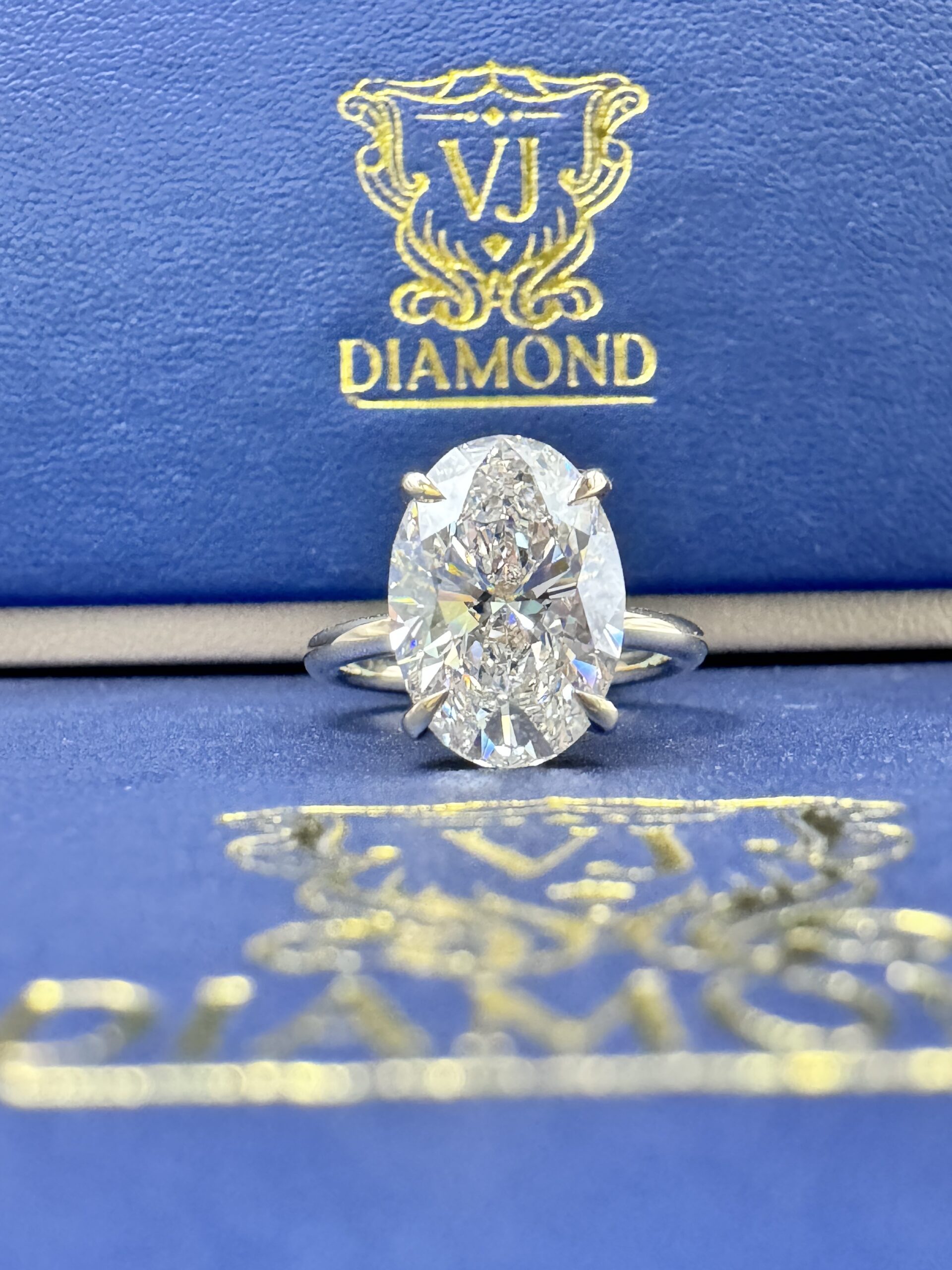 14KT Gold 5.17CT LabGrown OvalCut Ring Custom Made Center Solitaire 5.00 CT VVs Clarity F Color Size 7 Certified Sizing Available Approx Gold Weight 4.6 Gram