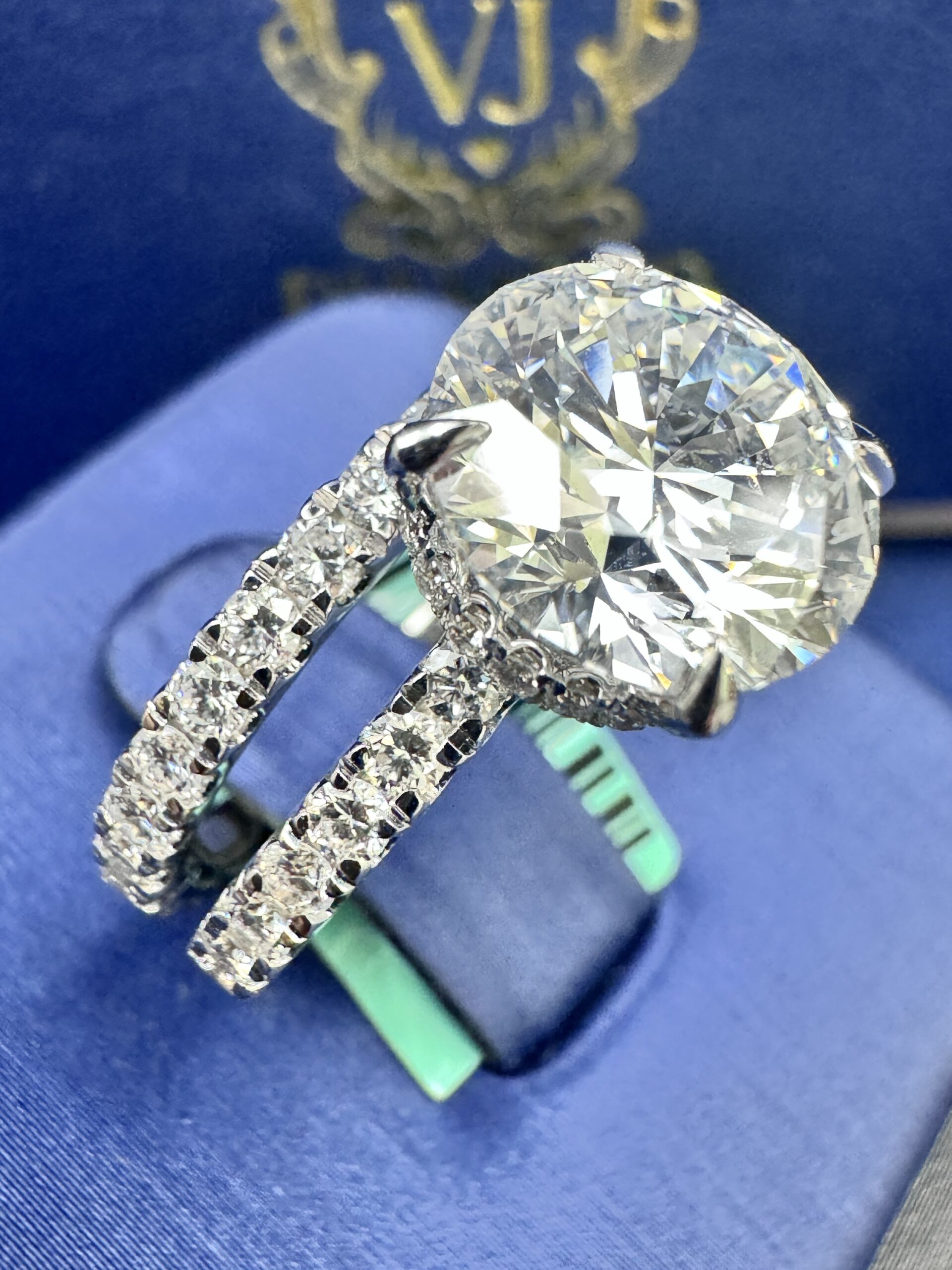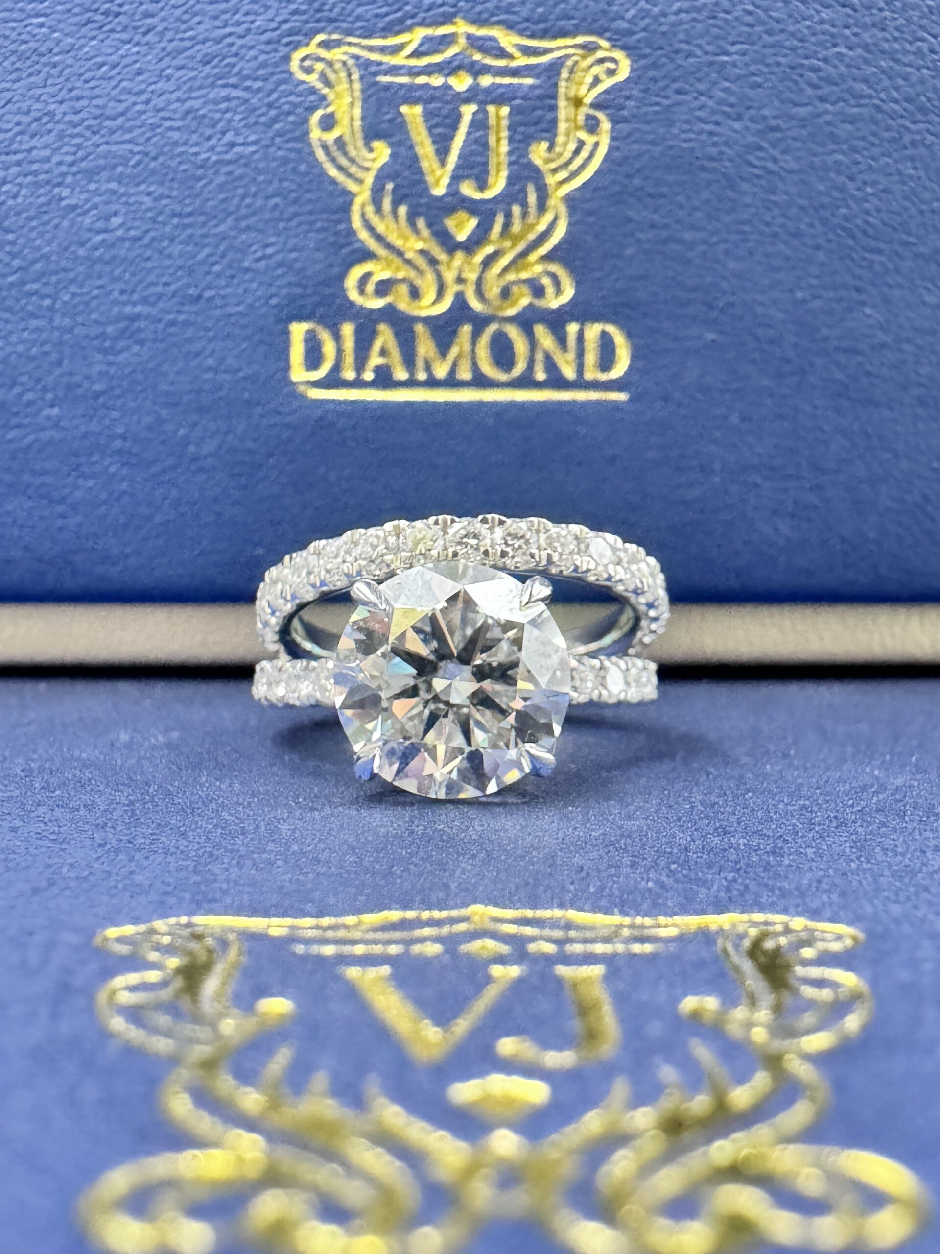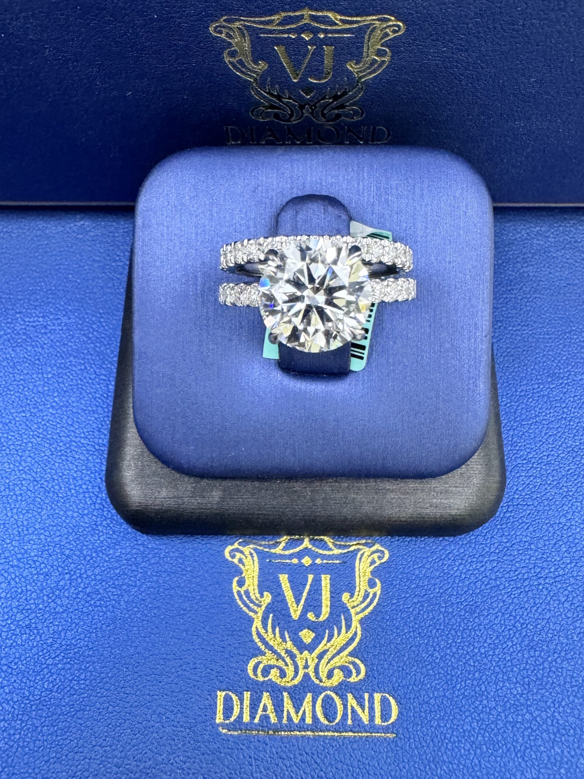 14KT WGold 5.58CT LabGrown RoundCut Bridal Ring Custom Made Center Solitaire 4.03CT VVs Clarity F Color Size 7 RoundCut Round ProngSet Diamonds Wedding Band Certified F Color Sizing Available Approx Gold Weight 6.6 Gram