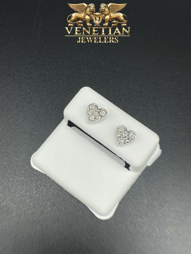 This Brand New Pair of half a carat diamonds screwback earrings in 14K White gold. A beautiful pair of earings. Nice brilliant white round cut diamonds set in a pave settings. The diamonds continue on the sides of the earrings for a 3 d effect.