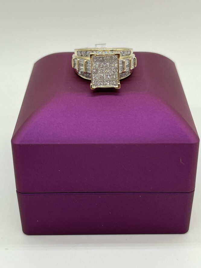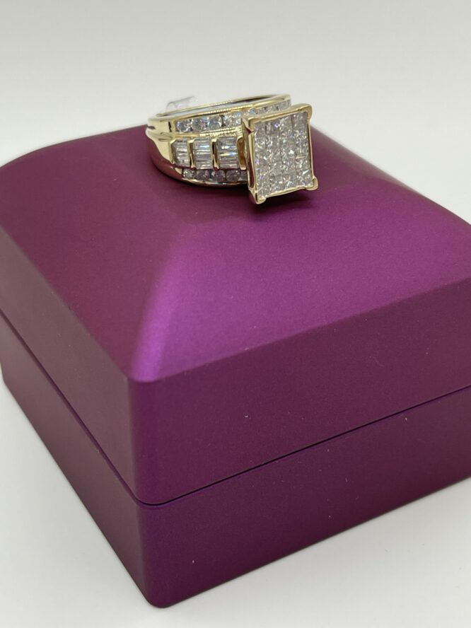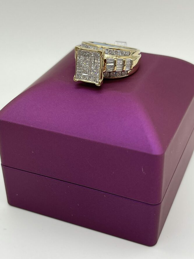 14KT Y/G 2.00CT Diamond Cinderella Ring Invisible Set With Round And Baguette Diamonds Size 7