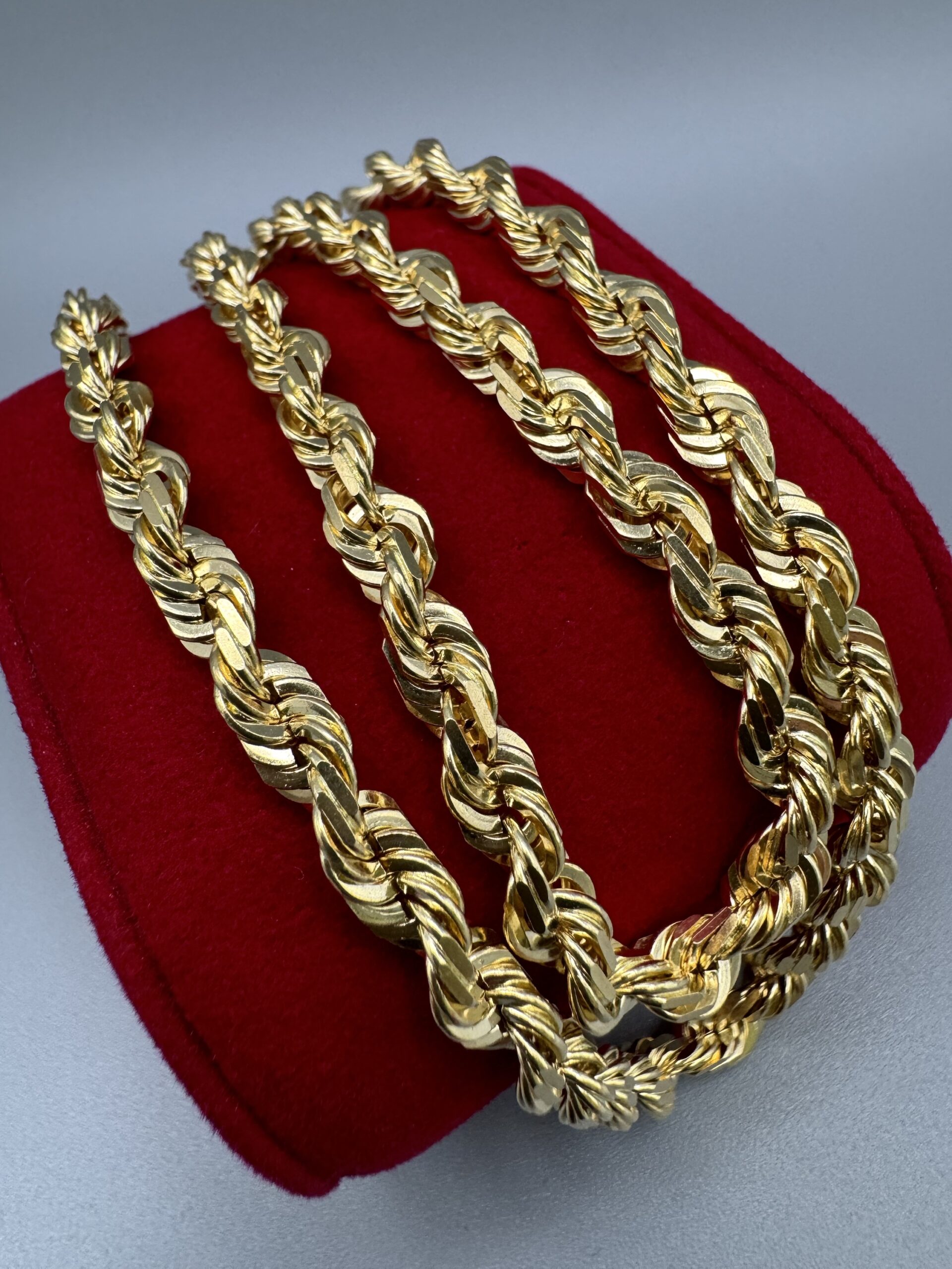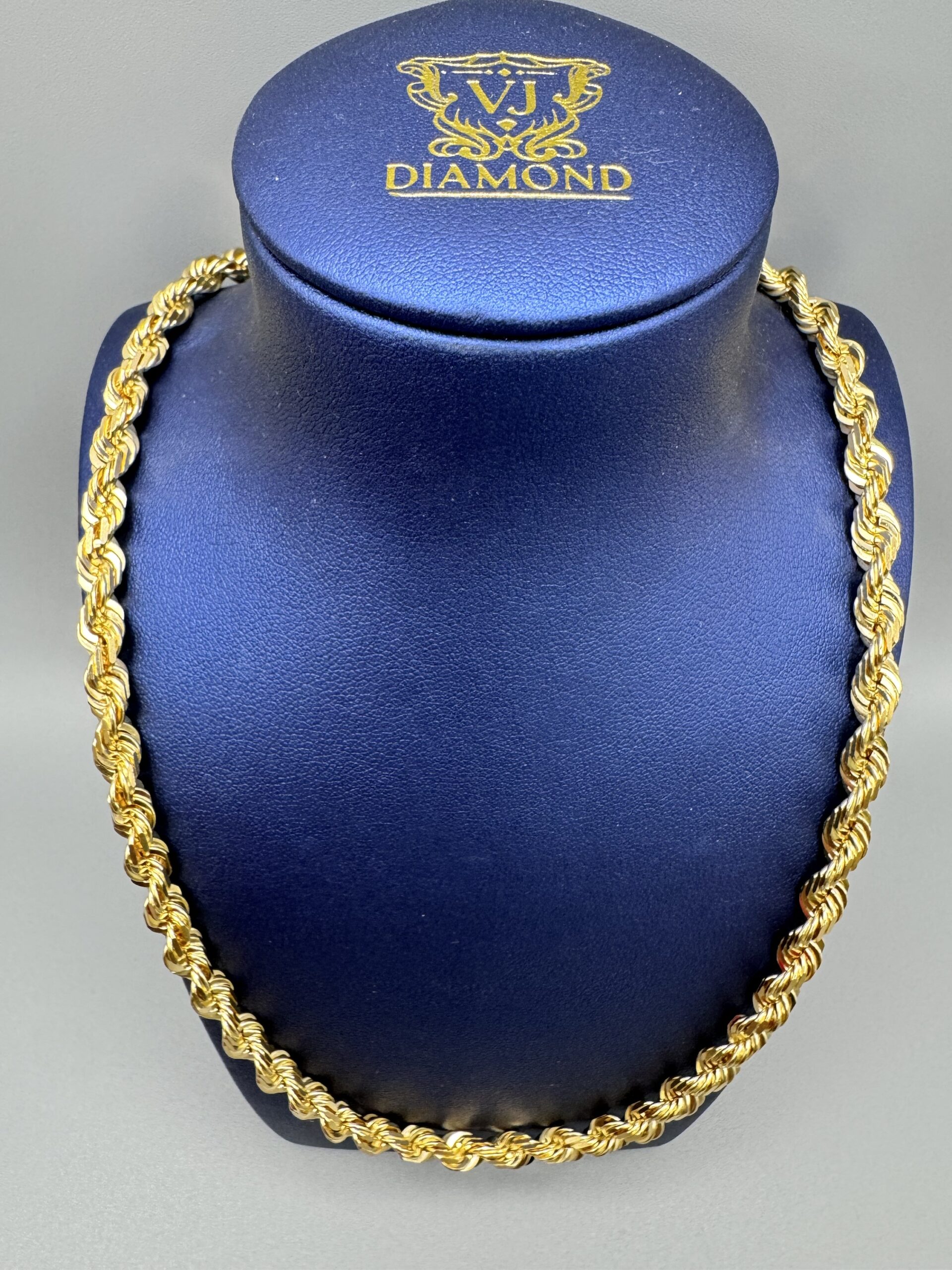 18KT Gold 6MM Solid 22” DiaCut Rope Necklace Approx Gold Weight 67.9 Gram