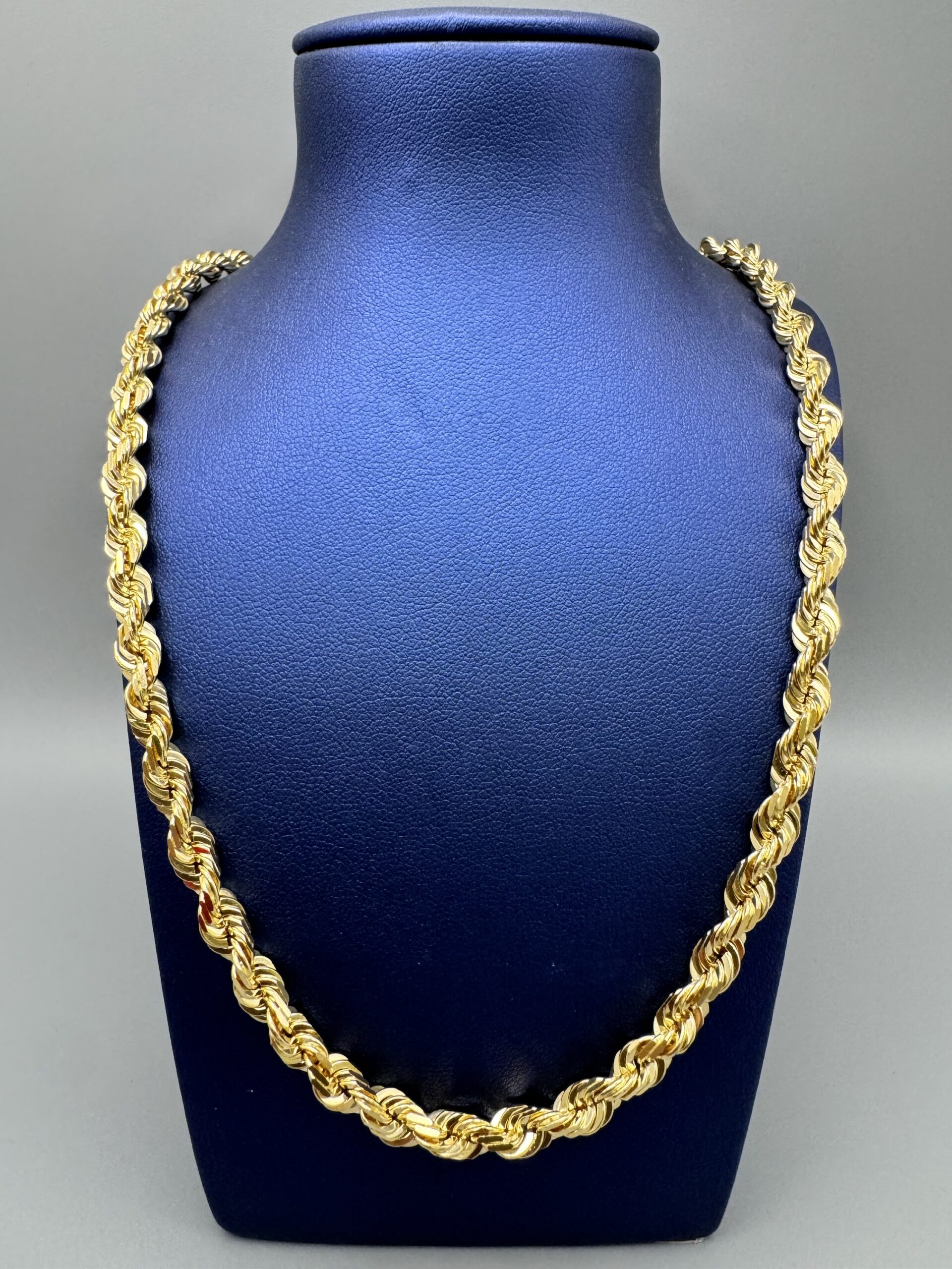 Adorn yourself with elegance! This 18KT gold 6MM solid 22” DiaCut rope necklace weighs approximately 67.9 grams. It’s a timeless piece that effortlessly elevates any outfit with its shimmering beauty.