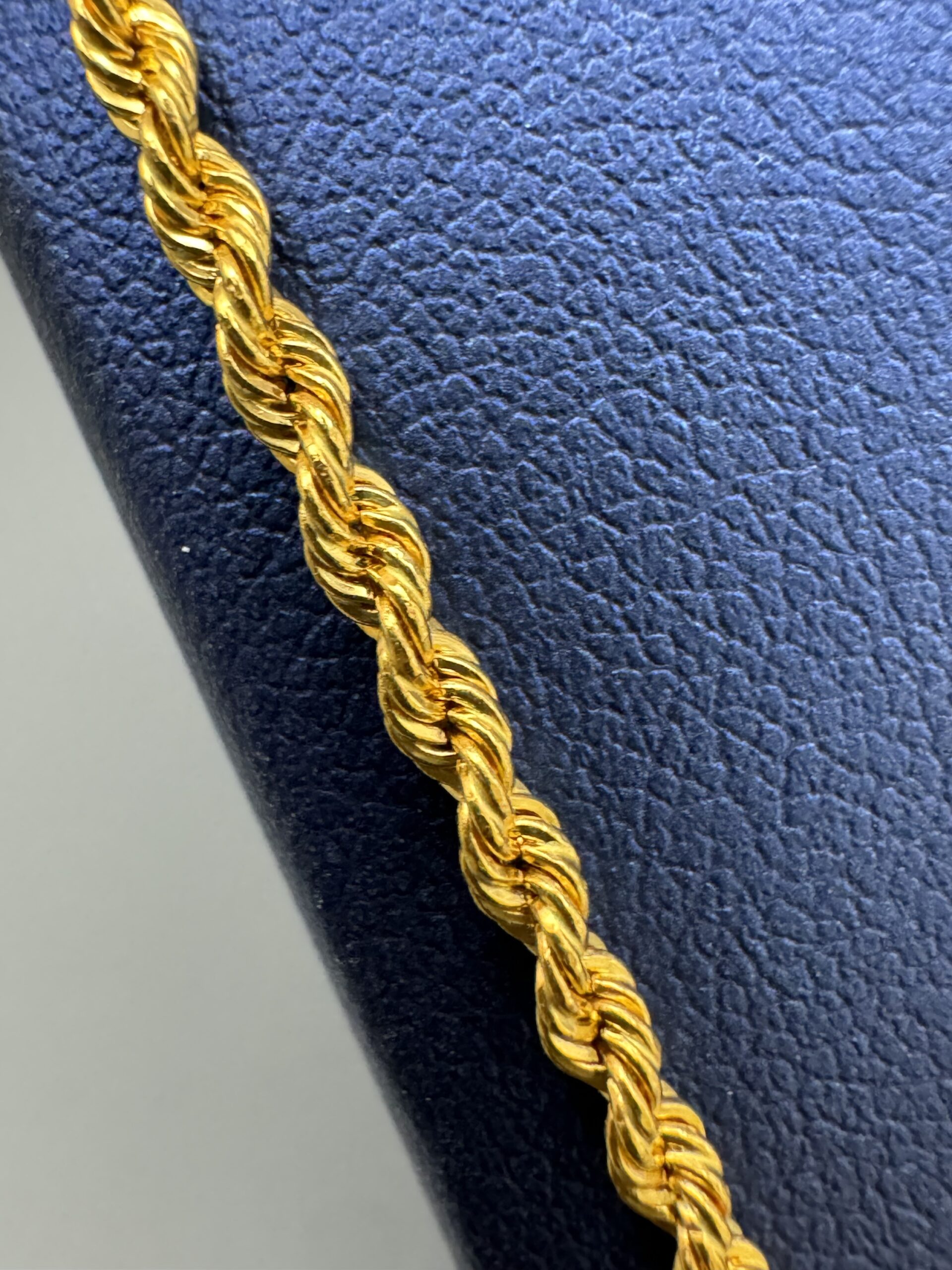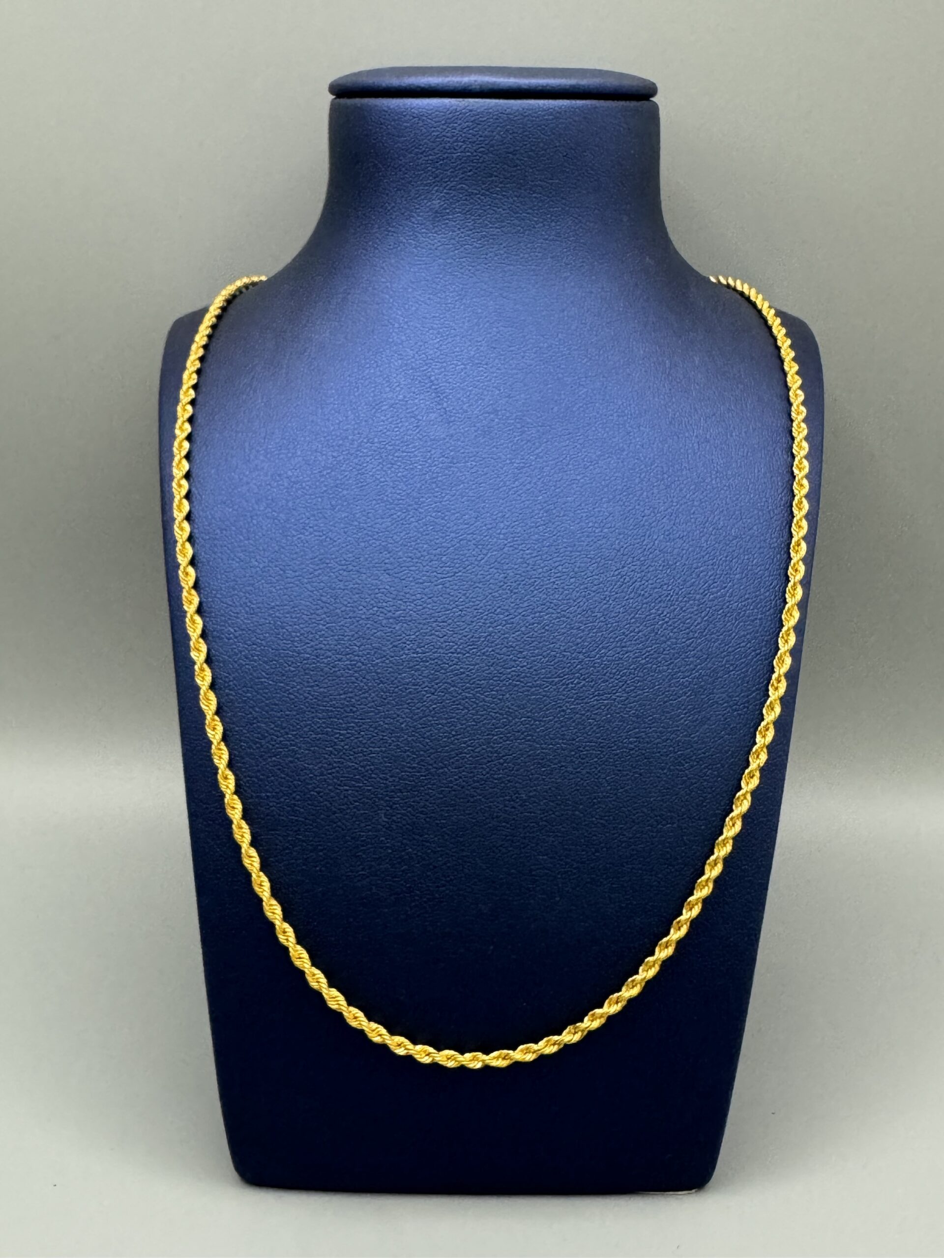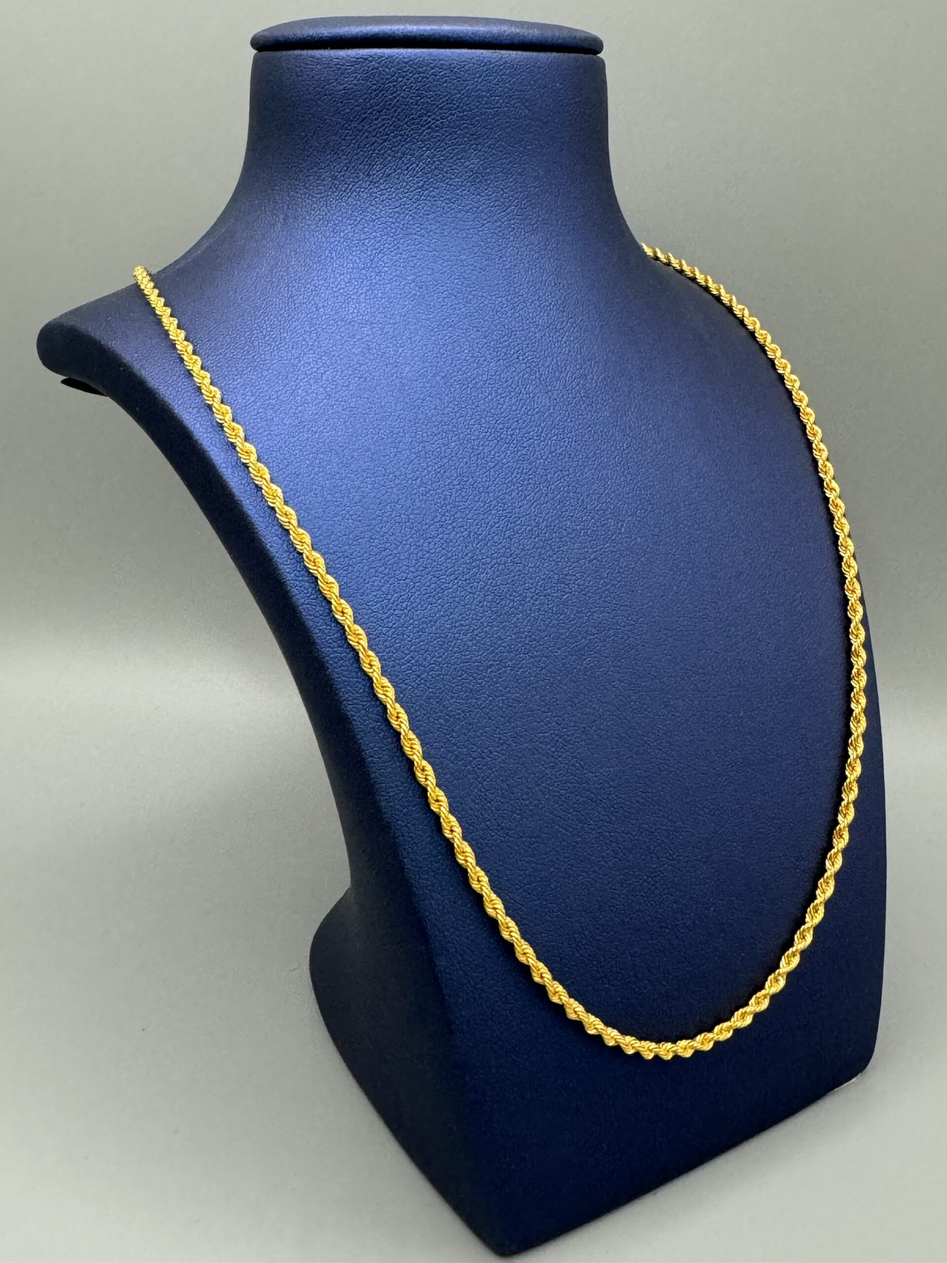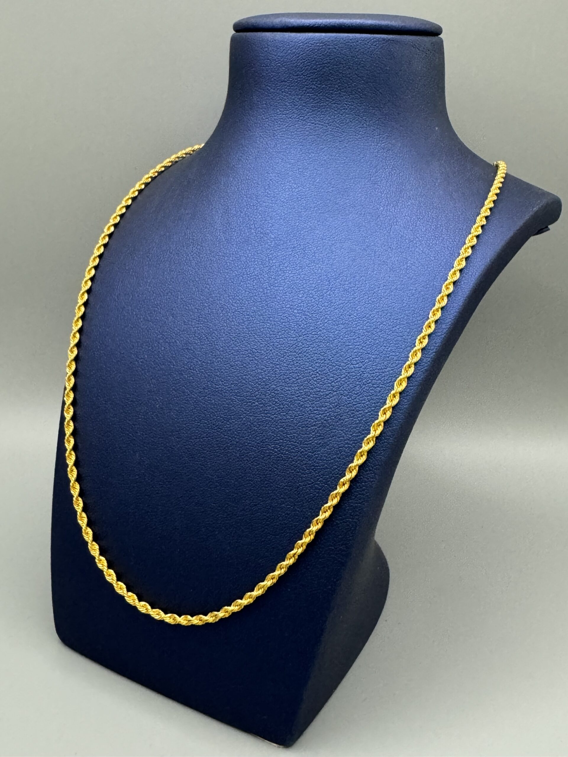 22KT Gold 2.5MM Solid Rope Necklace 18” DiamondCut Pure Gold Approx Gold Weight 4.5 Gram Pure Investment Piece