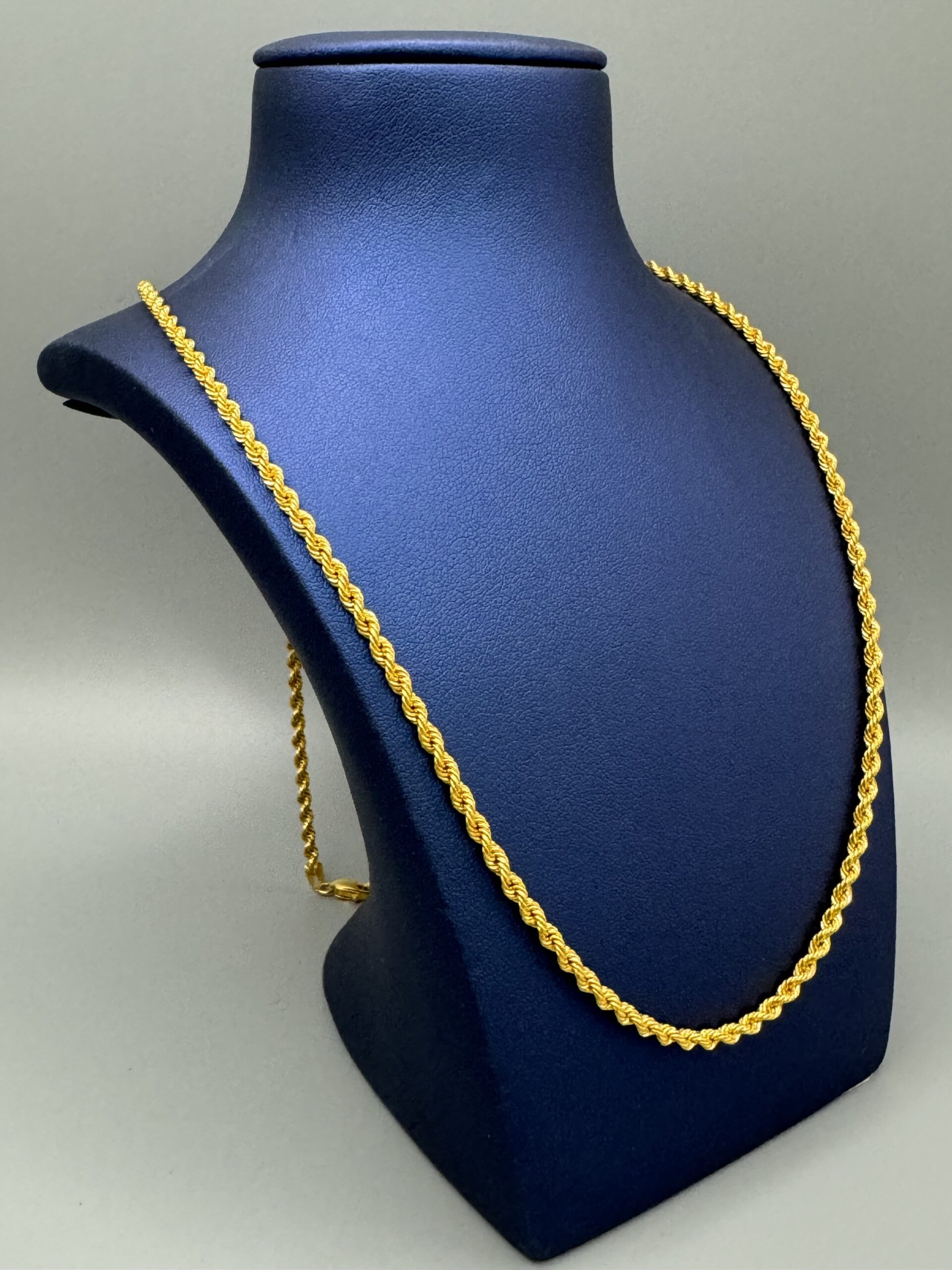 22KT Gold 3MM Solid Rope Necklace 22” DiamondCut Pure Gold Approx Gold Weight 8.0 Gram Pure Investment Piece
