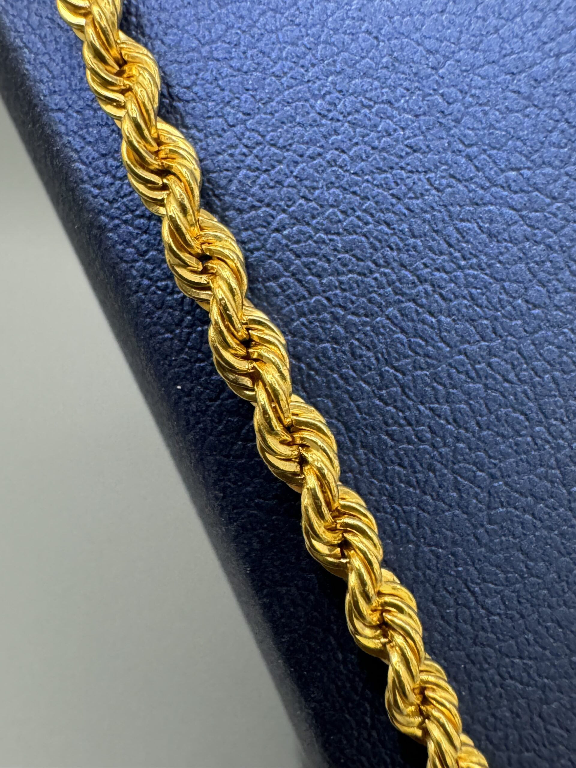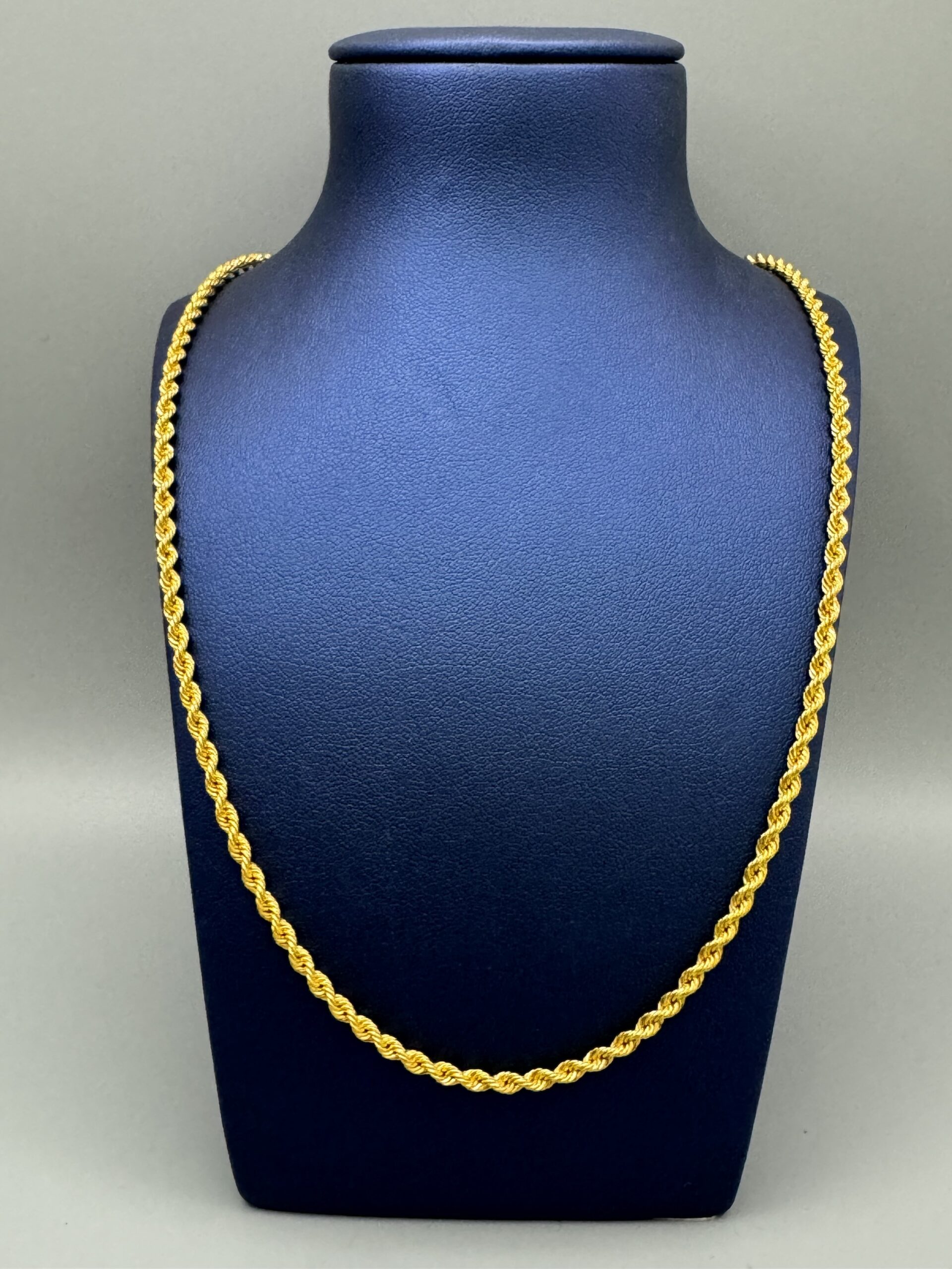 22KT Gold 3MM Solid Rope Necklace 26” DiamondCut Pure Gold Approx Gold Weight 9.3 Gram Pure Investment Piece