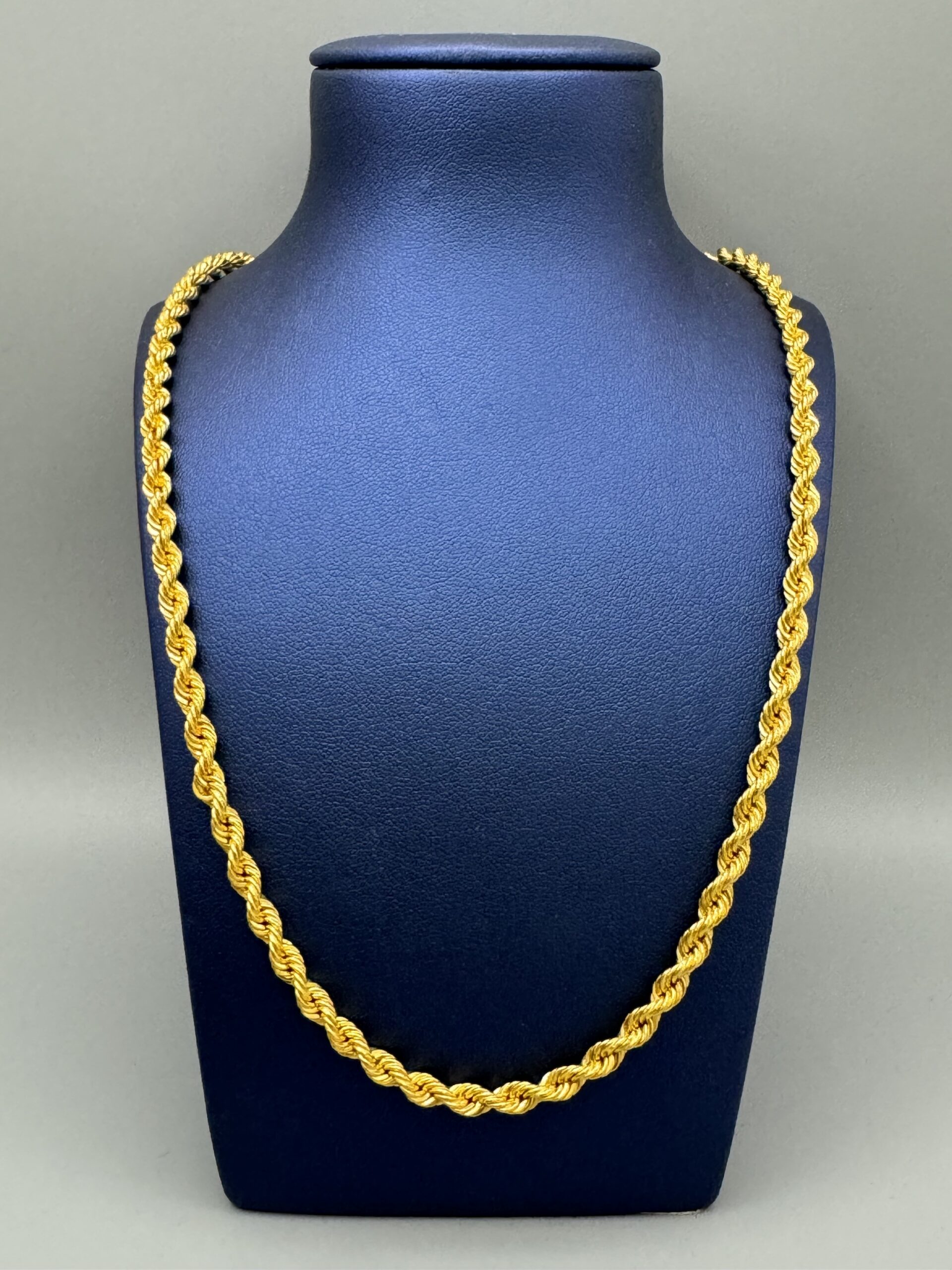 22KT Gold 3.5MM Solid Rope Necklace 22”