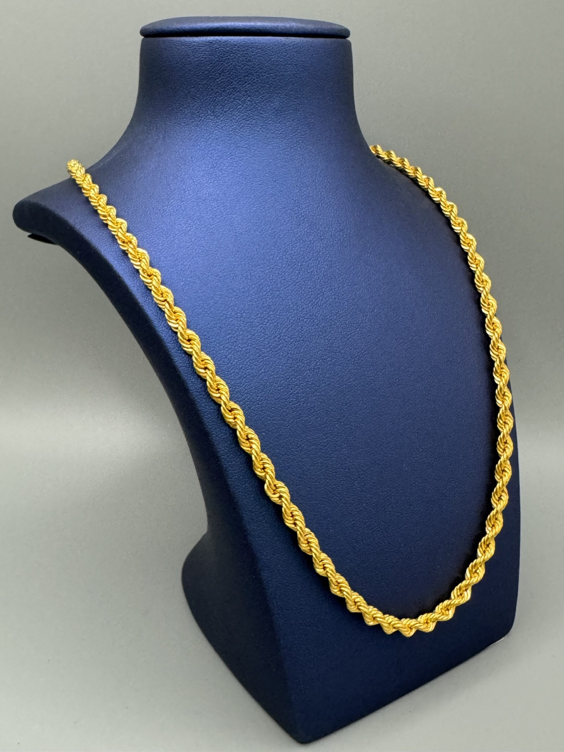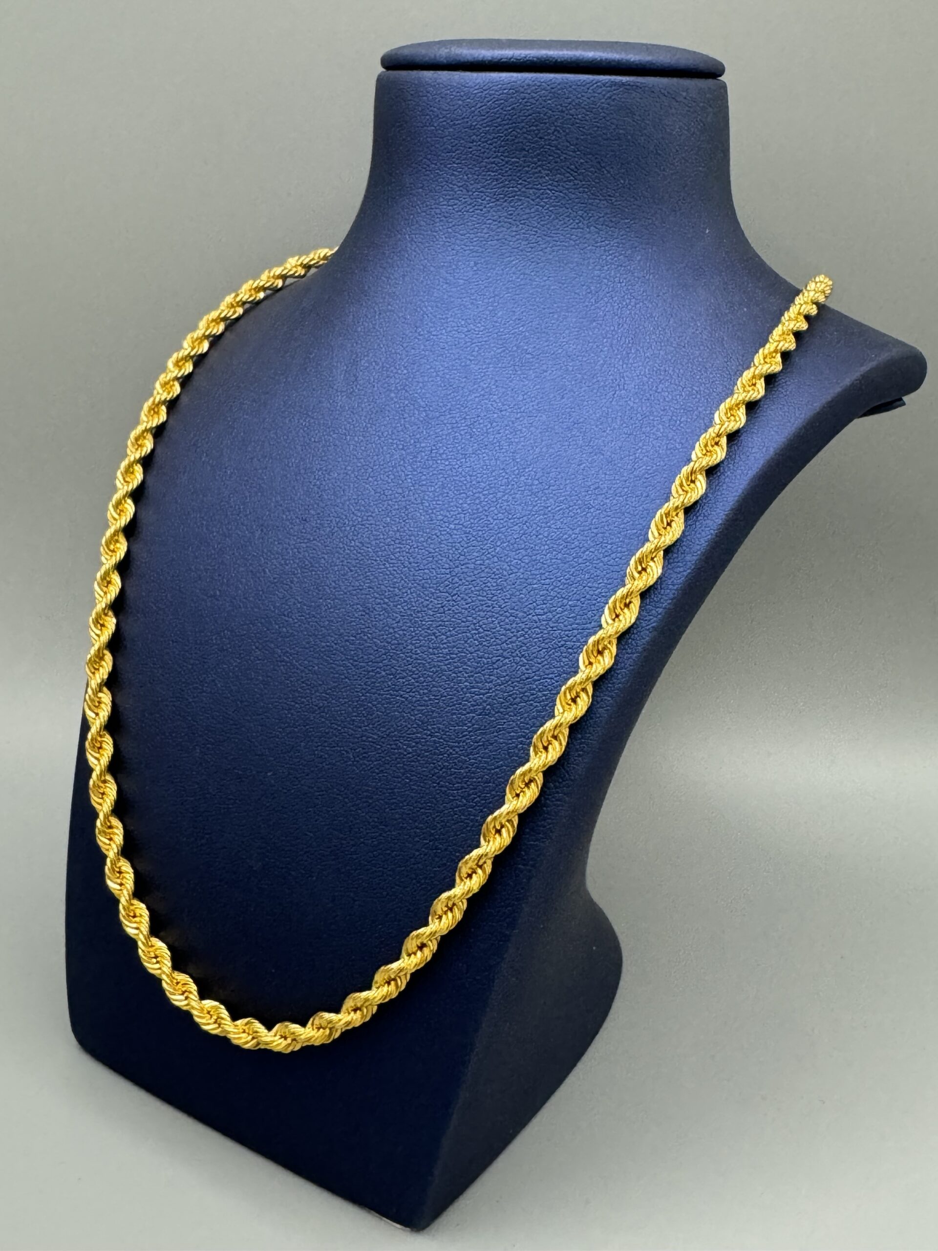 22KT Gold 4MM Solid Rope Necklace 22” DiamondCut Pure Gold Approx Gold Weight 16.2 Gram Pure Investment Piece