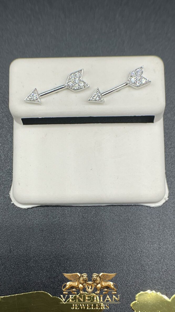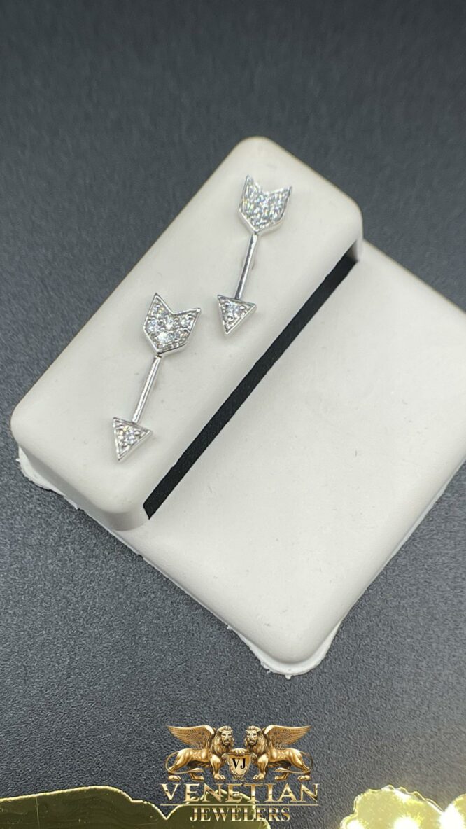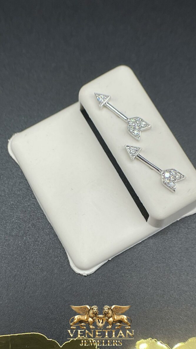 14Kt White Gold Arrow Shape Screwback Custom Earings with 0.15 CTTW Diamonds