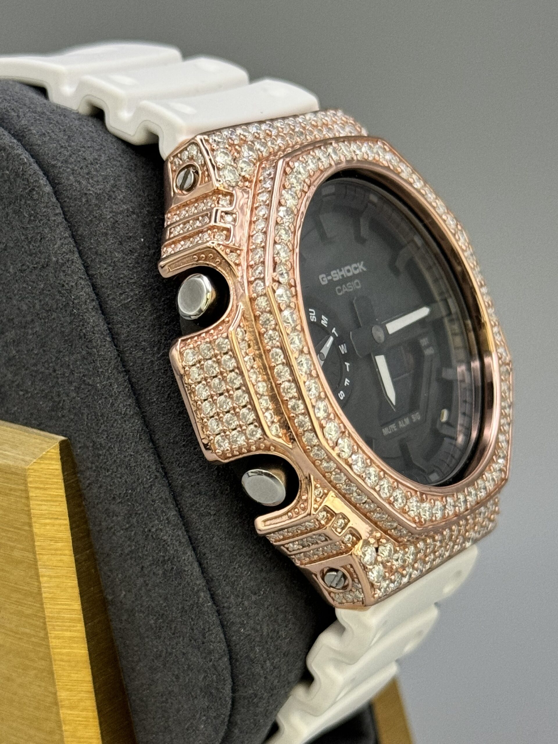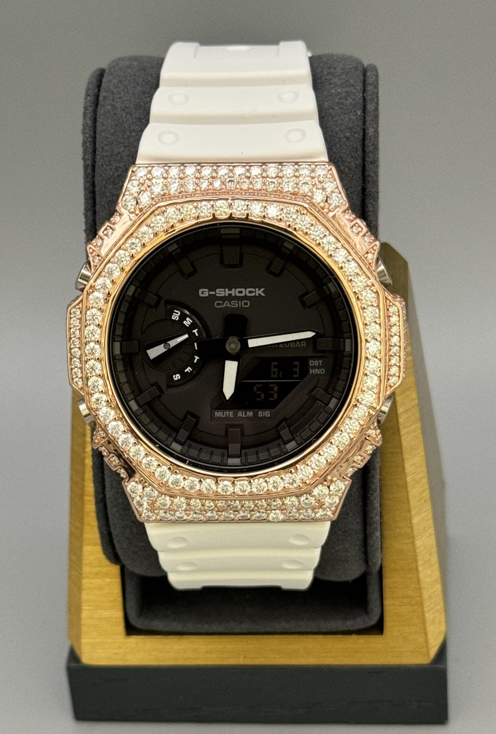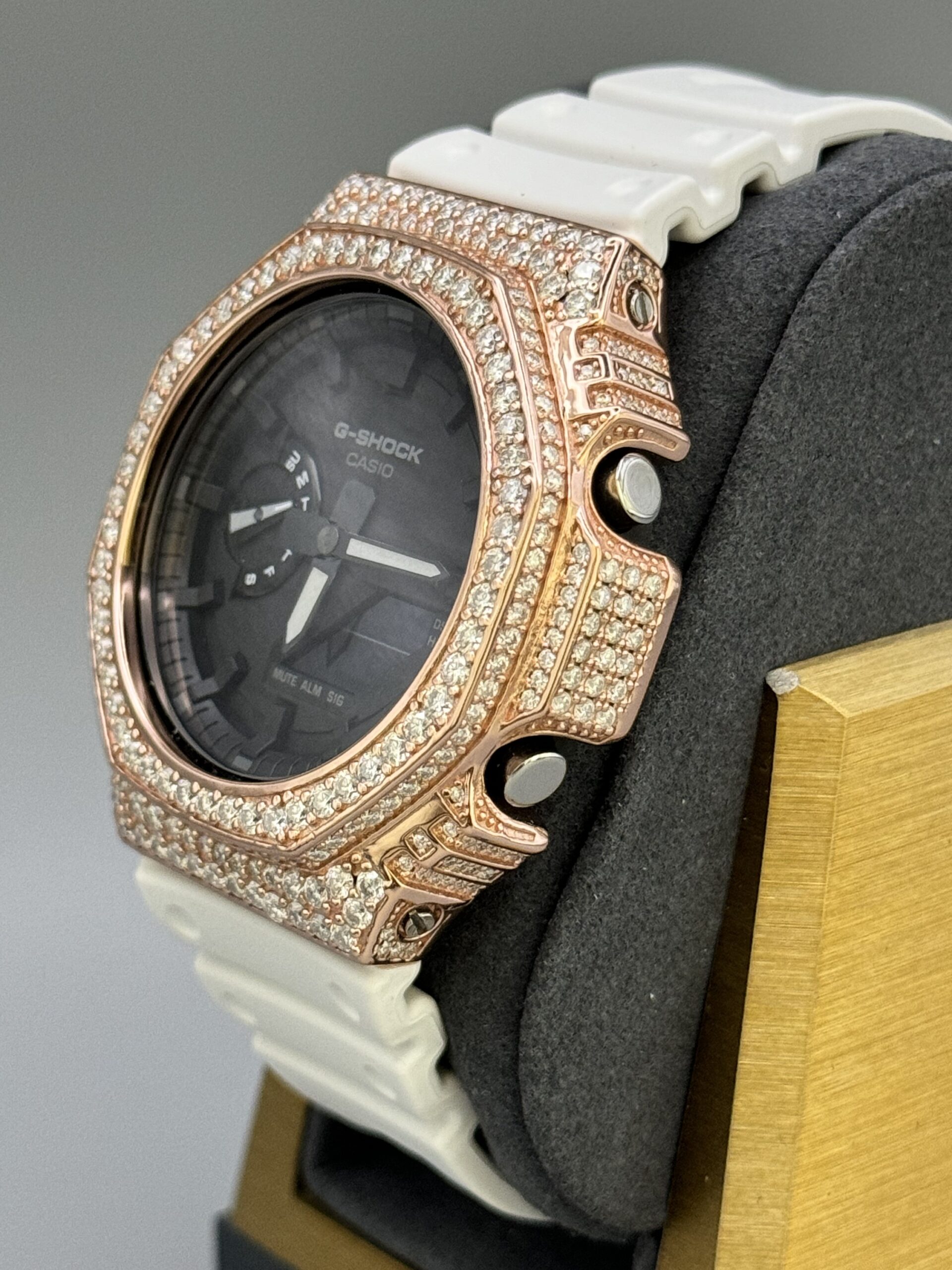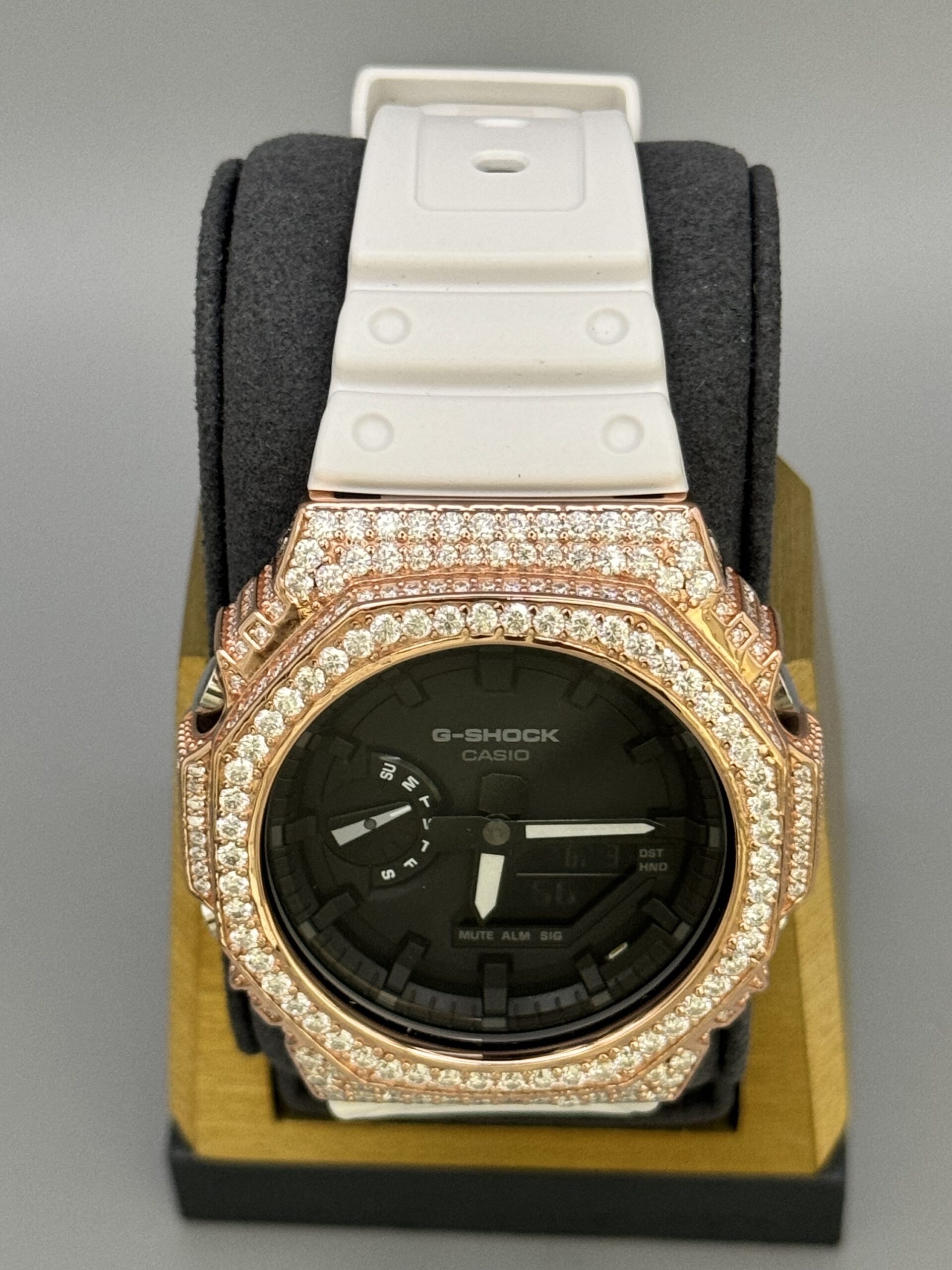 Custom 8.50CT Moissanite Watch Rose Tone GA2100WD-1A All Steel With VVS Clarity 41MM