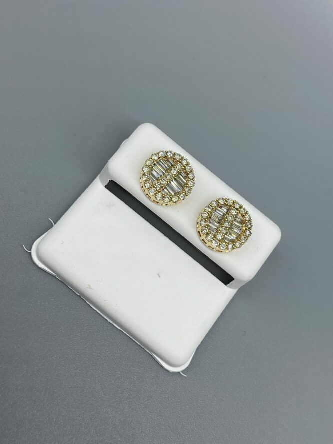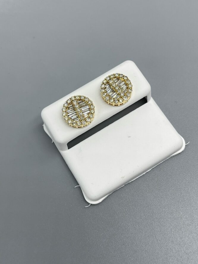 10KT Yellow Gold Diamond Earrings 1.40CT Baguette Stones