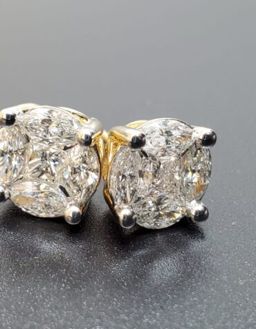 14 KT Yellow Gold with 3.00 CTTW Diamond Pie Cut Earings