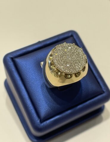 Keep your style sharp with this rich 10Kt yellow gold ring. It’s masculine and rugged! Timeless diamond fashion designer ring crafted in solid 10Kt Yellow Gold. All micro pave set diamonds in the center. Ideal as a fashion or pinky ring.