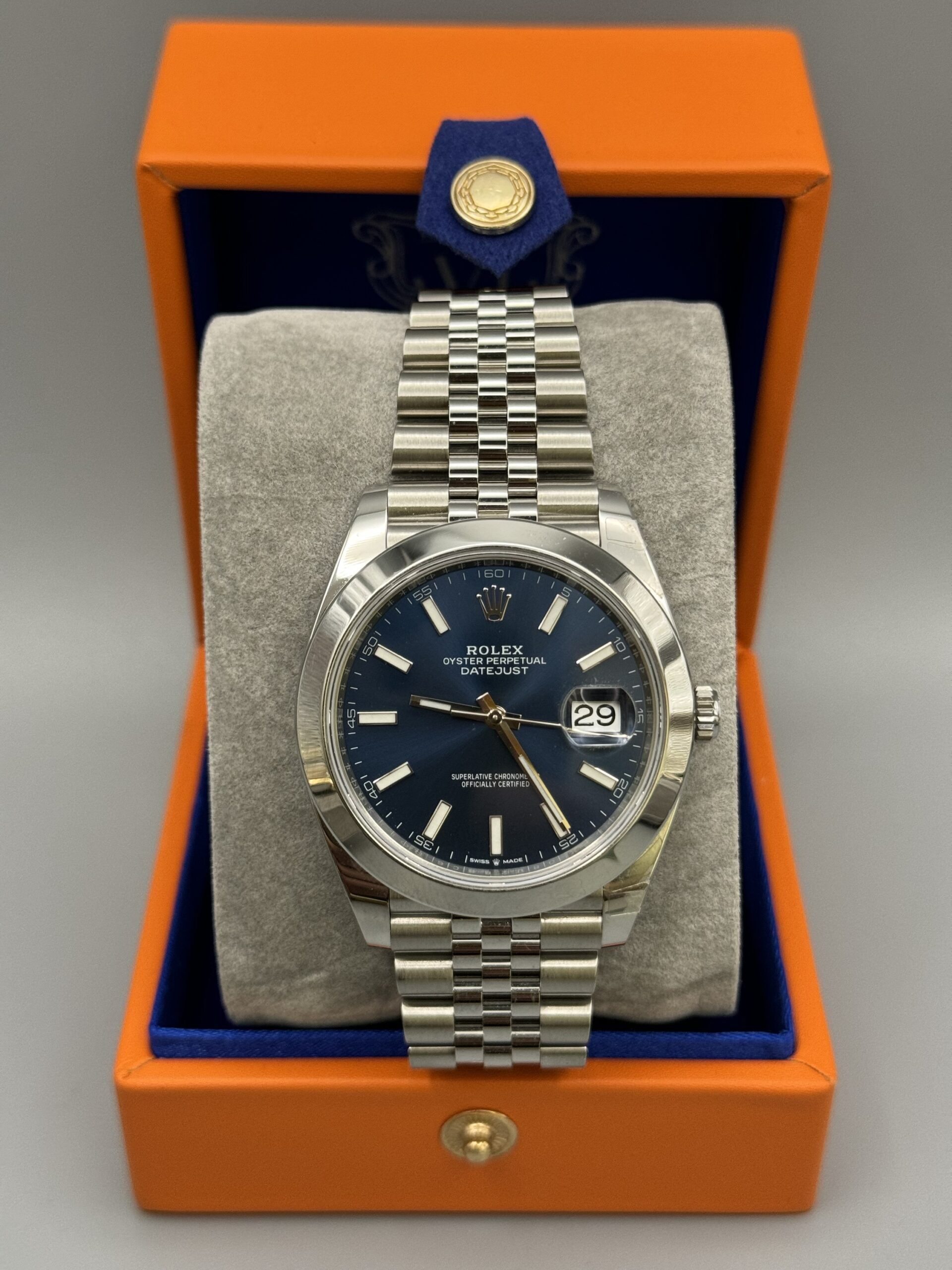 PreOwned Rolex DateJust 2 Jubilee Band Blue Dial Everything Factory Stainless Steel 41MM Reference No 126300 Year 2023 Comes With Box Card