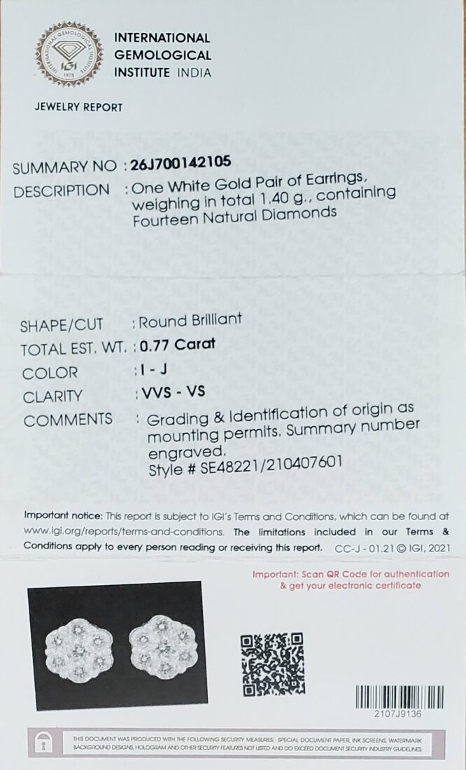 14kt 0.77ct VS Diamond Flower setting W/Gold Earring Screw back