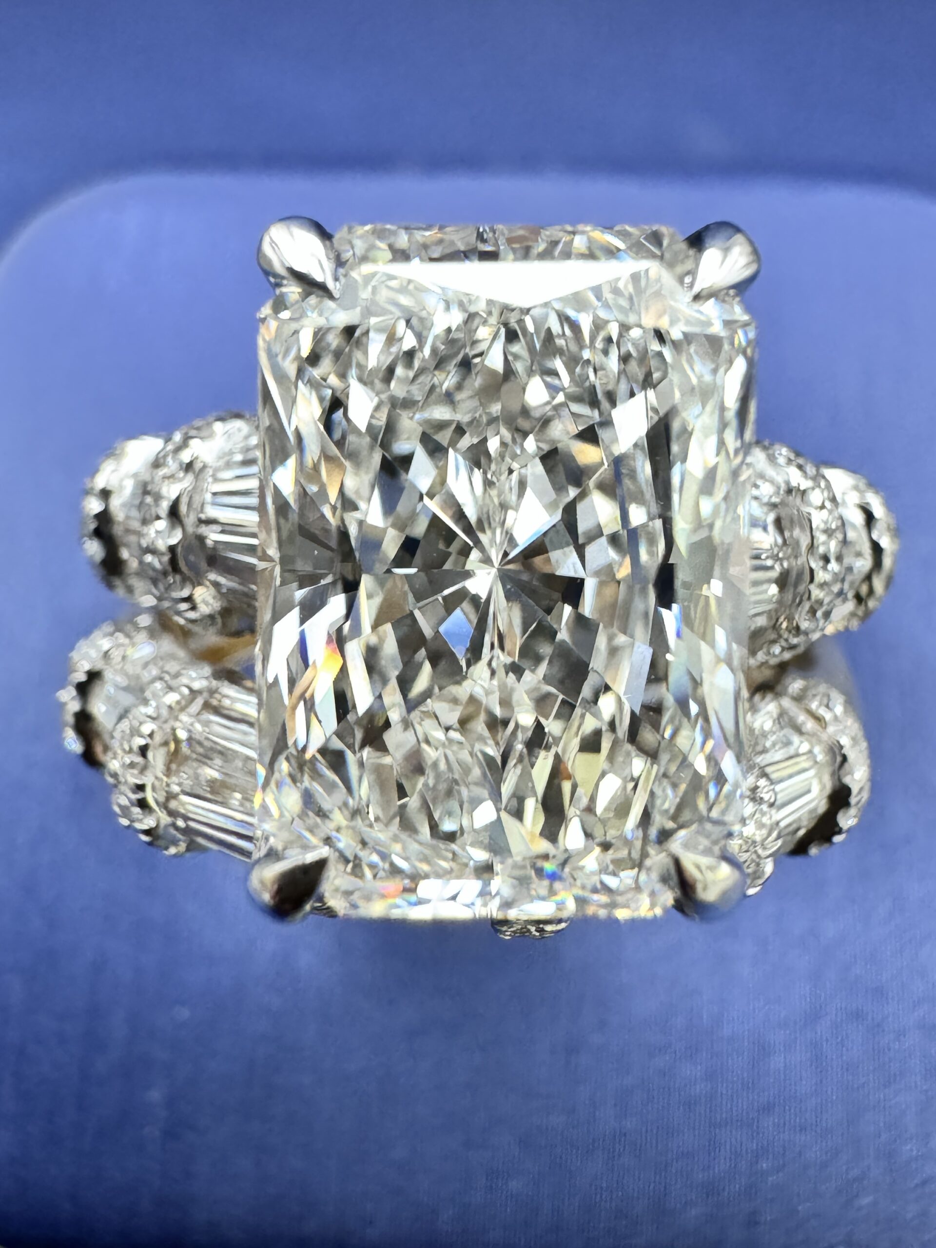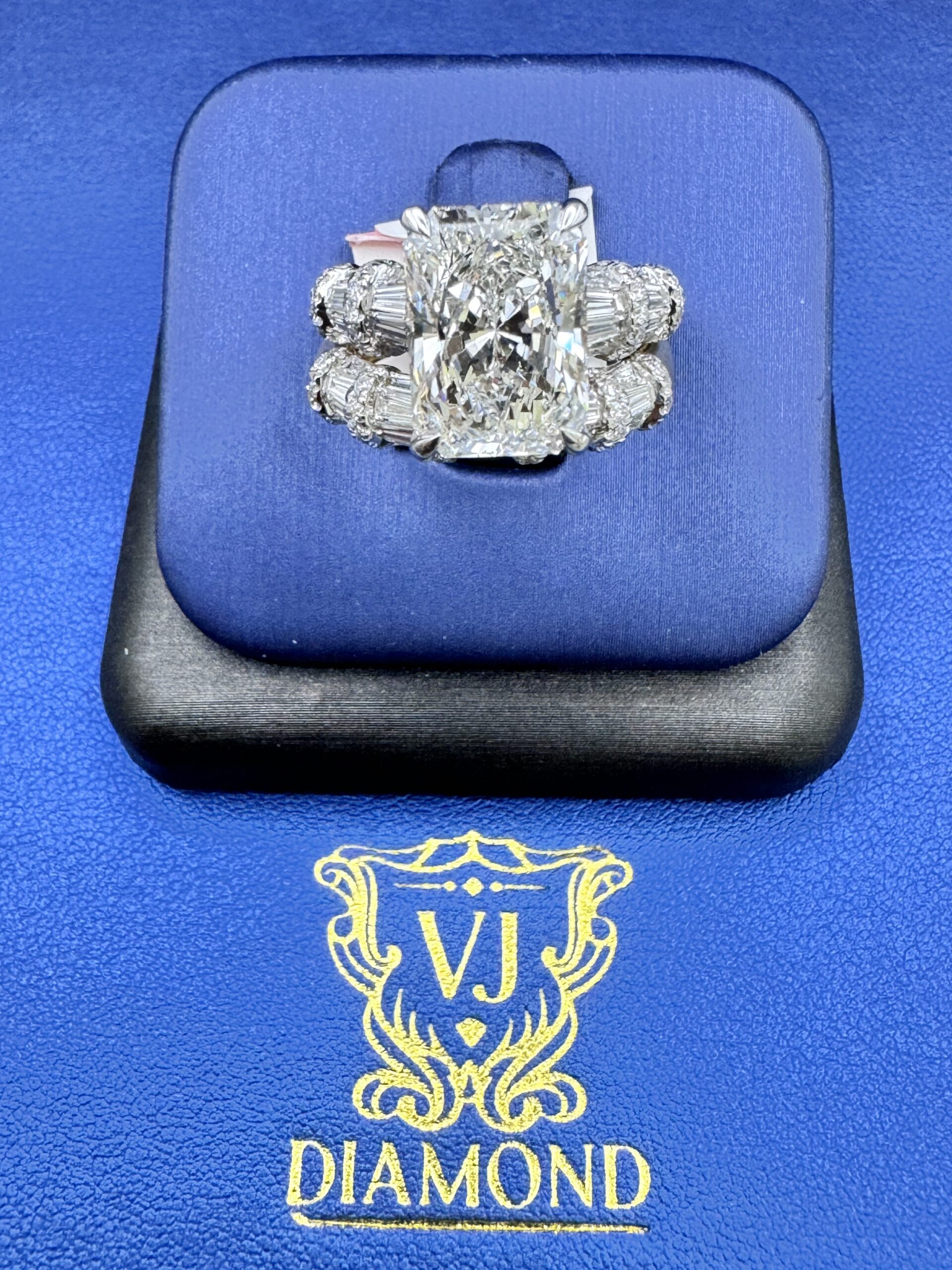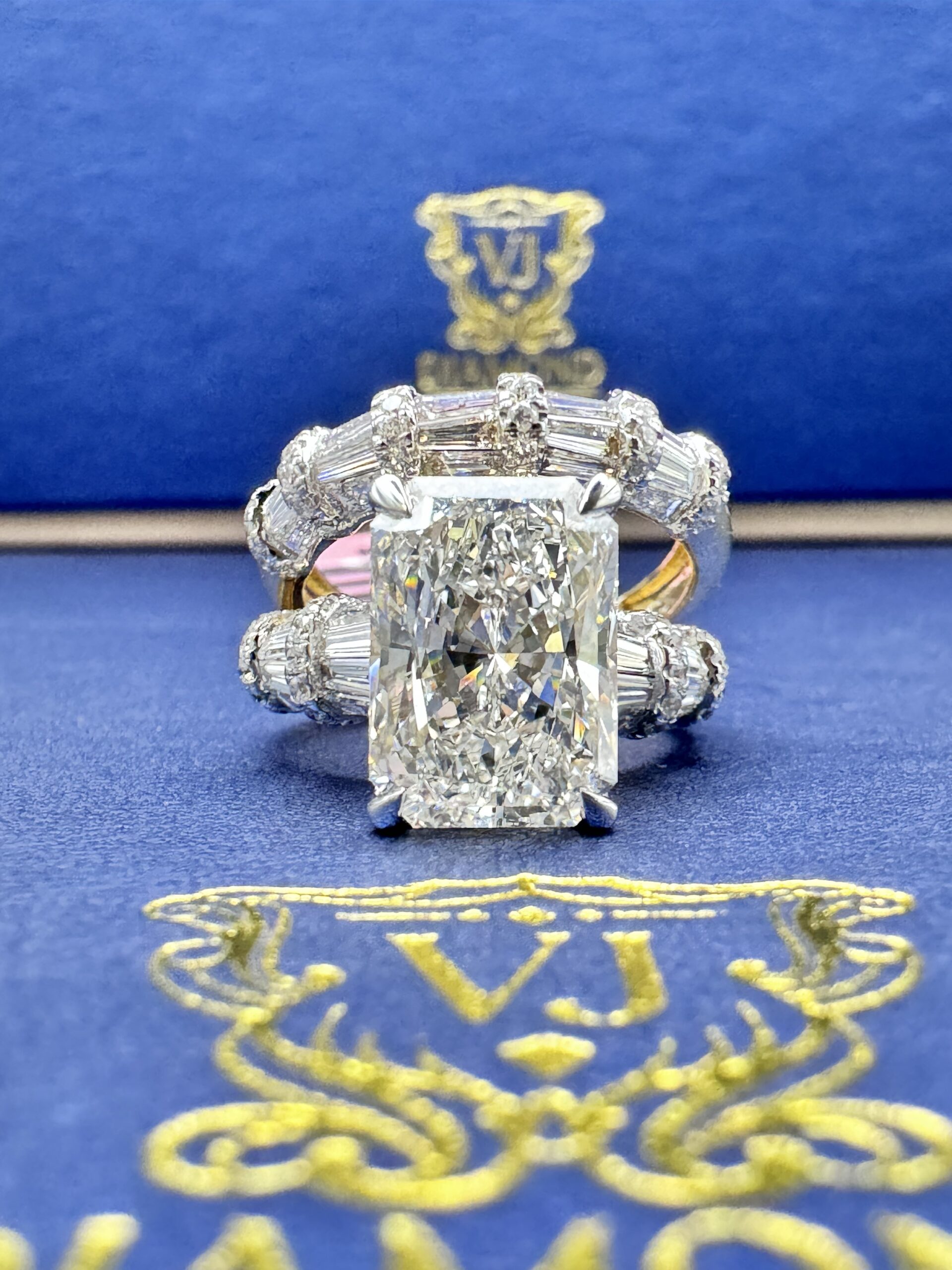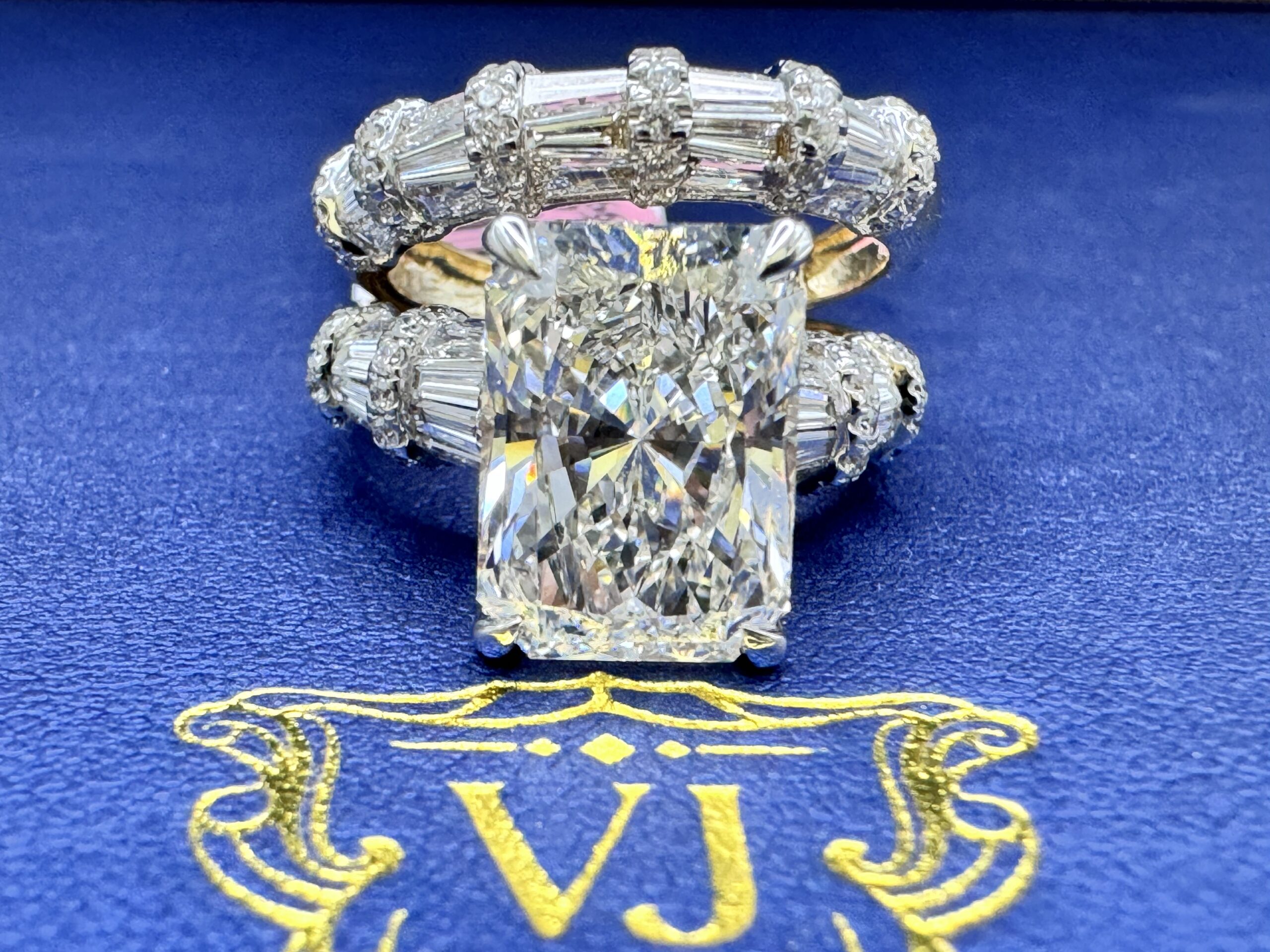 14KT Gold 7.17CT LabGrown RadiantCut Diamond Bridal With Baguettes and RoundCut Band And Sides 5.06CT Center Solitaire VVS F Color Size 7 Approx Gold Weight 7.6 Gram