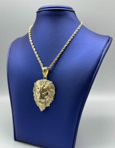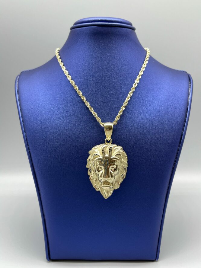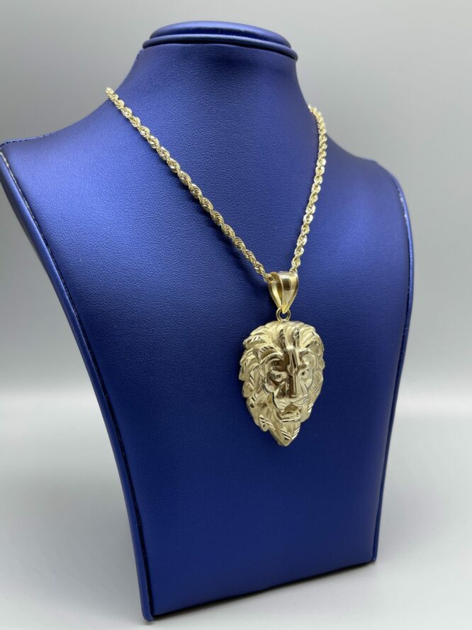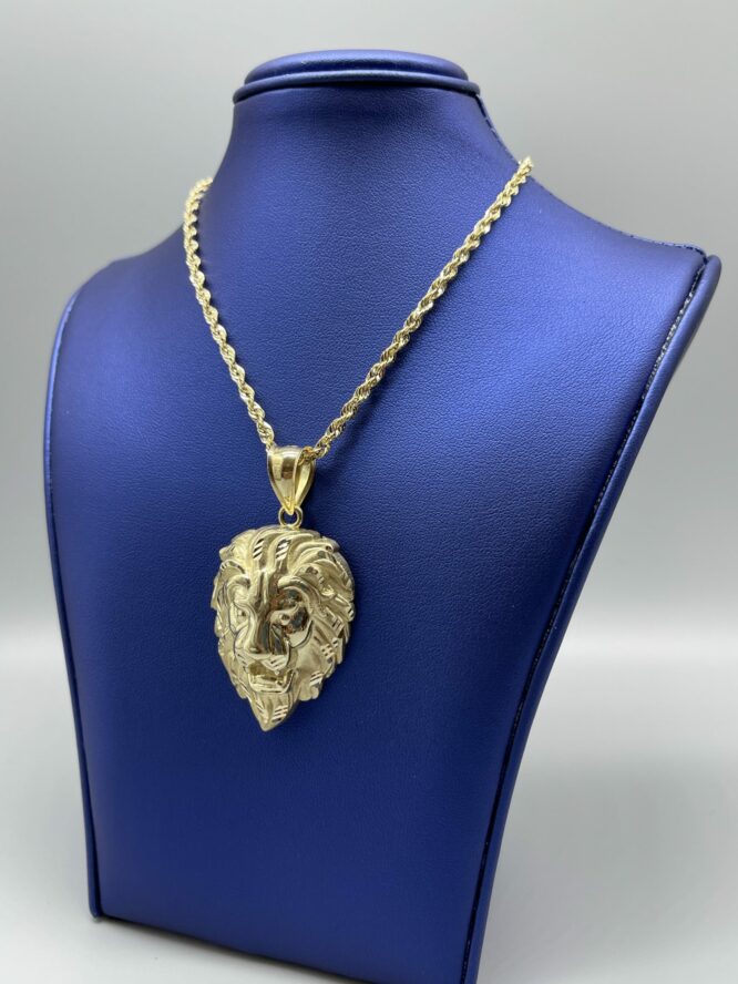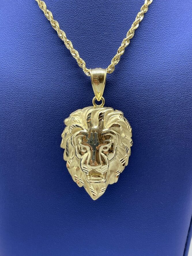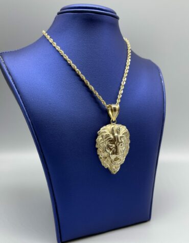 10KT Gold Lion Pendant With “22 Rope Chain Perfect Trendy Combo