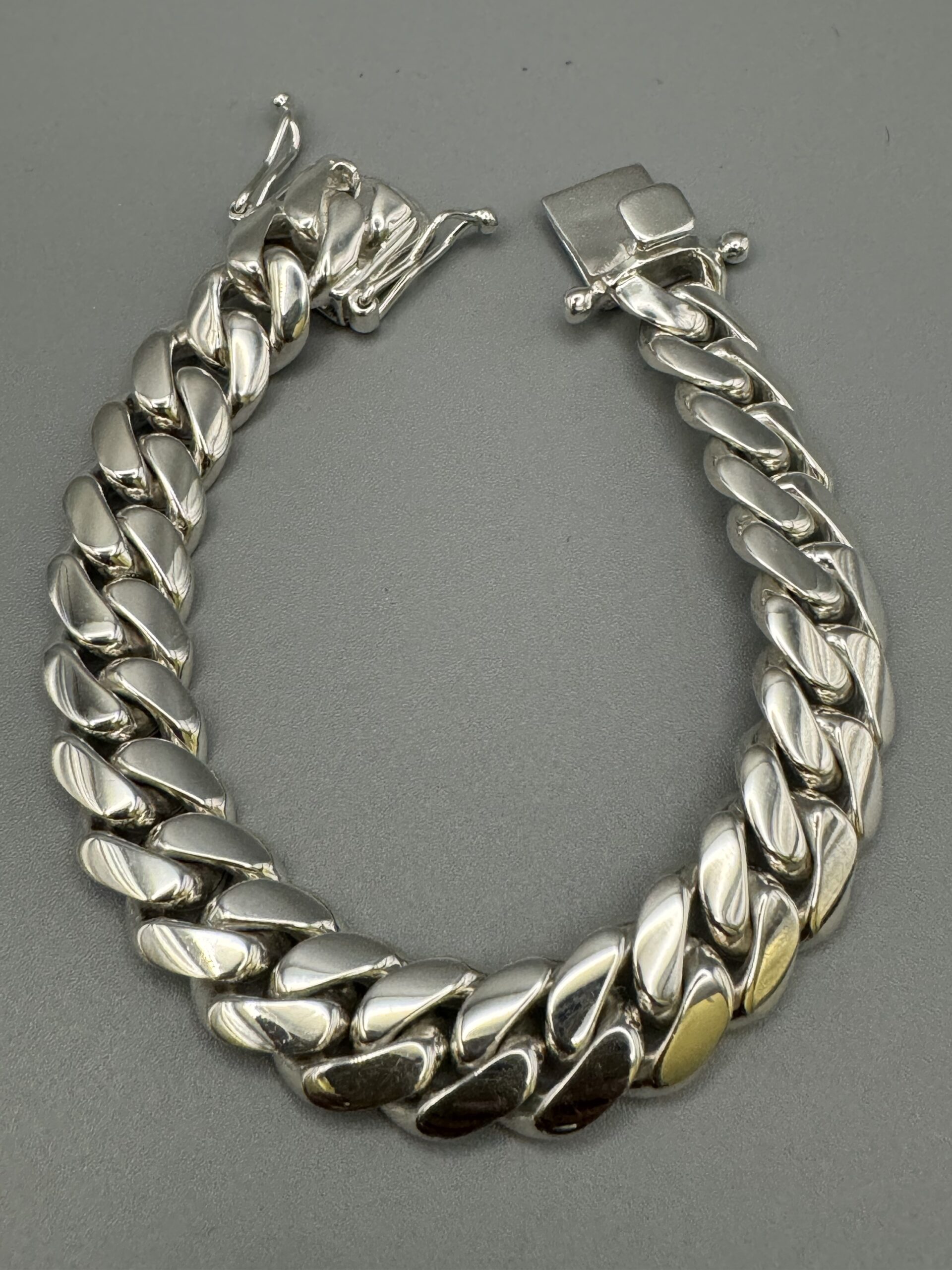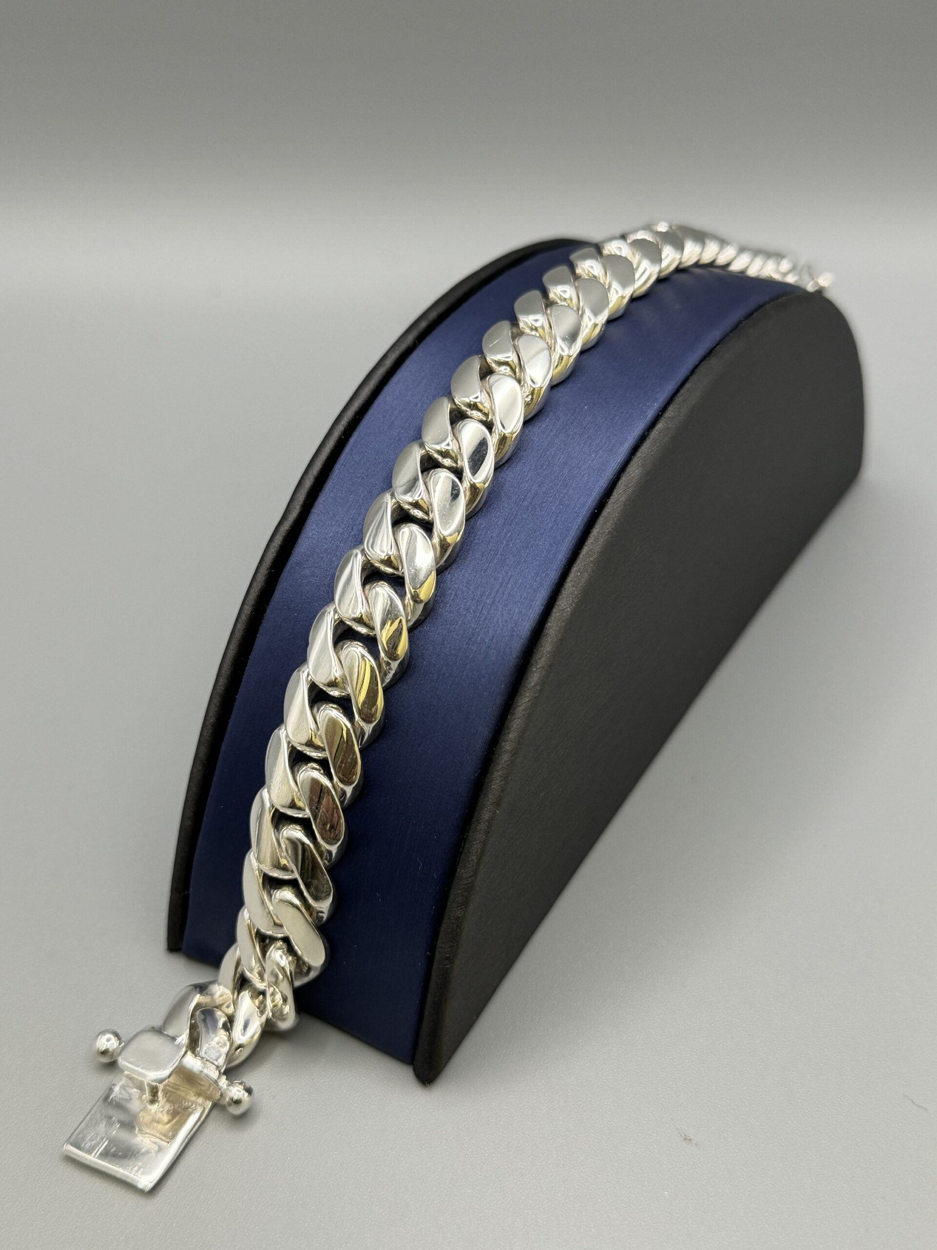 Pure Silver 13MM HandMade MiamiCuban Bracelet 8” Custom Made approx Weight 85.6 Gram
