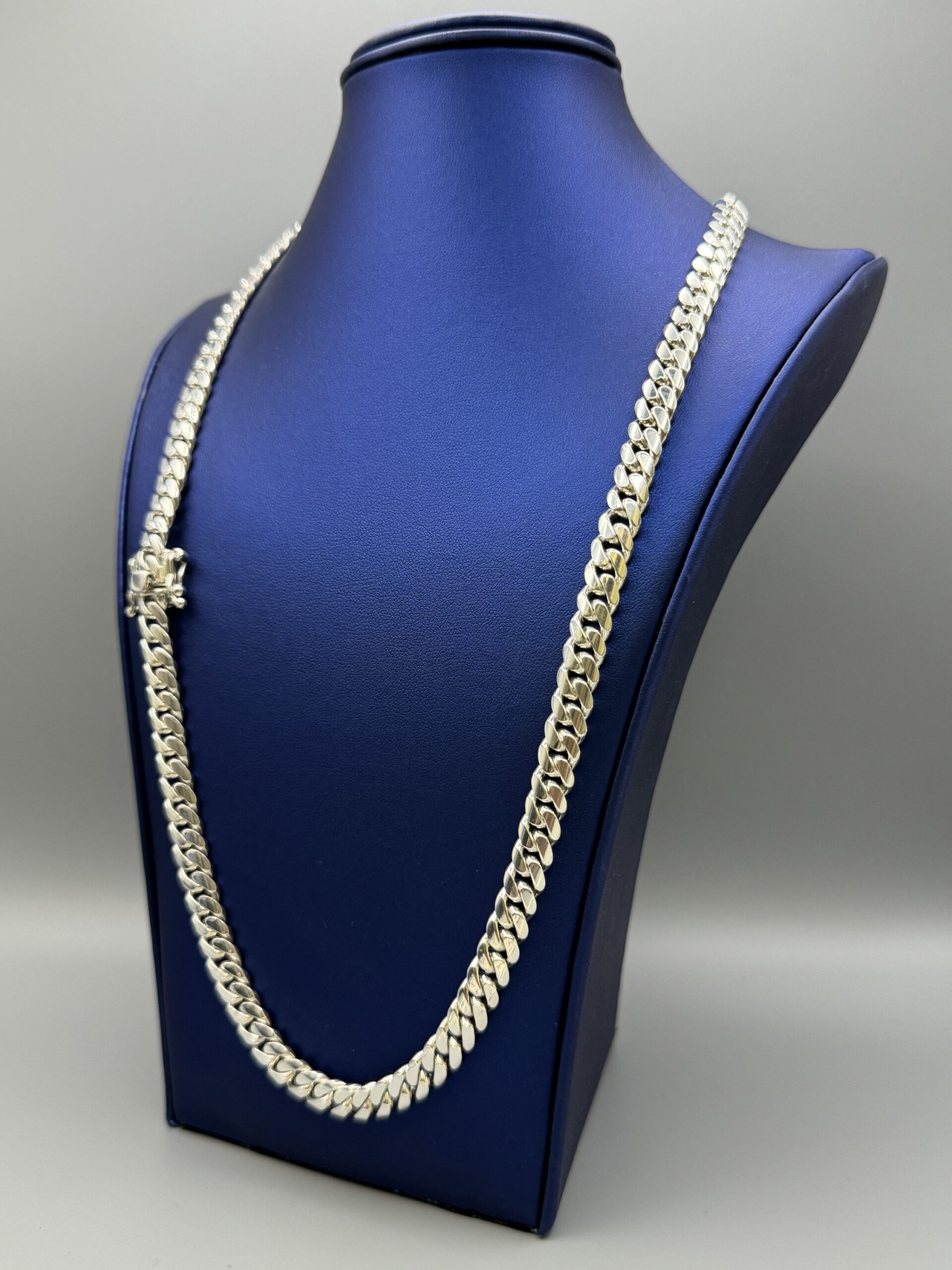 Elevate your style with this Pure Silver 8MM Handmade Miami Cuban Necklace. At 22” long and weighing approx 87.4 grams, it’s a stunning statement piece that combines elegance with durability.