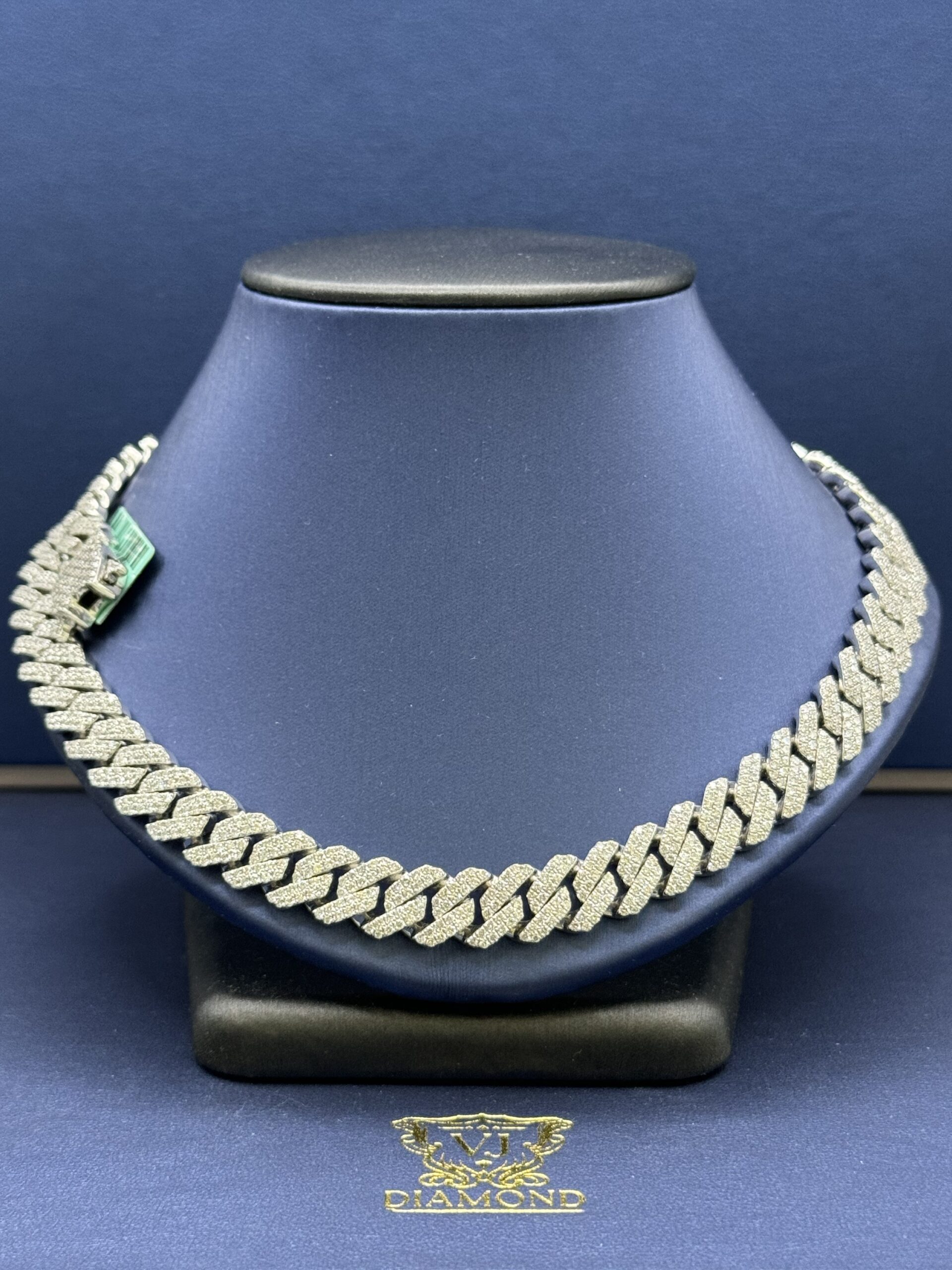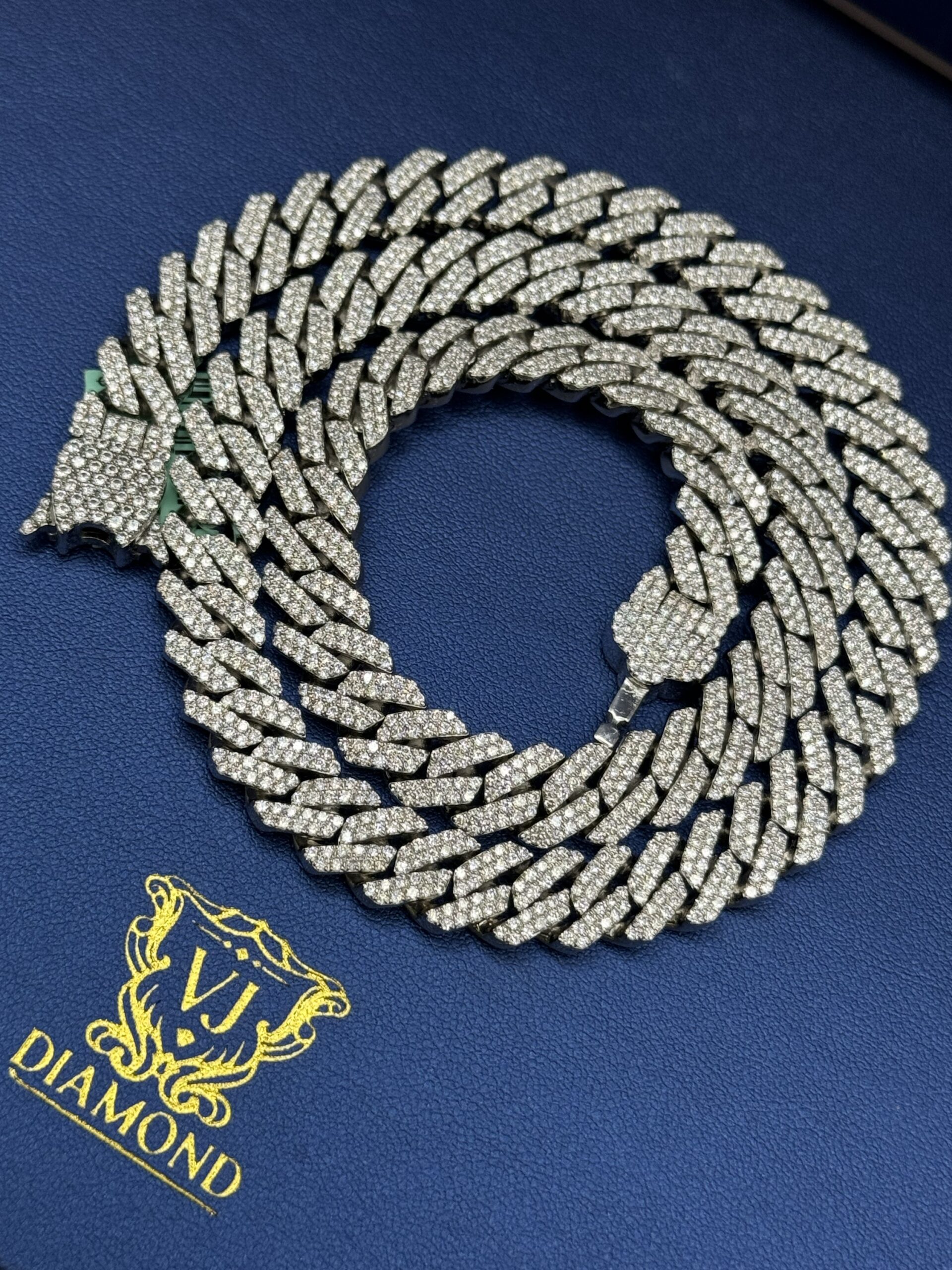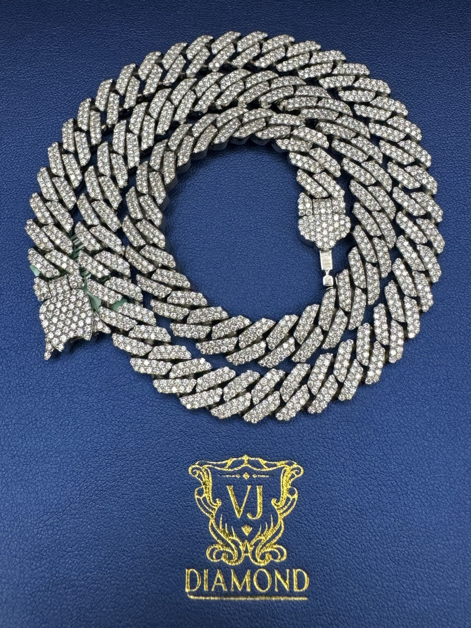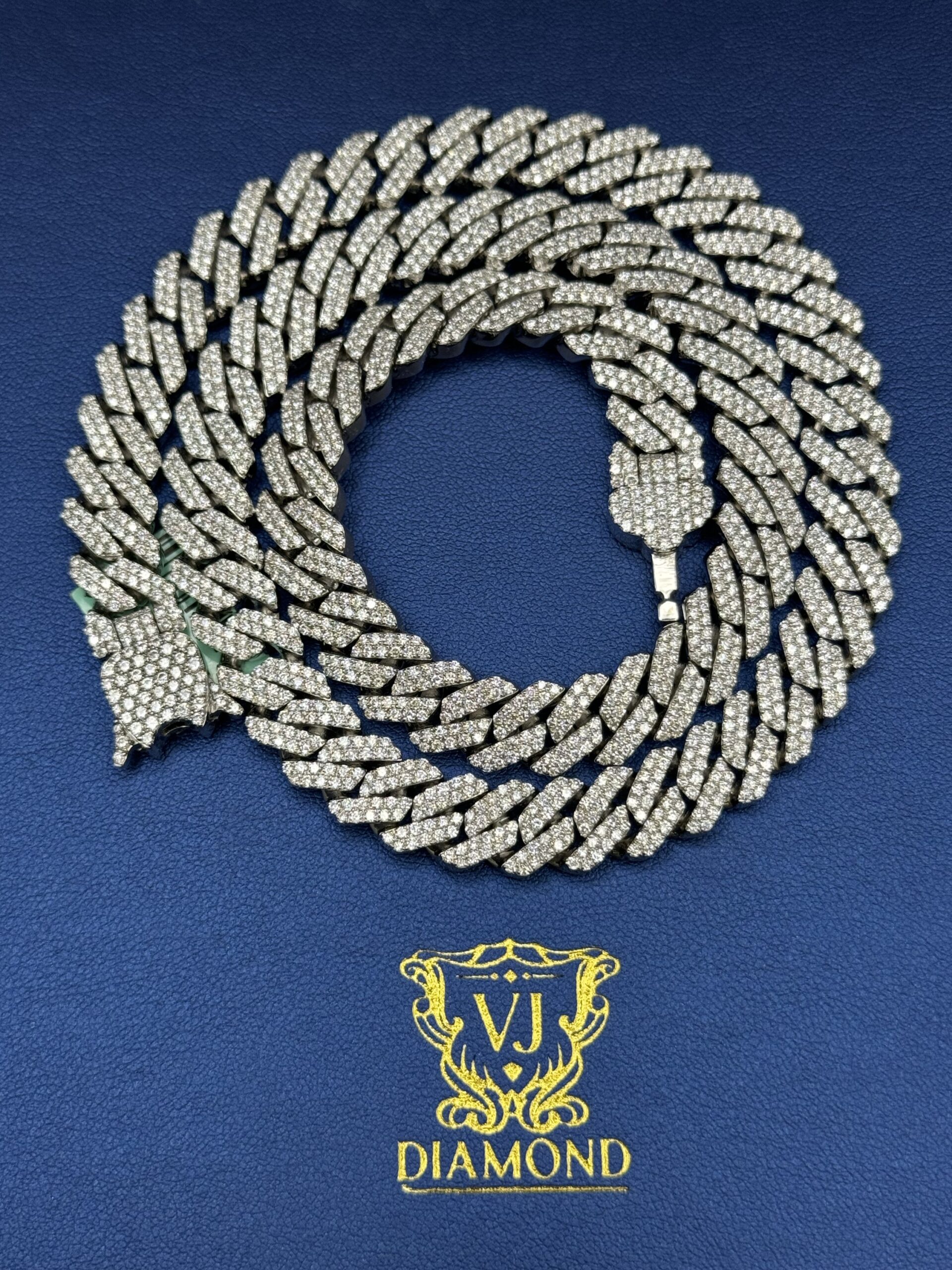 S.S 10MM 18.45CT Lab Diamond Cuban Necklace 22″ Approx Silver Weight 120.0 Gram VvS Clarity F Color Life Time Guarantee