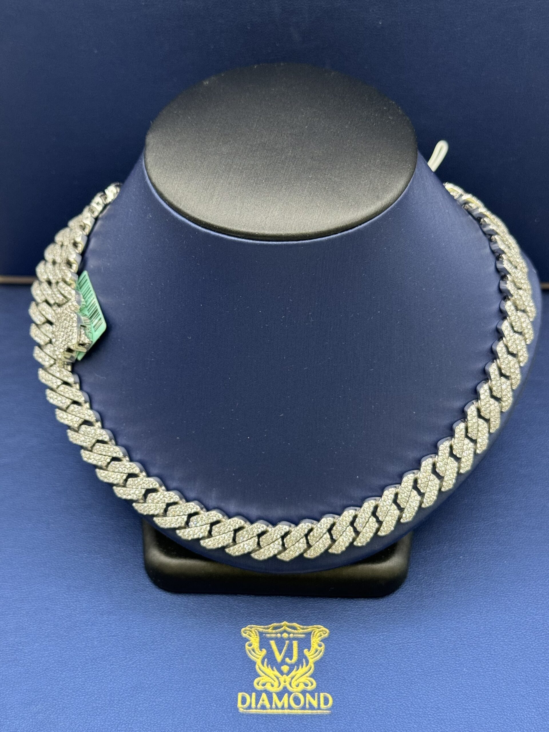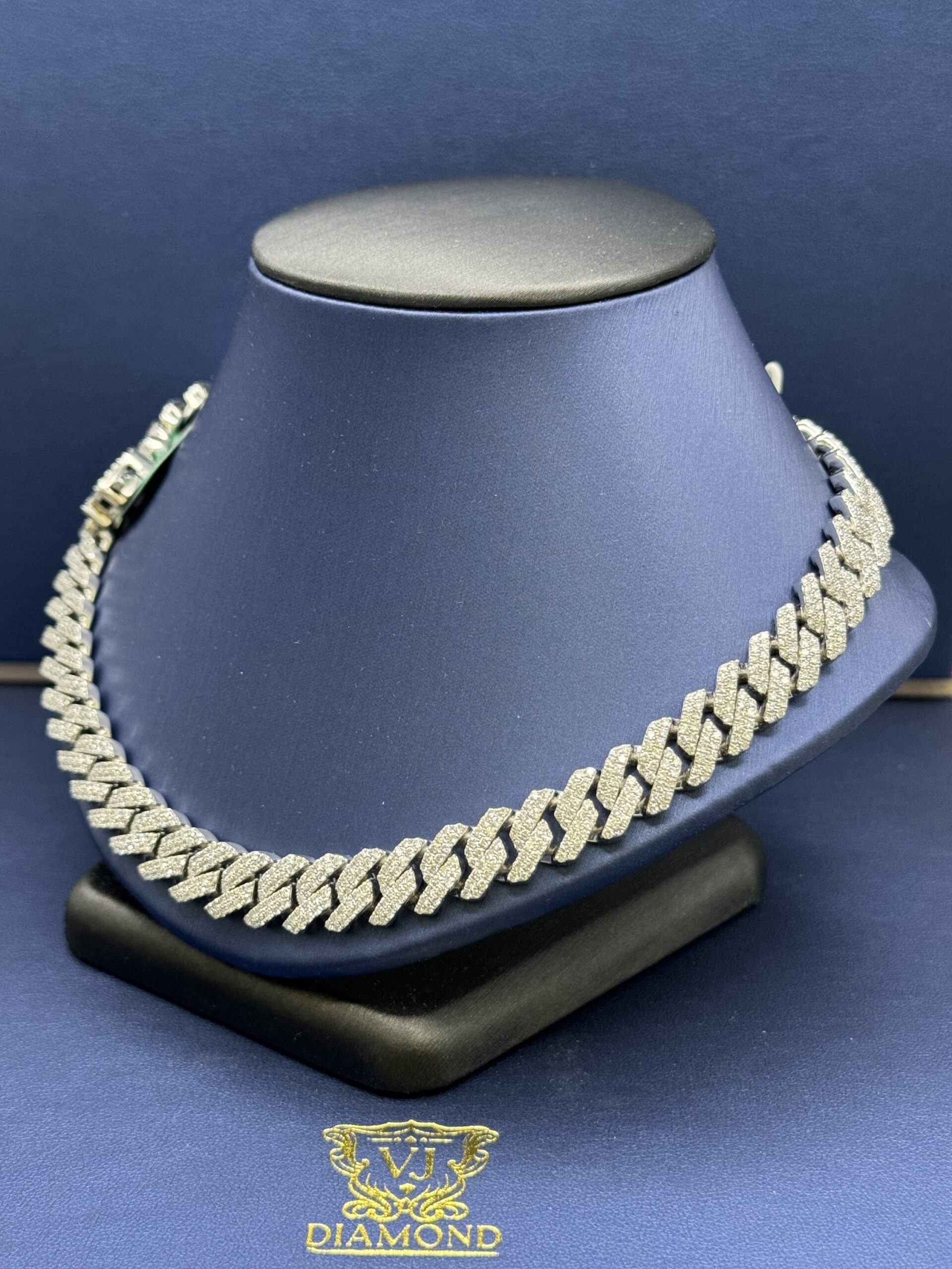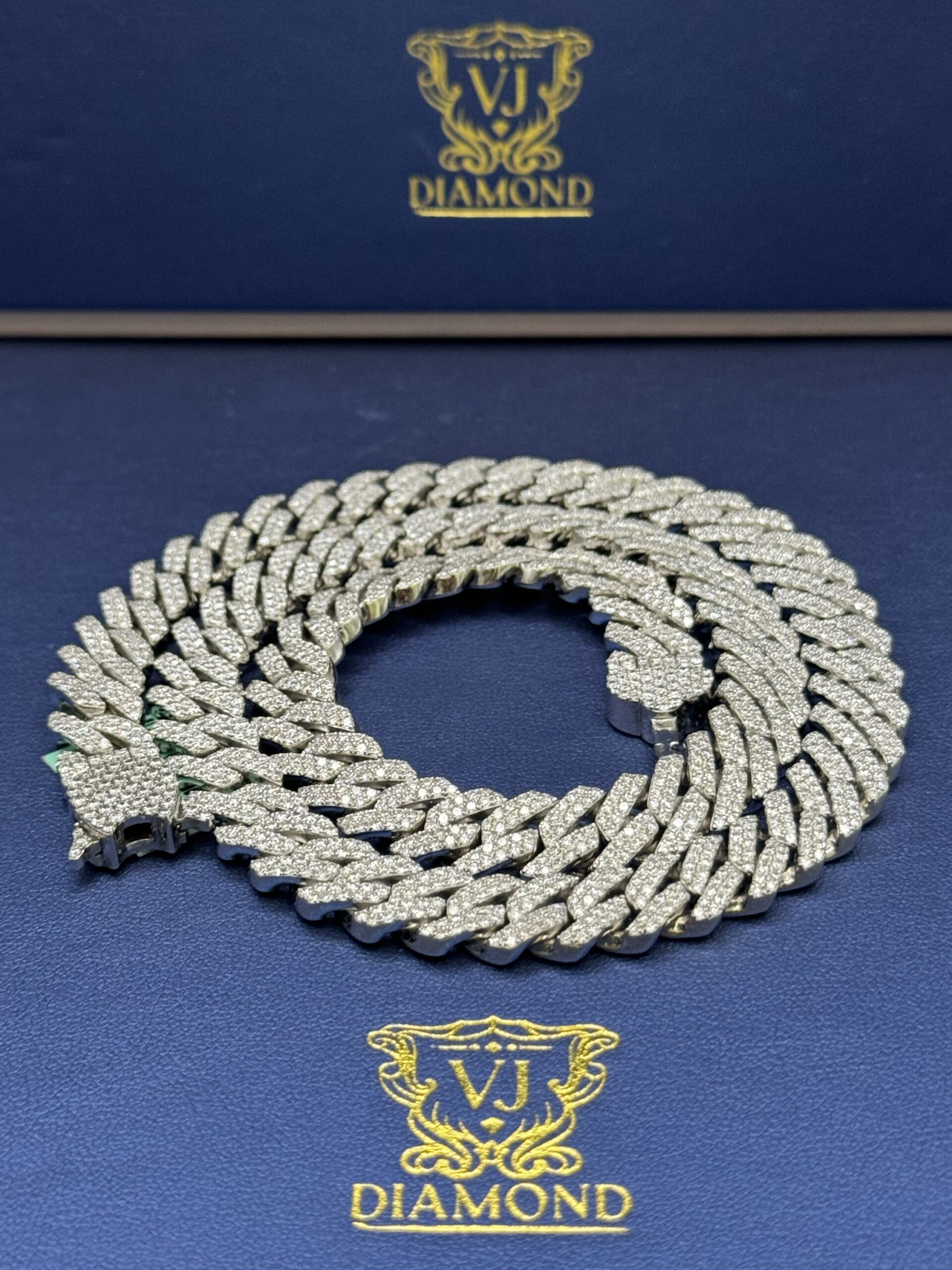 S.S 10MM 18.45CT Lab Diamond Cuban Necklace 22″ Approx Silver Weight 120.0 Gram VvS Clarity F Color Life Time Guarantee