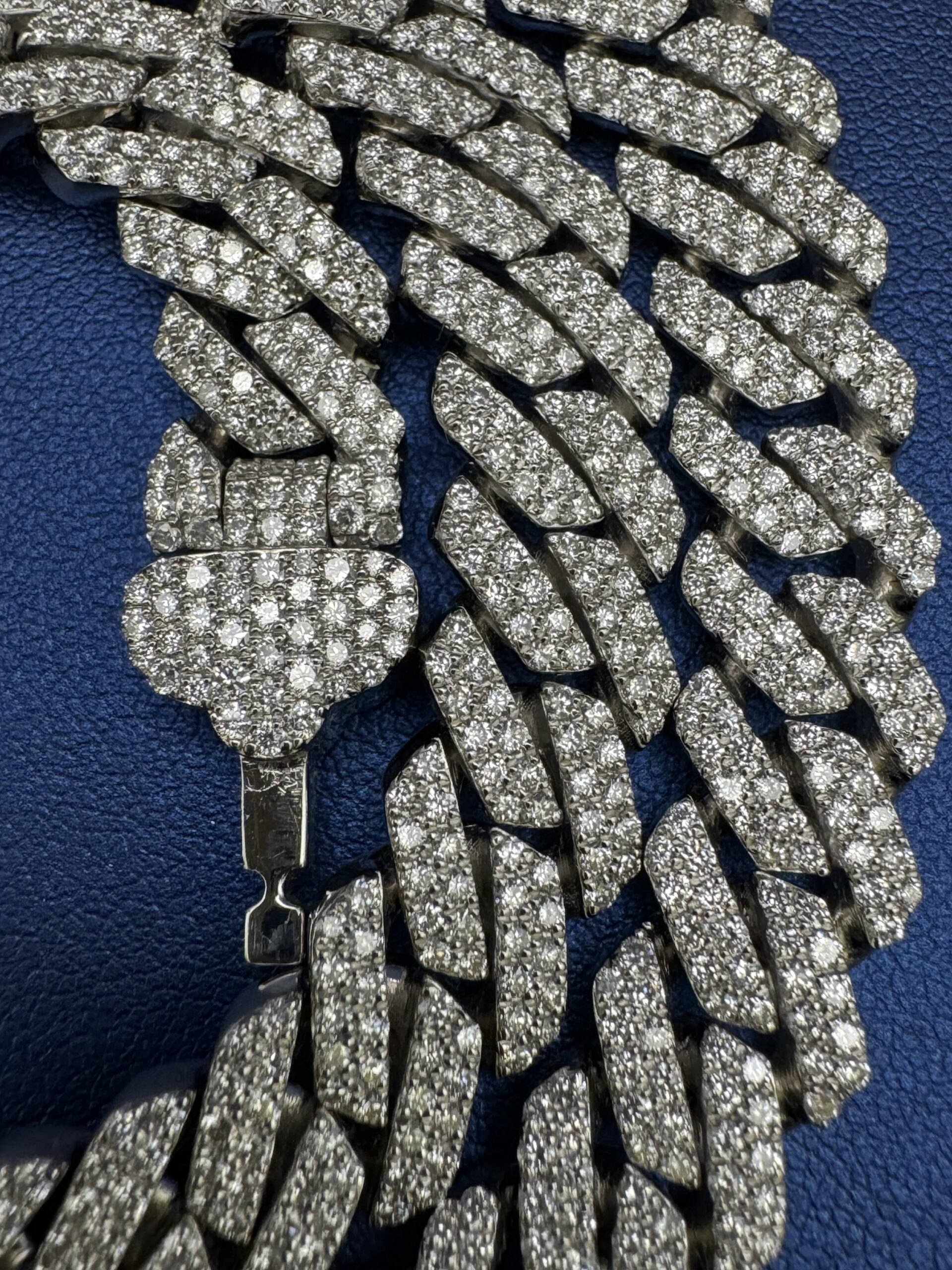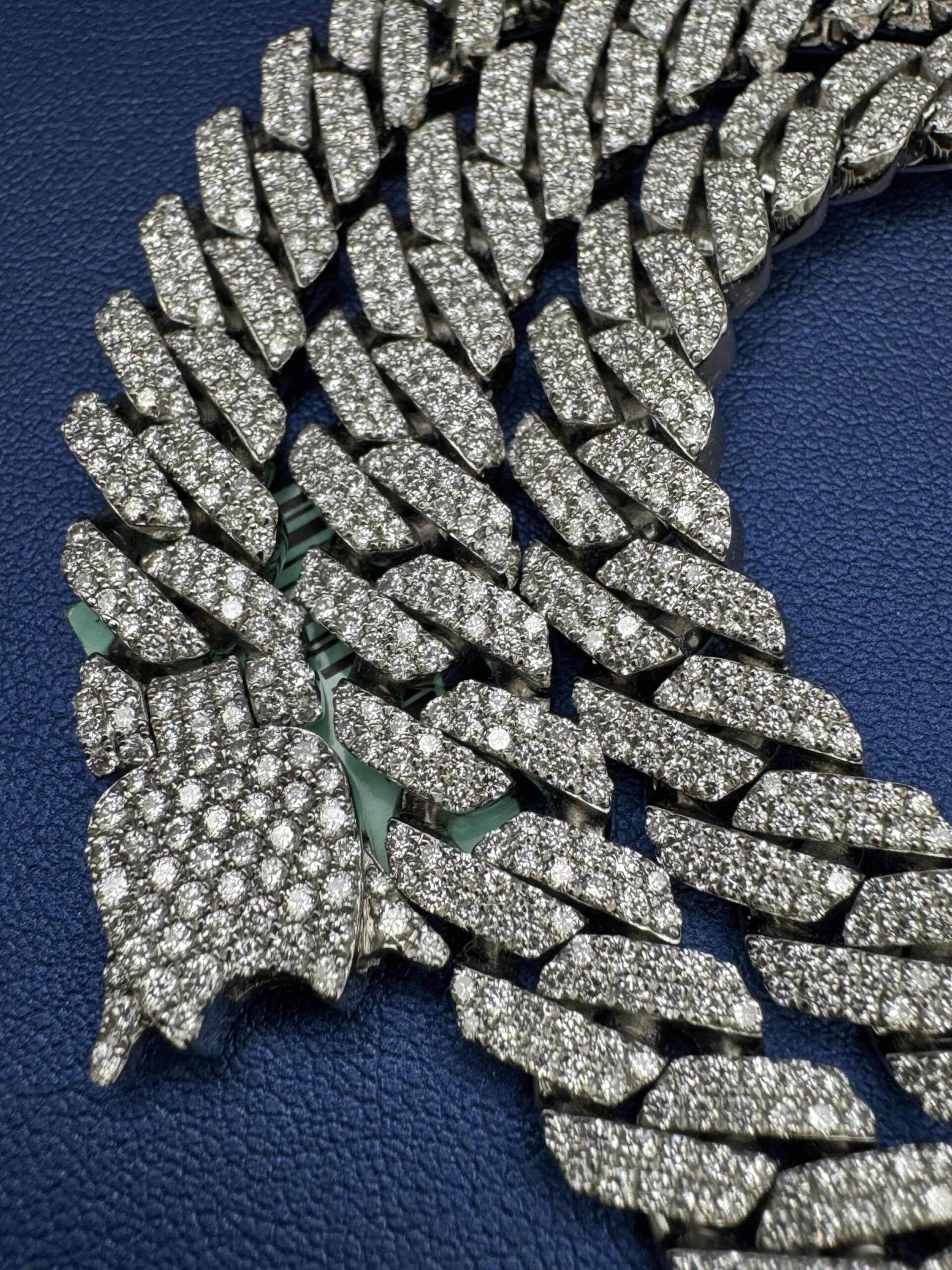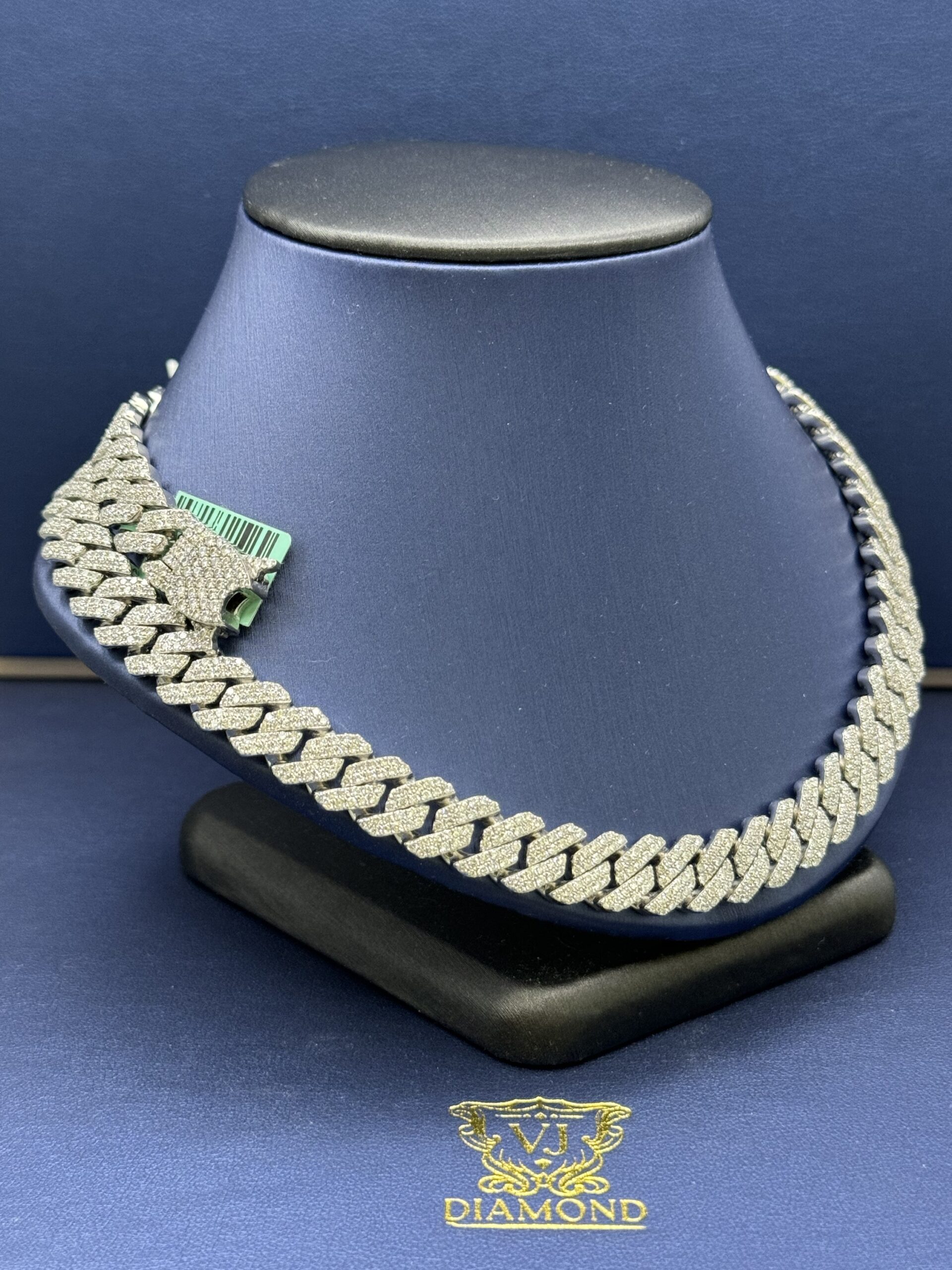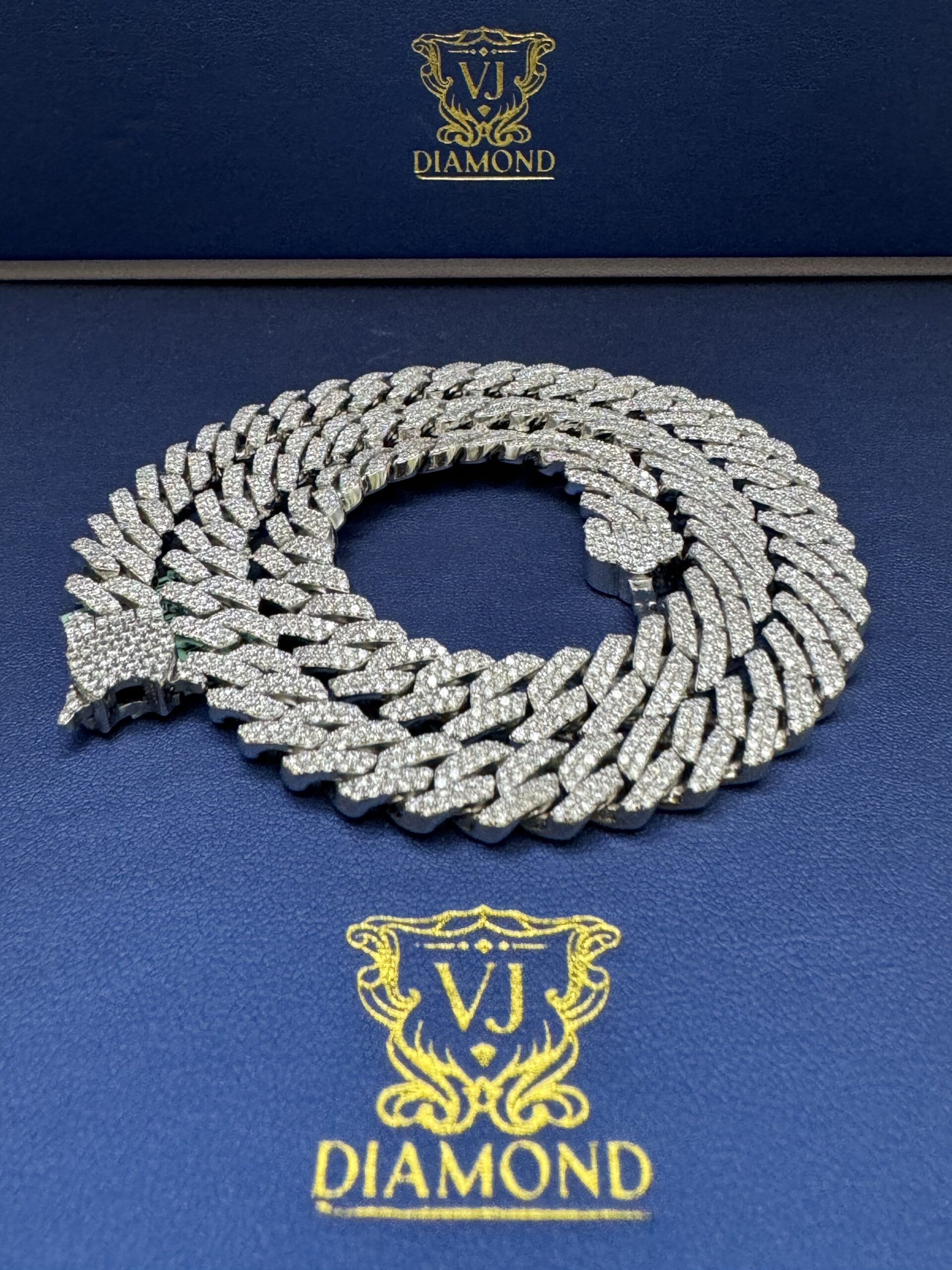 S.S 10MM 18.45CT Lab Diamond Cuban Necklace 22″ Approx Silver Weight 120.0 Gram VvS Clarity F Color Life Time Guarantee