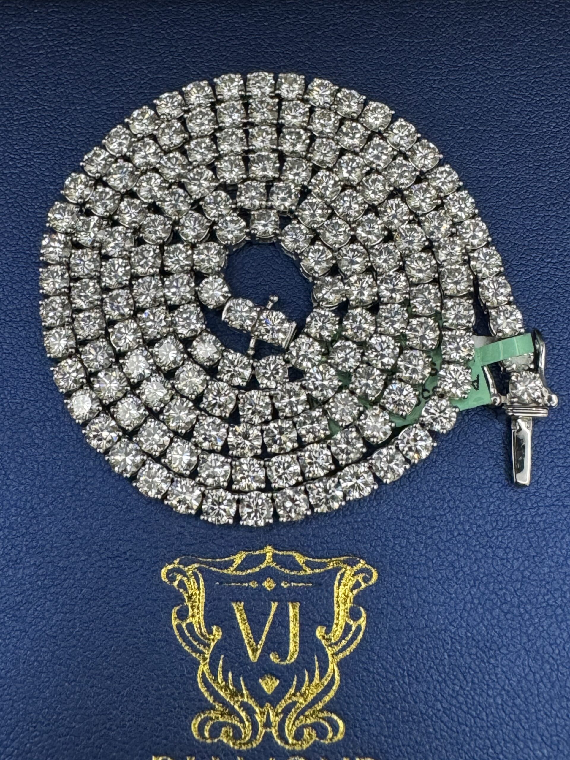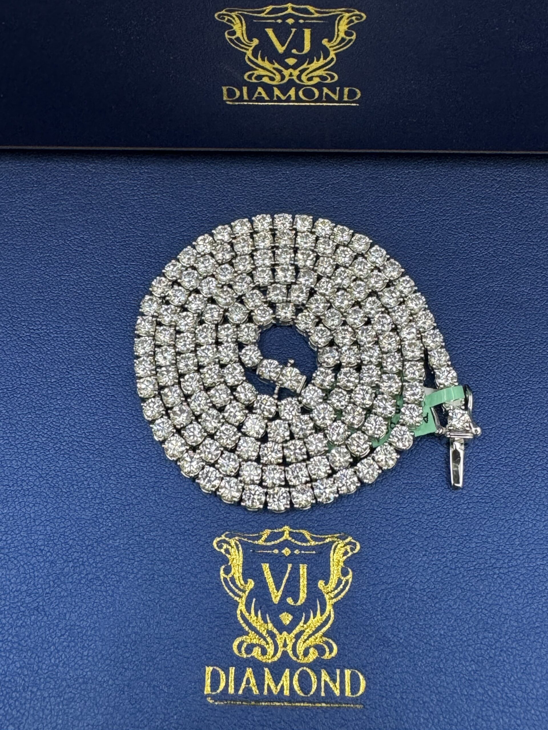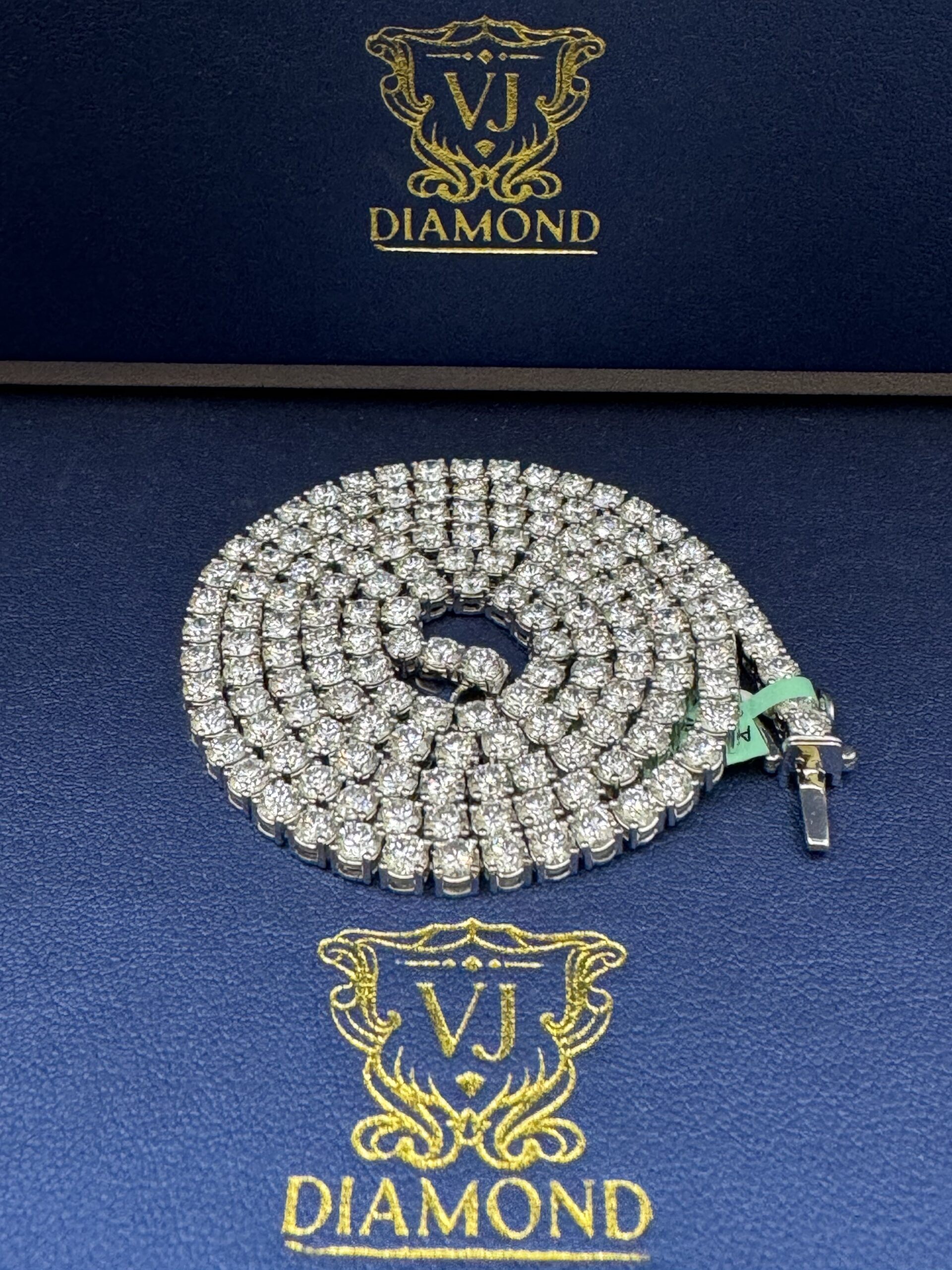 S.S 925Silver 24.17CT Lab Diamond Tennis Necklace 15 Pointers 22″ Approx Weight 21.6 Gram VVs Clarity F Color 4MM Width Comes Certified With Certification
